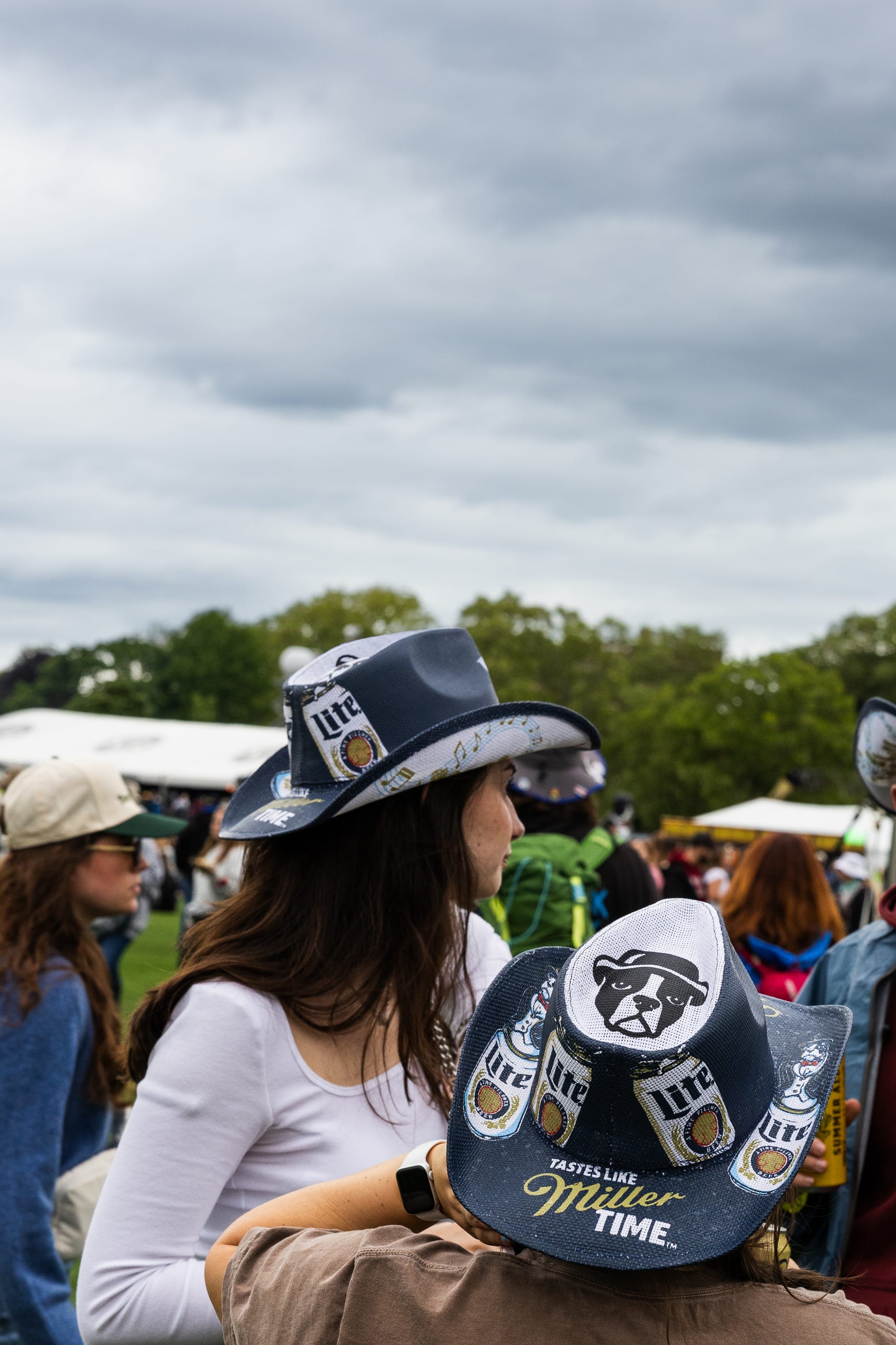 Country's biggest stars kicked off Boston Calling on a lively and rainy Friday. Boston's biggest weekend in music returned for a night of boot-stomping fun, attracting fans decked out in denim, cowboy boots with bows, and headliner Megan Moroney's signature color blue. Anyone who forgot the essentials, a cowboy hat, could stop by Miller Lite, which collaborated with the festival to create a design featuring their beers and the beloved Boston Terrier mascot.