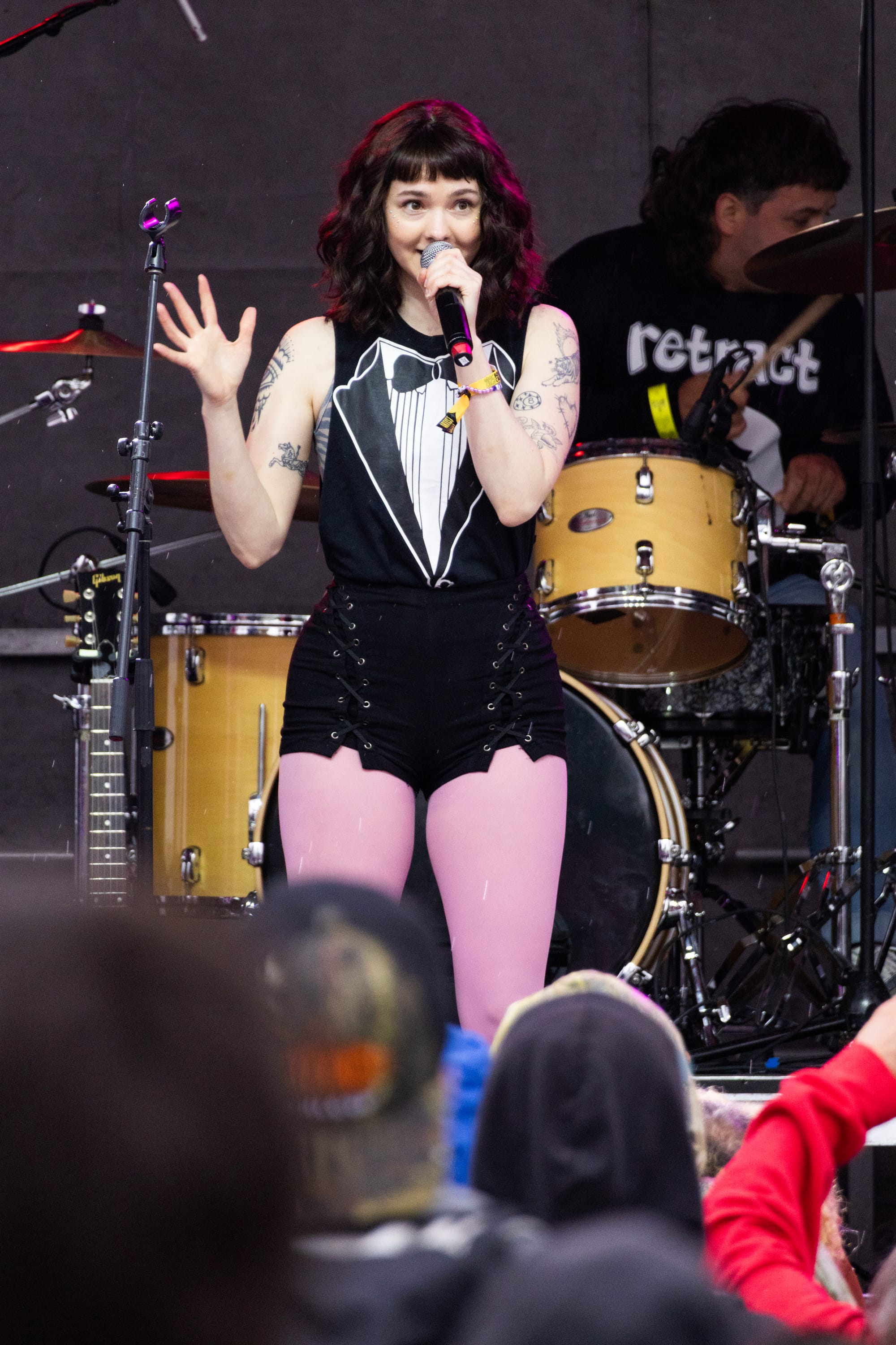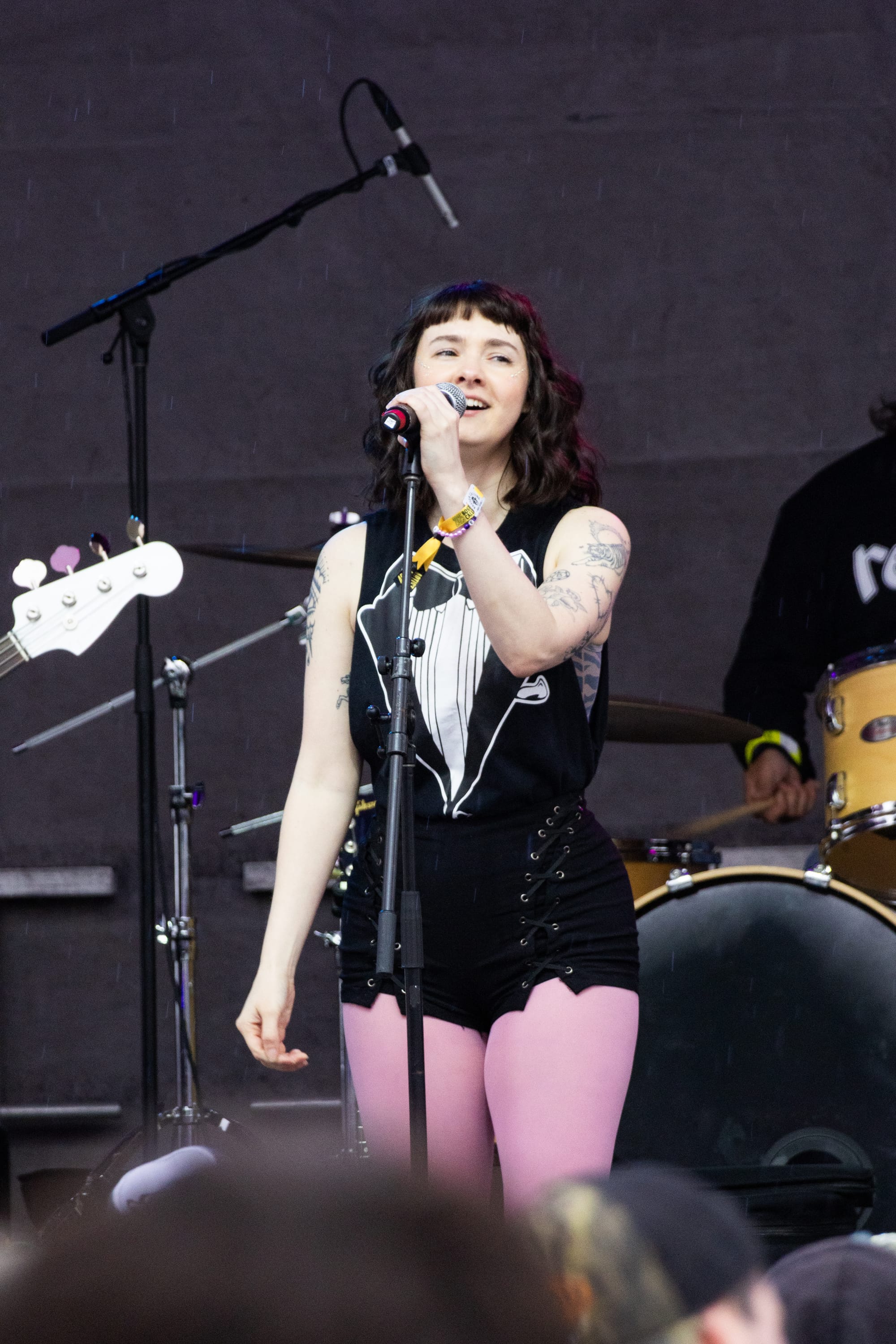 The Orange Stage boasted a killer New England lineup, including Megan From Work, an incredible band Following Boston interviewed leading up to the festival. Lead singer Megan Simon's playful pink tights, trompe-l'œil suit t-shirt, and pure joy brightened up the festival even as the heavier rain moved in. Along with their newest release, "Life Into A Movie," the band sprinkled in covers such as "American Girl" by Tom Petty, displaying their pop-punk range.
