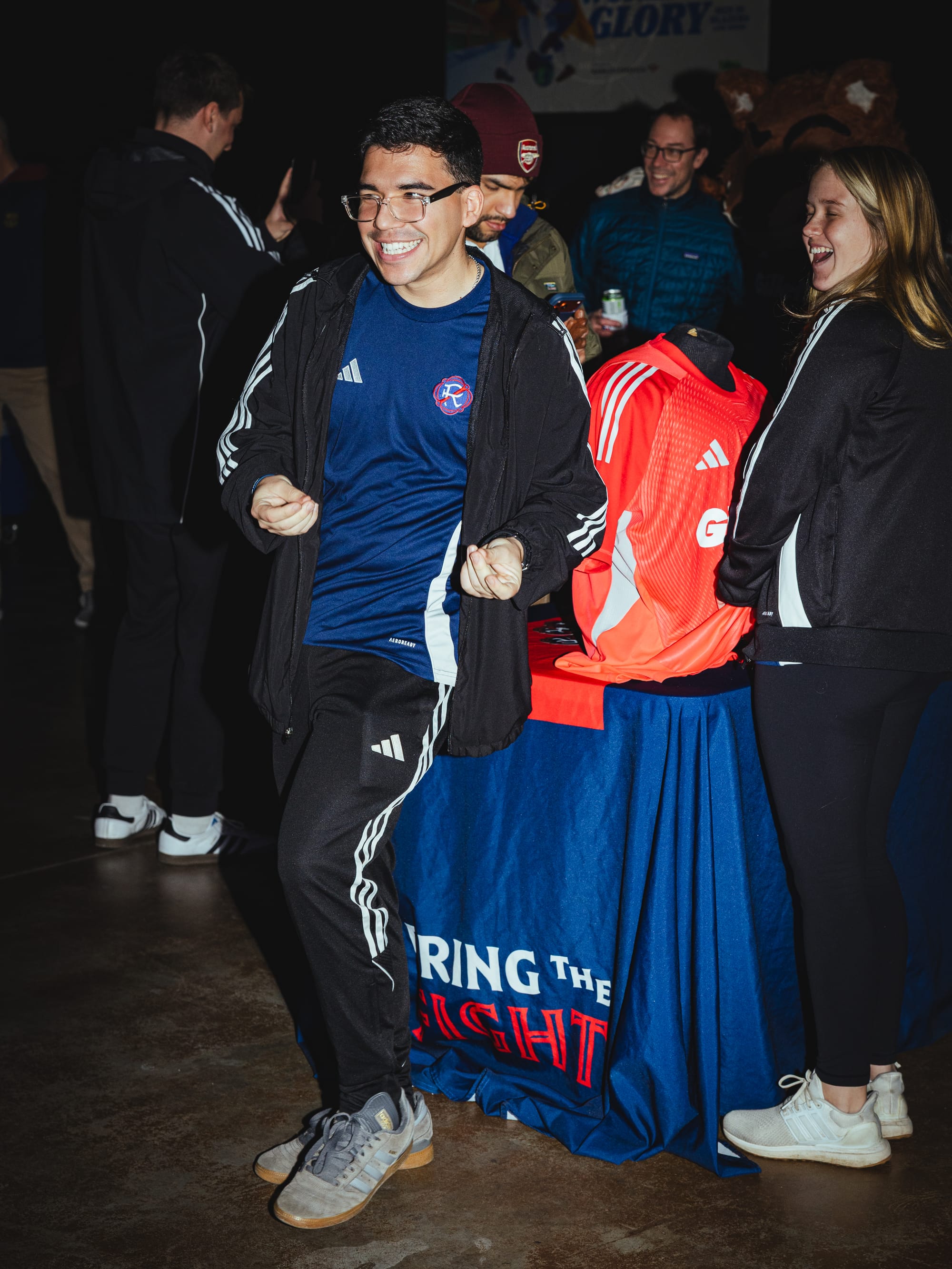 The night began with the fans, who flooded into the venue sporting an array of New England jerseys, ranging from our fearless leaders, the U.S. Men's National Soccer Team (USMNT), to the New England Revolution, to the Portland Hearts of Pine, to Vermont Green. Their passion and excitement could be heard all across the venue as they chatted about their predictions and dreams for the World Cup. With less than 185 days until the games begin and fresh off the previous night's draw, fans were barely able to contain their excitement. They eagerly posed in front of backdrops, visited the Revolution's beloved mascot, Slyde the Fox, and grabbed some drinks from the bar.