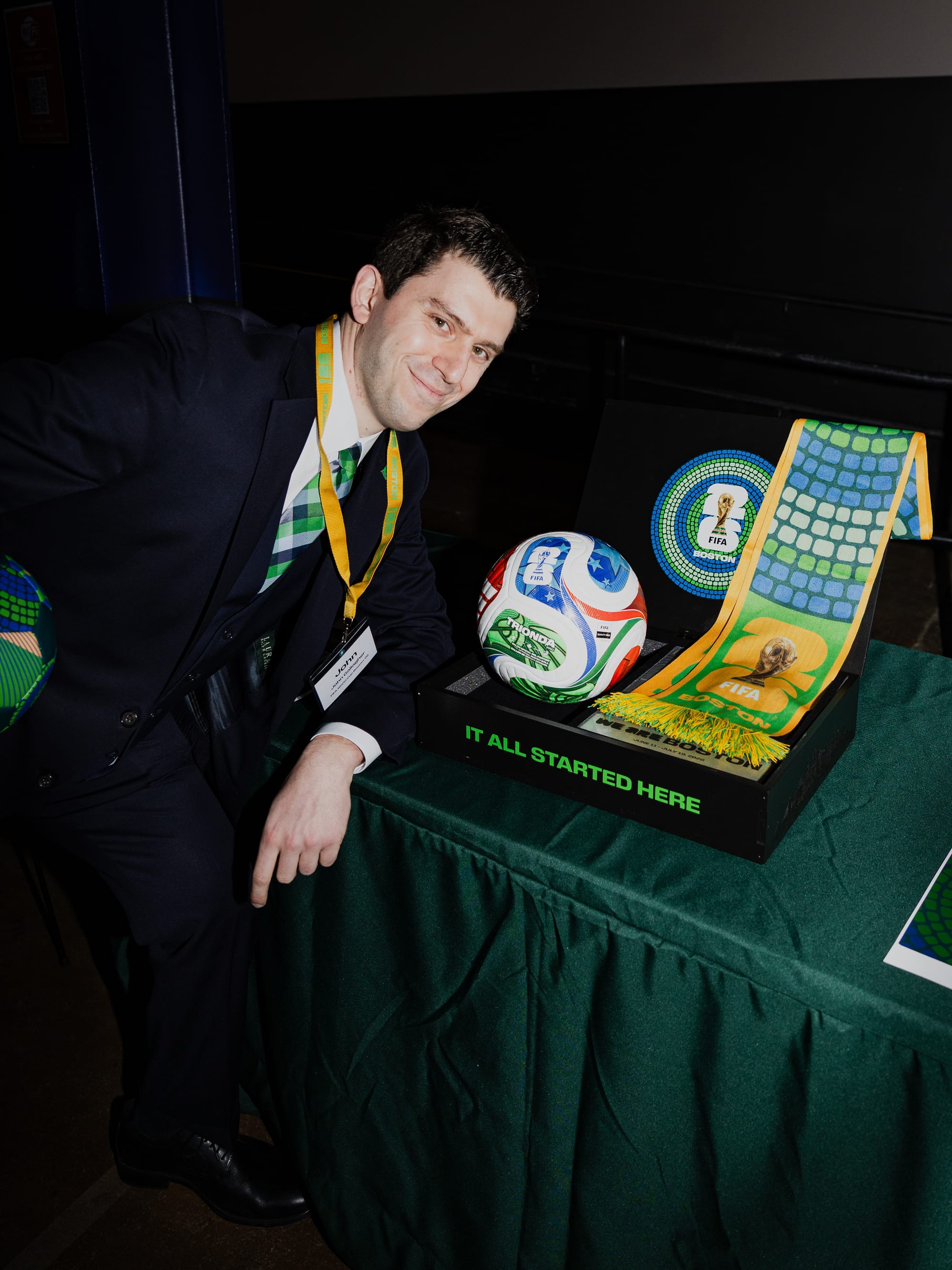 Vermont-born Grammy-nominated singer-songwriter Noah Kahan closed out the night talking about his love for Chelsea F.C. and the city of Boston. He reminisced on the days his mom let him leave school early to watch soccer as his high school yearbook photo flashed up on the big screen. Kahan recently returned to his alma mater, New Hampshire Hanover High School, for an alumni game where he scored a killer goal. His earliest memories of the World Cup go back to the 2006 game when Zidane headbutted Materazzi, and the 2010 opening match he watched in 7th grade in his cafeteria.