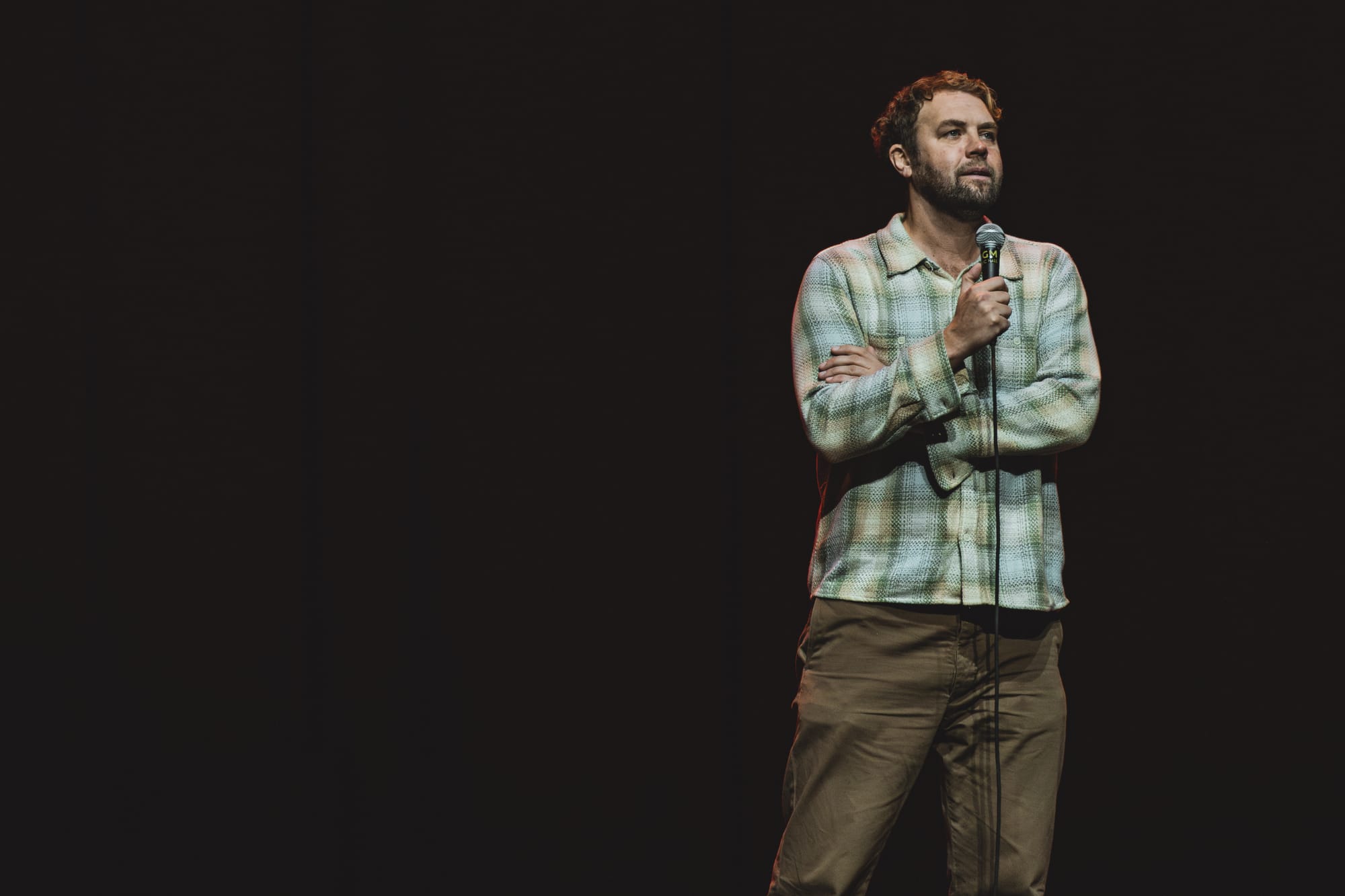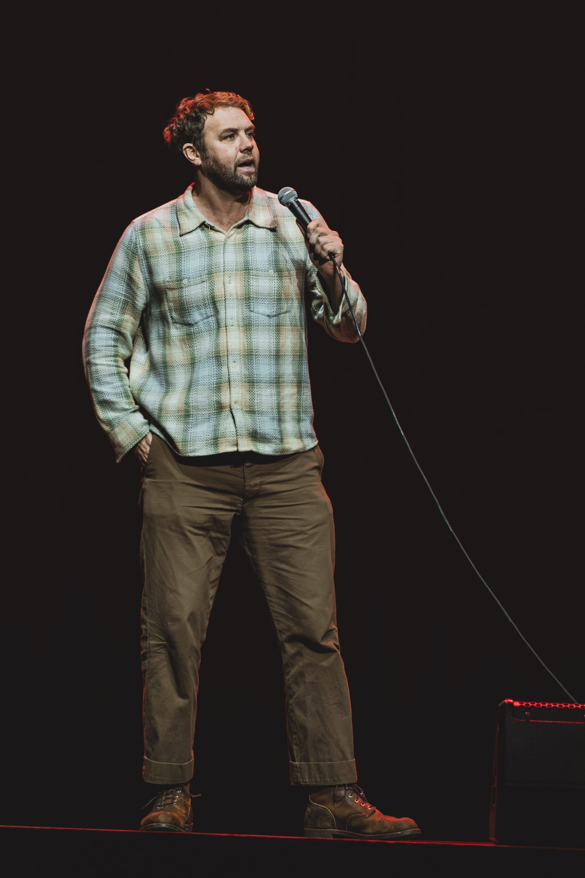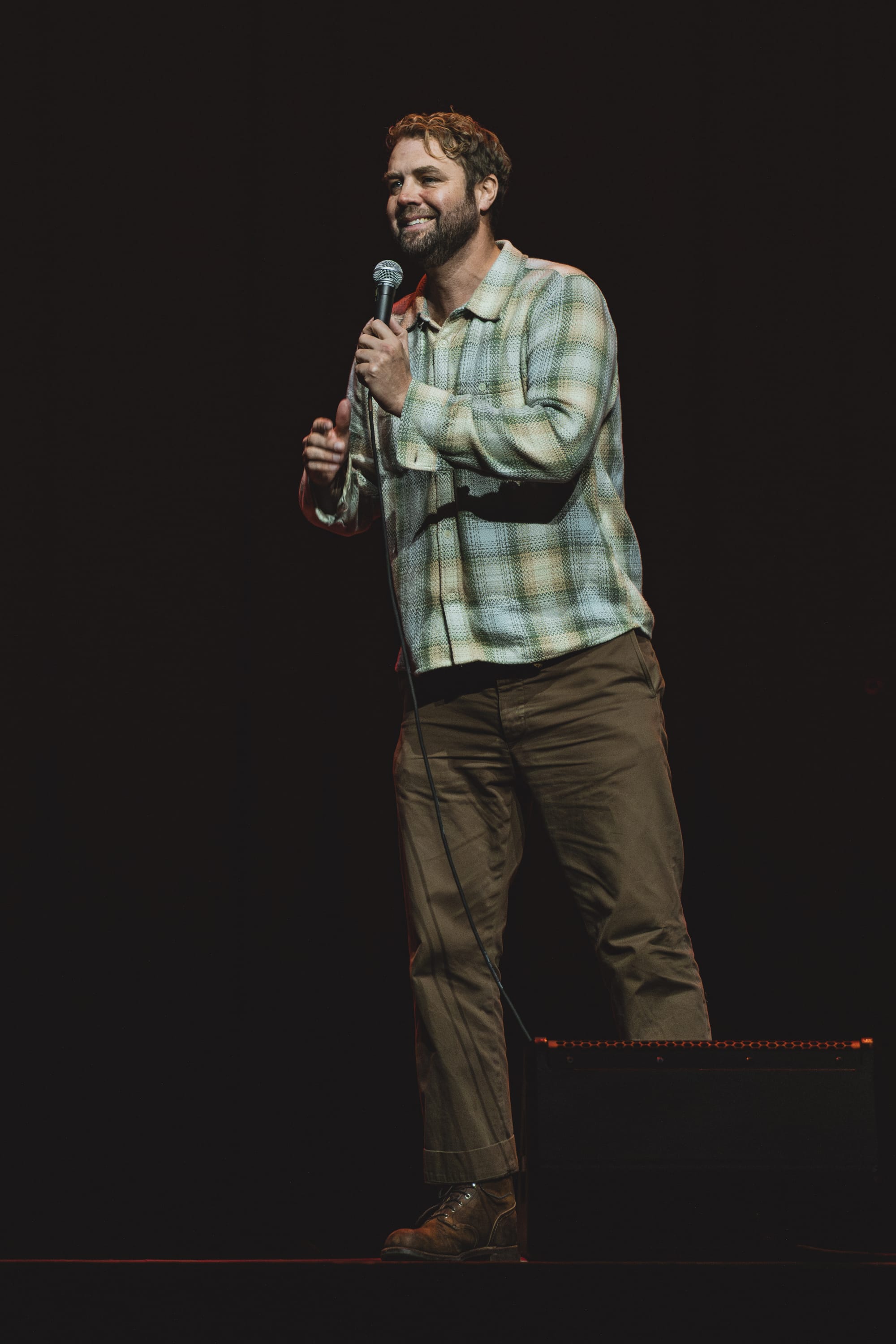 First up was stand-up comedian, actor, and writer Brooks Wheelan, who tested the waters with jokes about family and the New England Patriots. He detailed his shenanigans as a child working at the movie theatre and recalled how much he disliked having to sit through an opener at a Pearl Jam concert, the perfect mix of self-deprecating and relatable humor. He landed some big swings like "F*ck Drake Maye," revealing it was because he is "actually jealous" that New England has a shot of winning again, and the region needs to spend "more time in hell," eliciting laughs and playing into that New England pride. He ended his set trialing new jokes from his notebook, including one about the ambitious 999 challenge, where someone eats 9 hot dogs and drinks 9 beers in 9 innings, recognizing MGM Music Hall was the perfect place to test it out, since the venue is attached to the world's oldest MLB stadium.