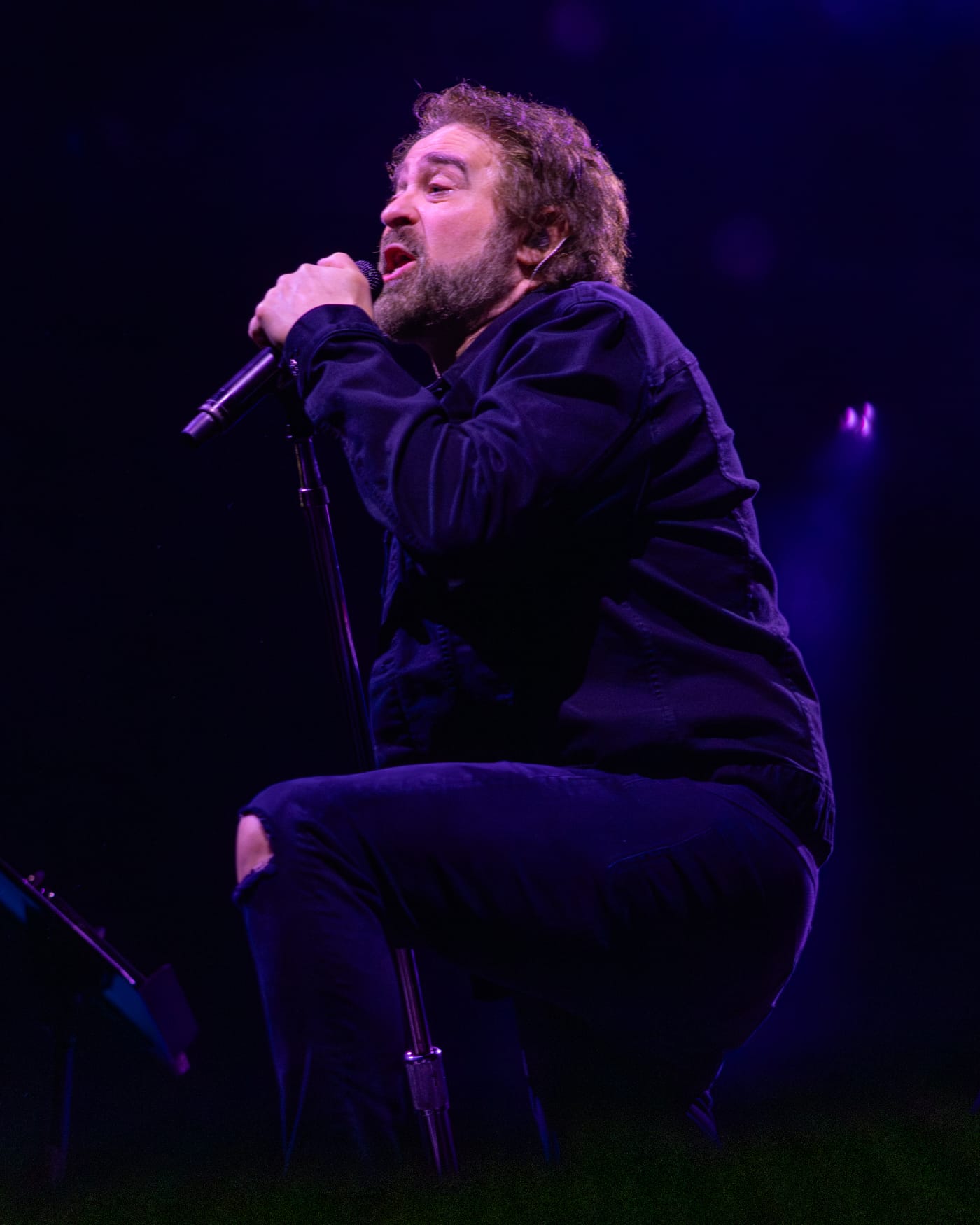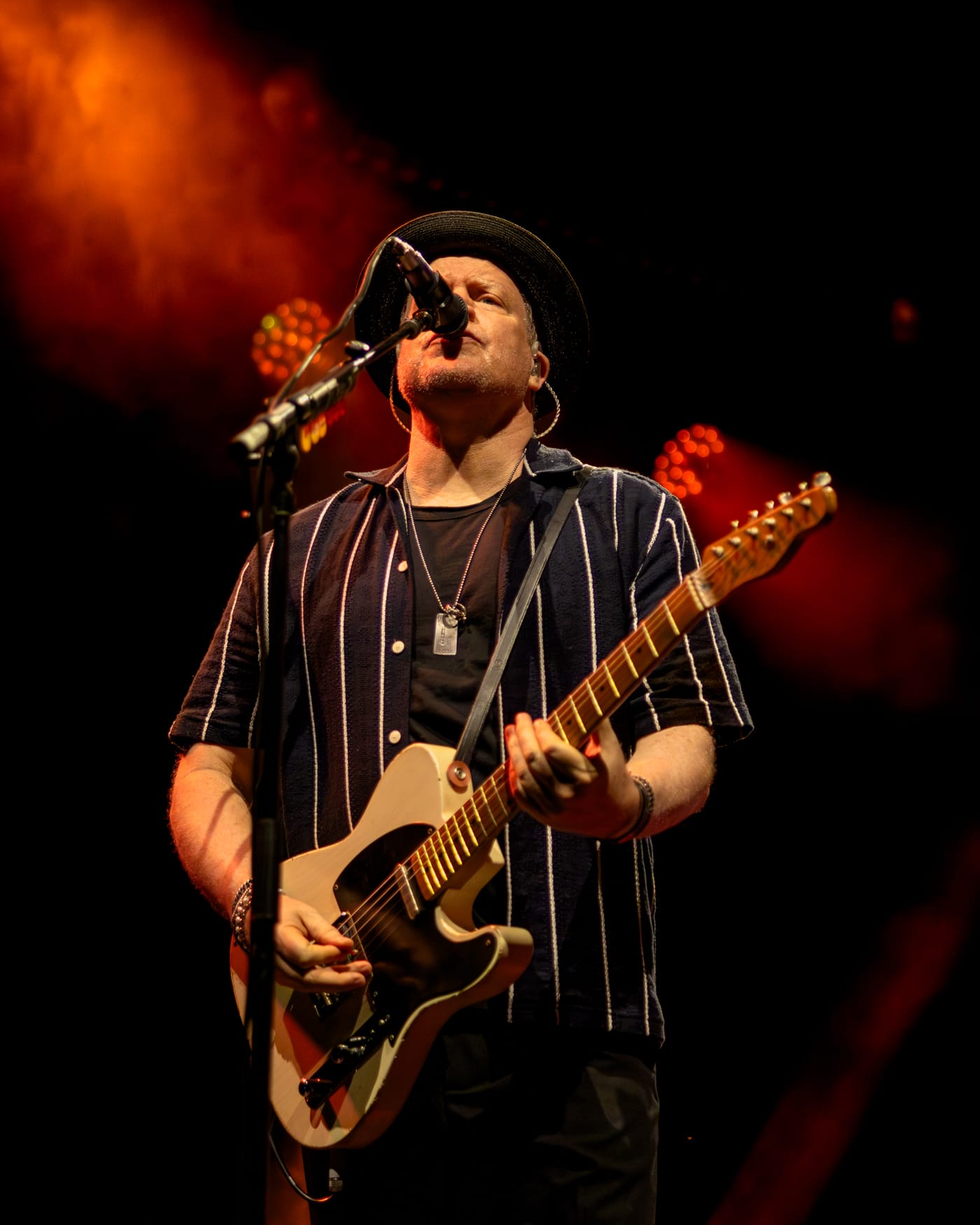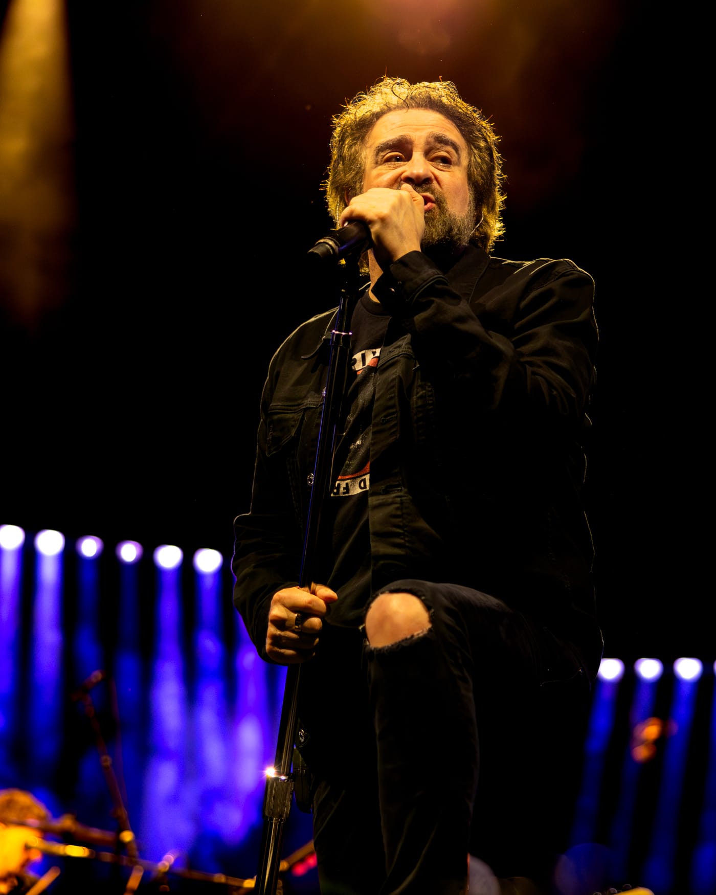 It was a hot, humid Wednesday night at BankNH Pavilion in Gilford, New Hampshire, as fans slowly made their way into the venue for Counting Crows’ The Complete Sweets! Tour. The crowd was still sparse when openers The Gaslight Anthem took the stage, but people trickled in steadily, constantly wiping sweat from their brows. By the time Counting Crows were set to begin around 8:45, the sun had set, the air had cooled slightly and the pavilion was full. Though the band didn’t take the stage until nearly thirty minutes later, the delay only built anticipation. The crowd was loud and ready, cheering as the lights shifted to colors of yellow, blue and purple.