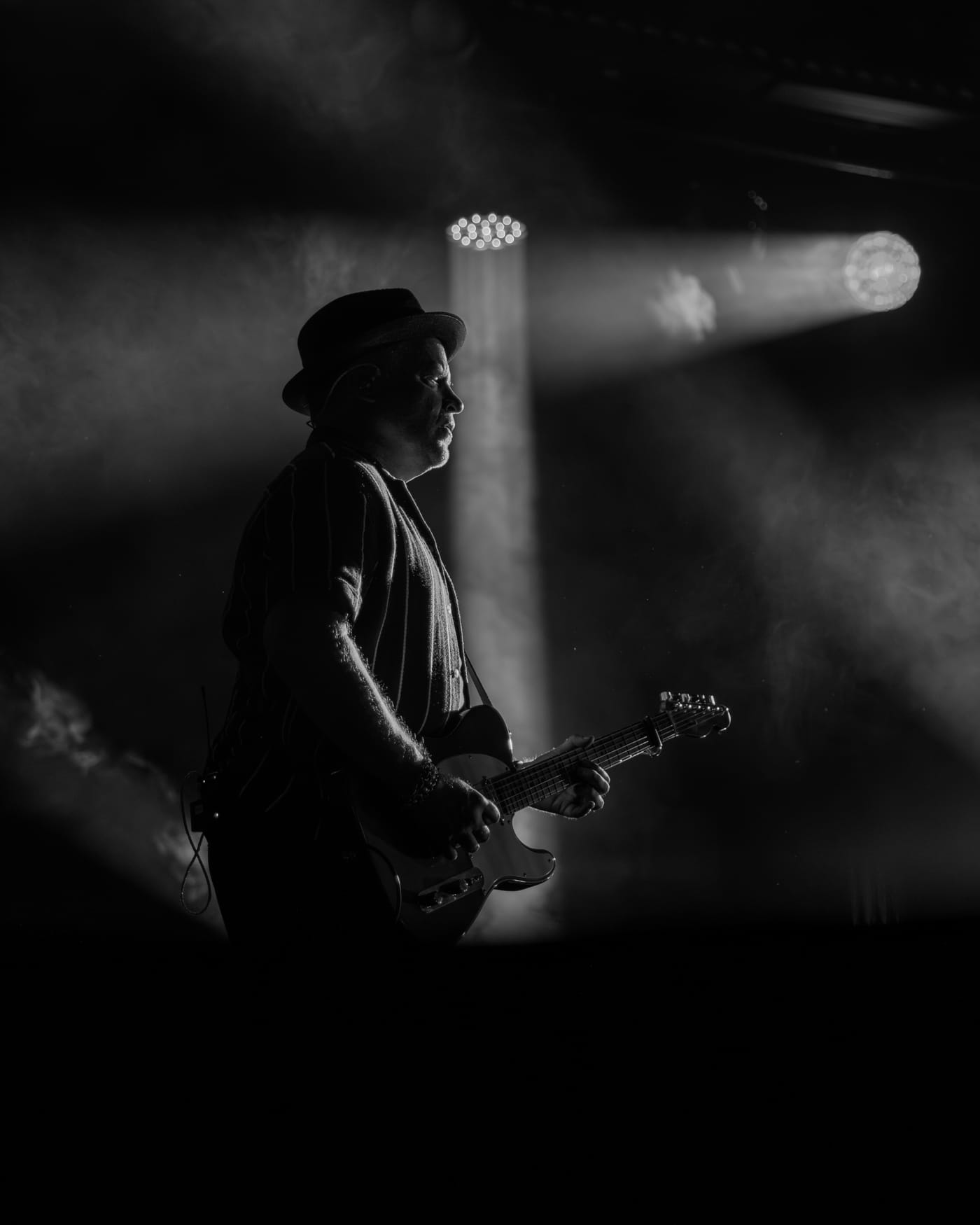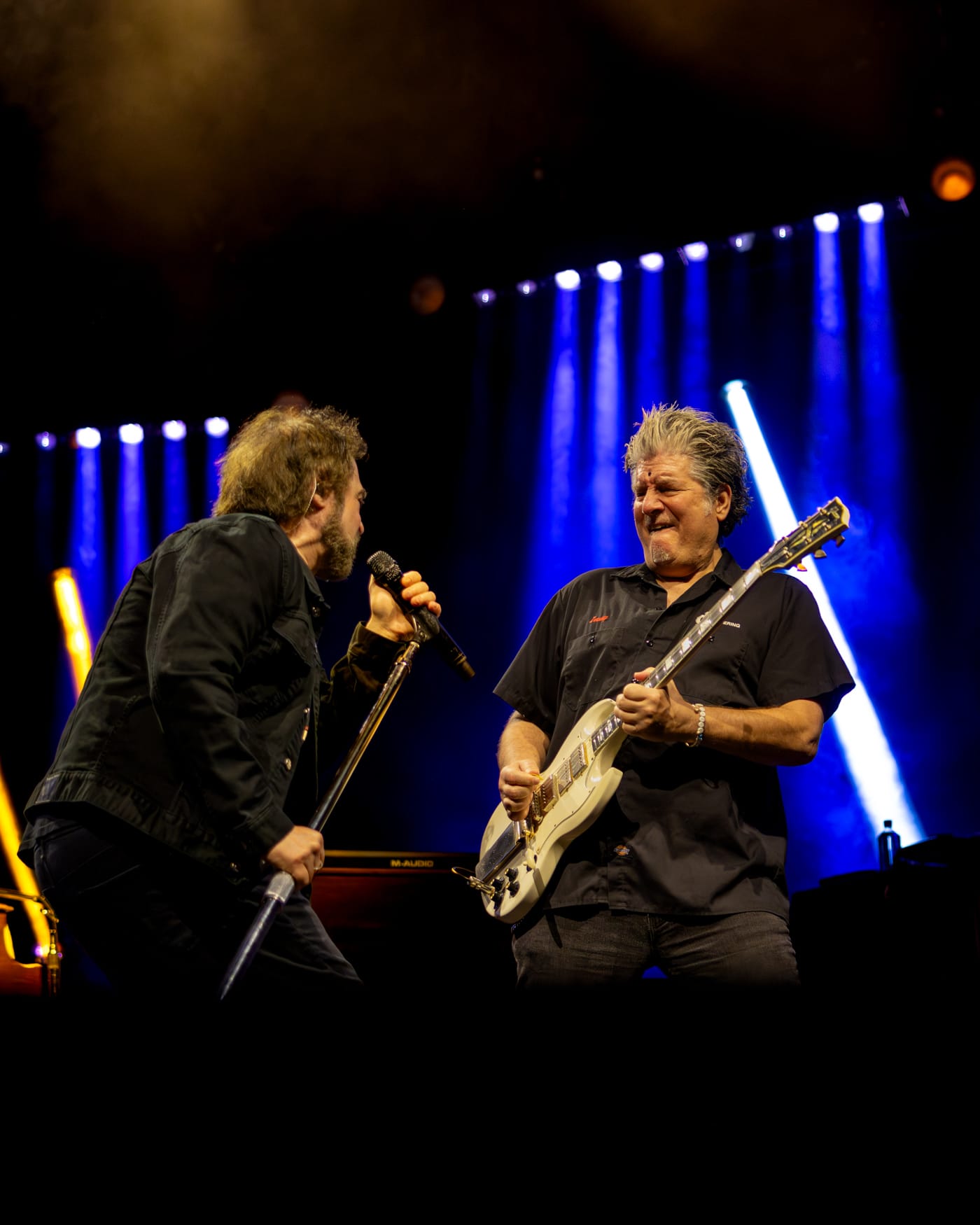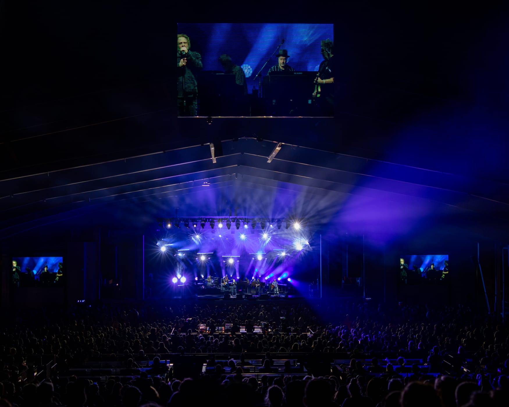 It was a hot, humid Wednesday night at BankNH Pavilion in Gilford, New Hampshire, as fans slowly made their way into the venue for Counting Crows’ The Complete Sweets! Tour. The crowd was still sparse when openers The Gaslight Anthem took the stage, but people trickled in steadily, constantly wiping sweat from their brows. By the time Counting Crows were set to begin around 8:45, the sun had set, the air had cooled slightly and the pavilion was full. Though the band didn’t take the stage until nearly thirty minutes later, the delay only built anticipation. The crowd was loud and ready, cheering as the lights shifted to colors of yellow, blue and purple.