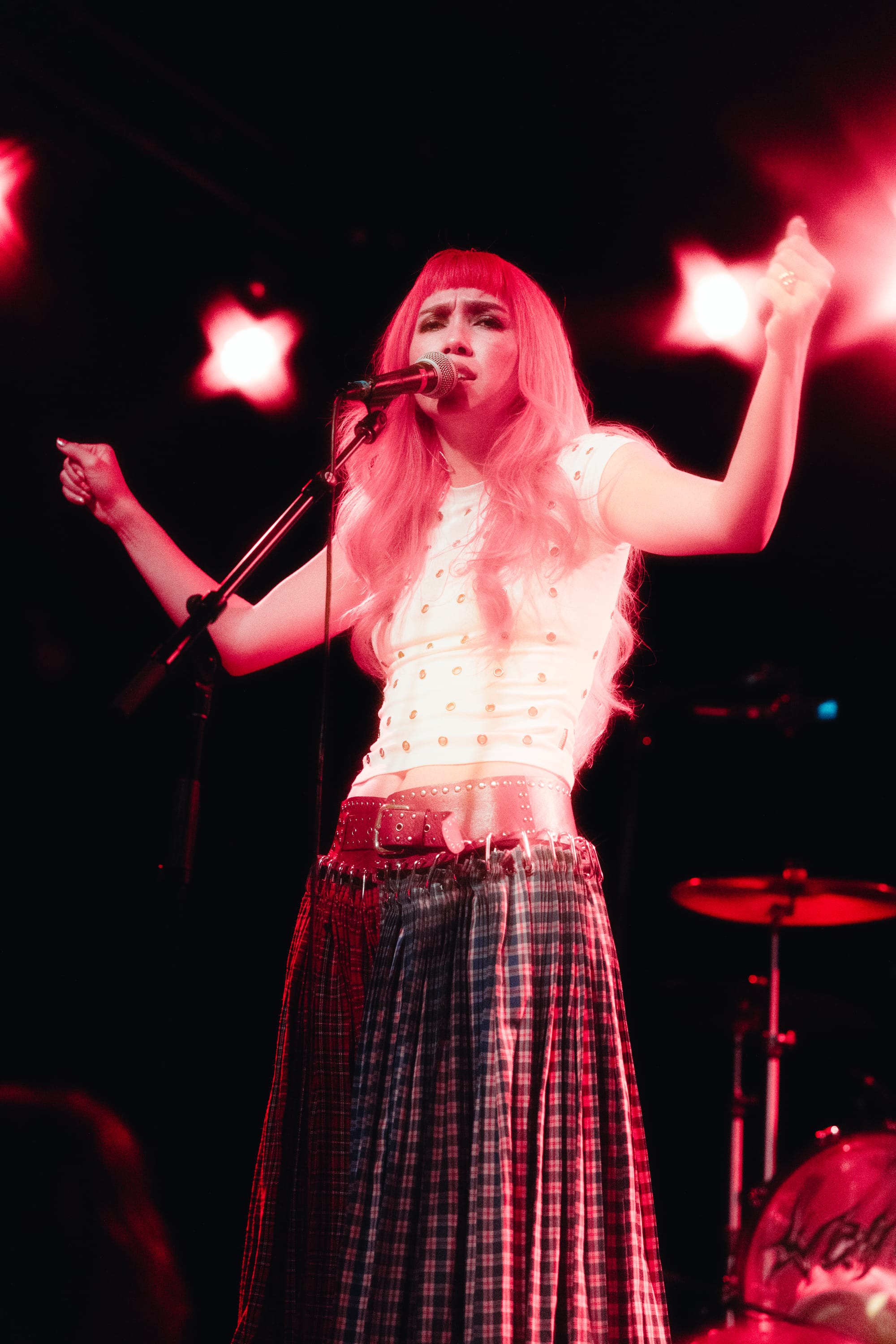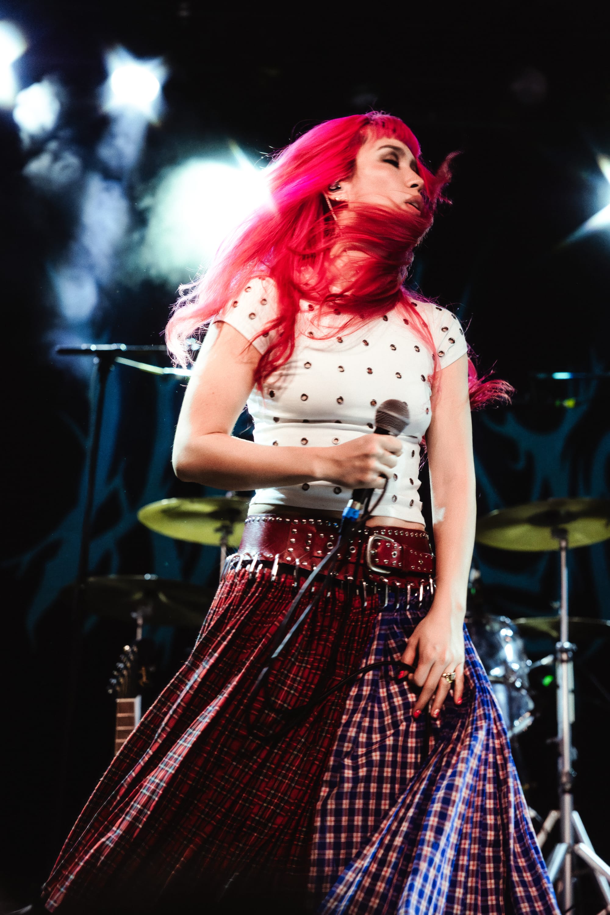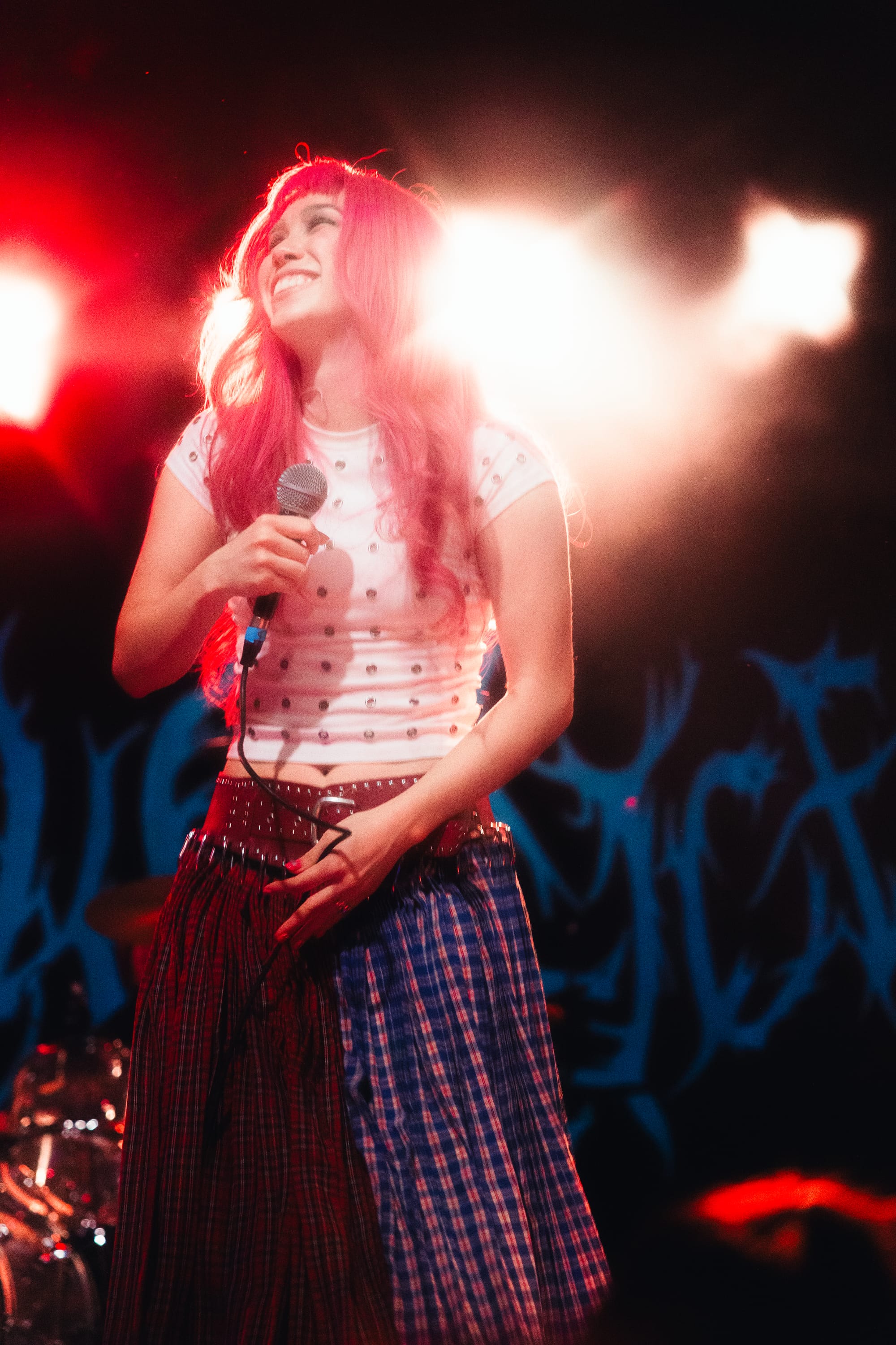 Soon after, Wallice skipped on stage with freshly dyed pink hair (which she confirmed during our portrait shoot), a white grommeted shirt, and a statement Chopova Lowena skirt. Her grunge style complemented her confident stage presence. She smiled ear to ear as fans sang every word, sharing how she was "happy you were back!" To much delight and cheers, Wallice performed unreleased tracks, including one titled "Right Light." The catchy melodies pulled everyone closer to the stage. Since Boston was one of the last stops on the tour, the audience already knew the words, which led to a call-and-response moment that made Wallice giddy.