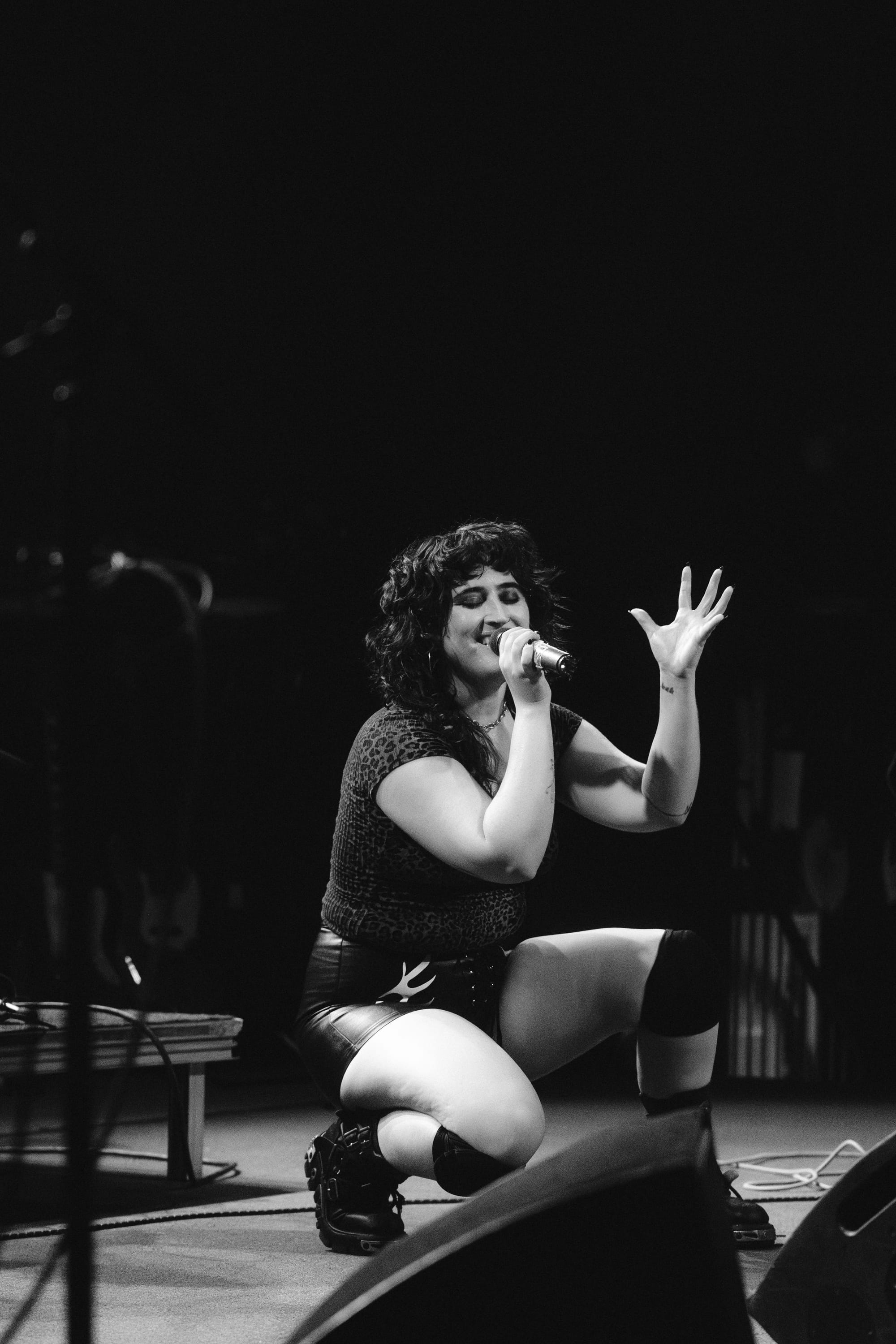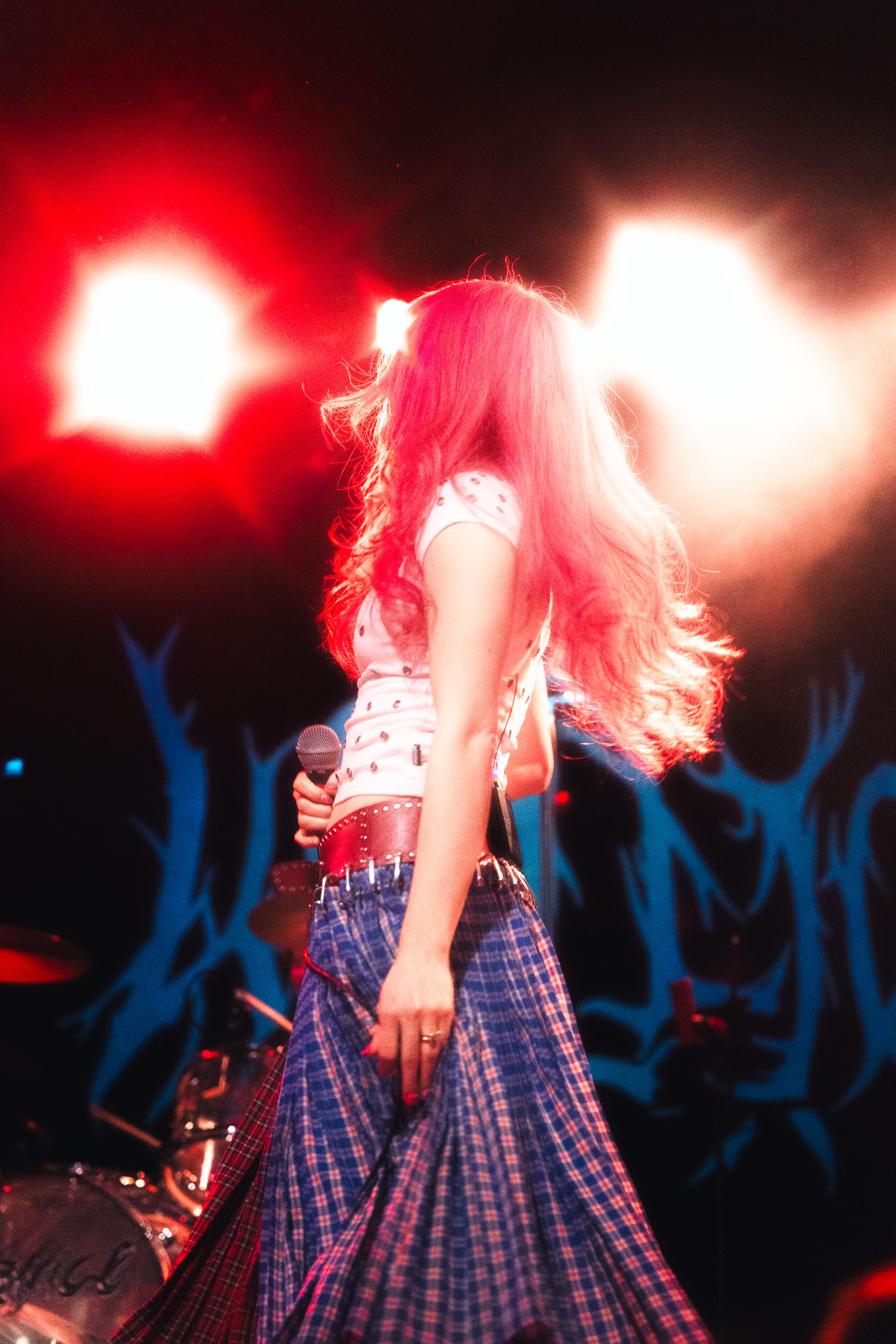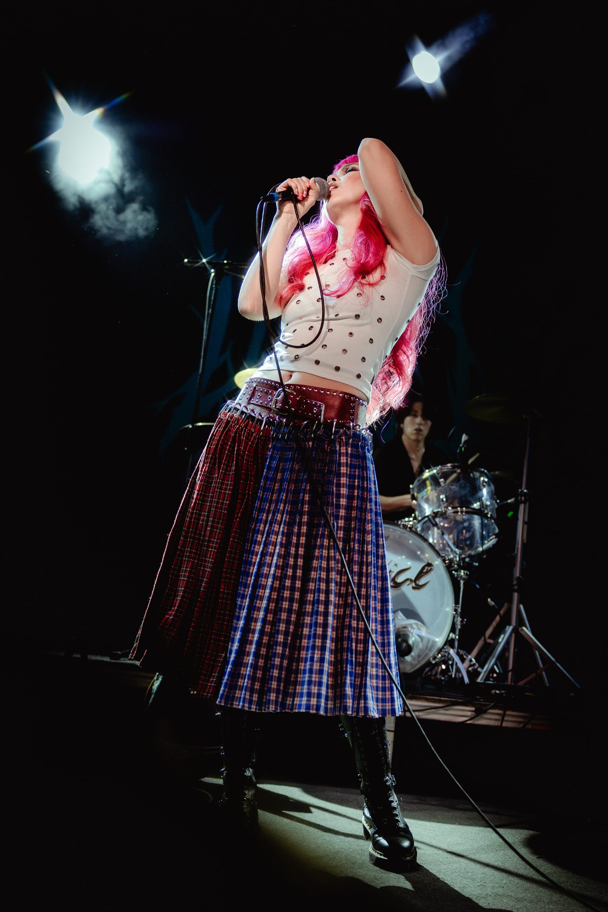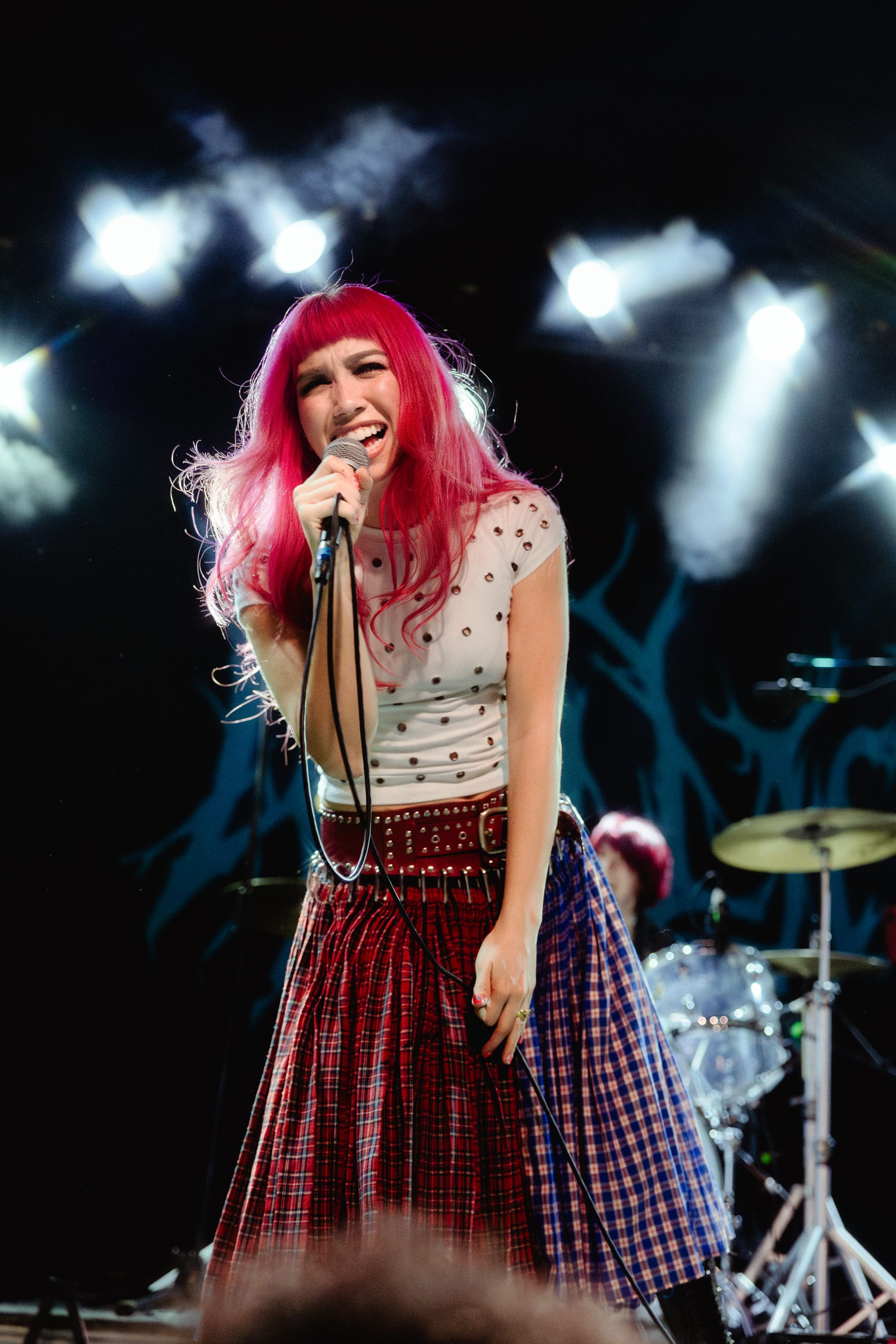 Soon after, Wallice skipped on stage with freshly dyed pink hair (which she confirmed during our portrait shoot), a white grommeted shirt, and a statement Chopova Lowena skirt. Her grunge style complemented her confident stage presence. She smiled ear to ear as fans sang every word, sharing how she was "happy you were back!" To much delight and cheers, Wallice performed unreleased tracks, including one titled "Right Light." The catchy melodies pulled everyone closer to the stage. Since Boston was one of the last stops on the tour, the audience already knew the words, which led to a call-and-response moment that made Wallice giddy.