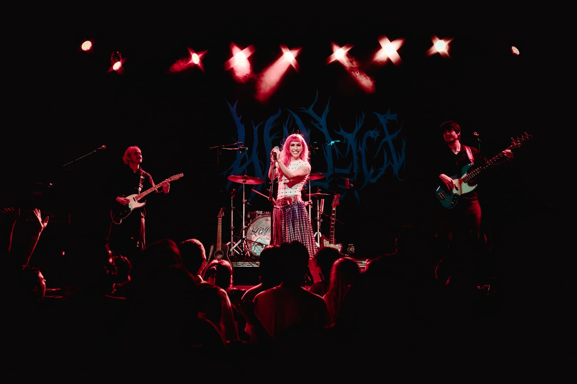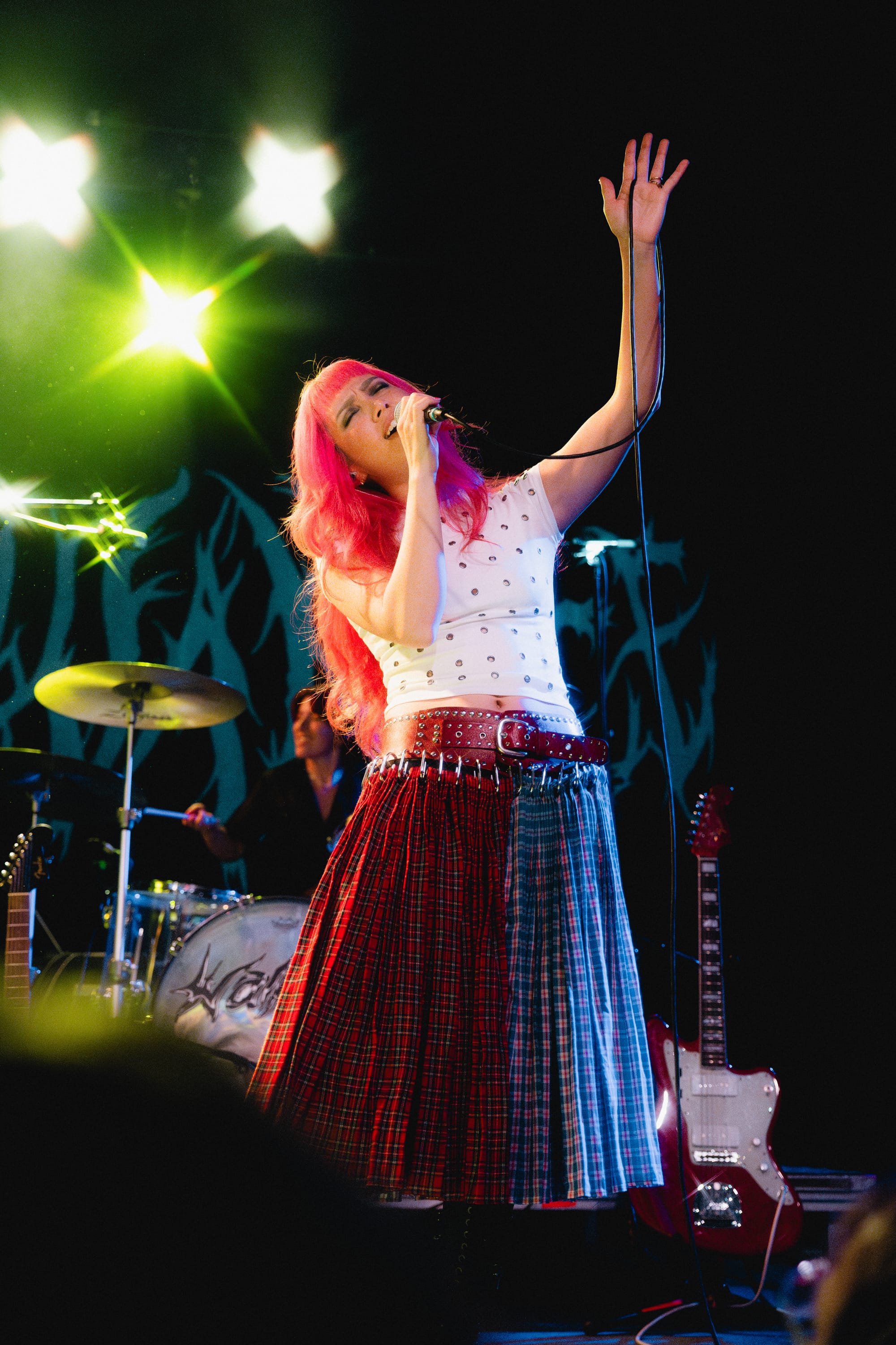 Rising indie pop rock star Wallice stopped by The Sinclair on April 13th to deliver an electric show. After bringing her tour to Boston in February of 2025, fans were itching for another headline show in the city. The night began with indie grunge band Fake Dad. They set the euphoric tone for the night, jumping around the stage and bringing the energy throughout their set. Lead singer Andrea de Varona alternated between singing in Spanish and English. She dramatically fell to her knees to effortlessly belt out high notes in a red cheetah print shirt, wrestling-inspired leather shorts, and knee pads. They paused between songs to chat about how much they love the city, with guitarist Josh Ford asking their mom in the audience to confirm that their last visit was 5 years ago. Fans could tell they were eager to be back as they made the night count. de Varona brought up three lucky fans to hang, bang, and rage out to the catchy track "Invader."