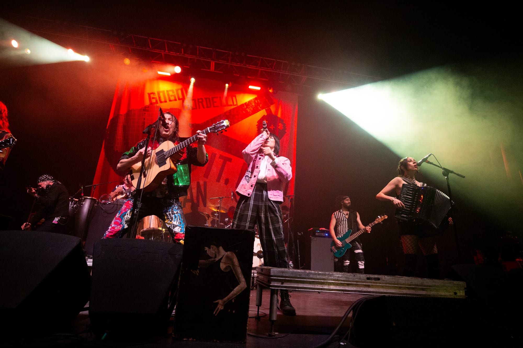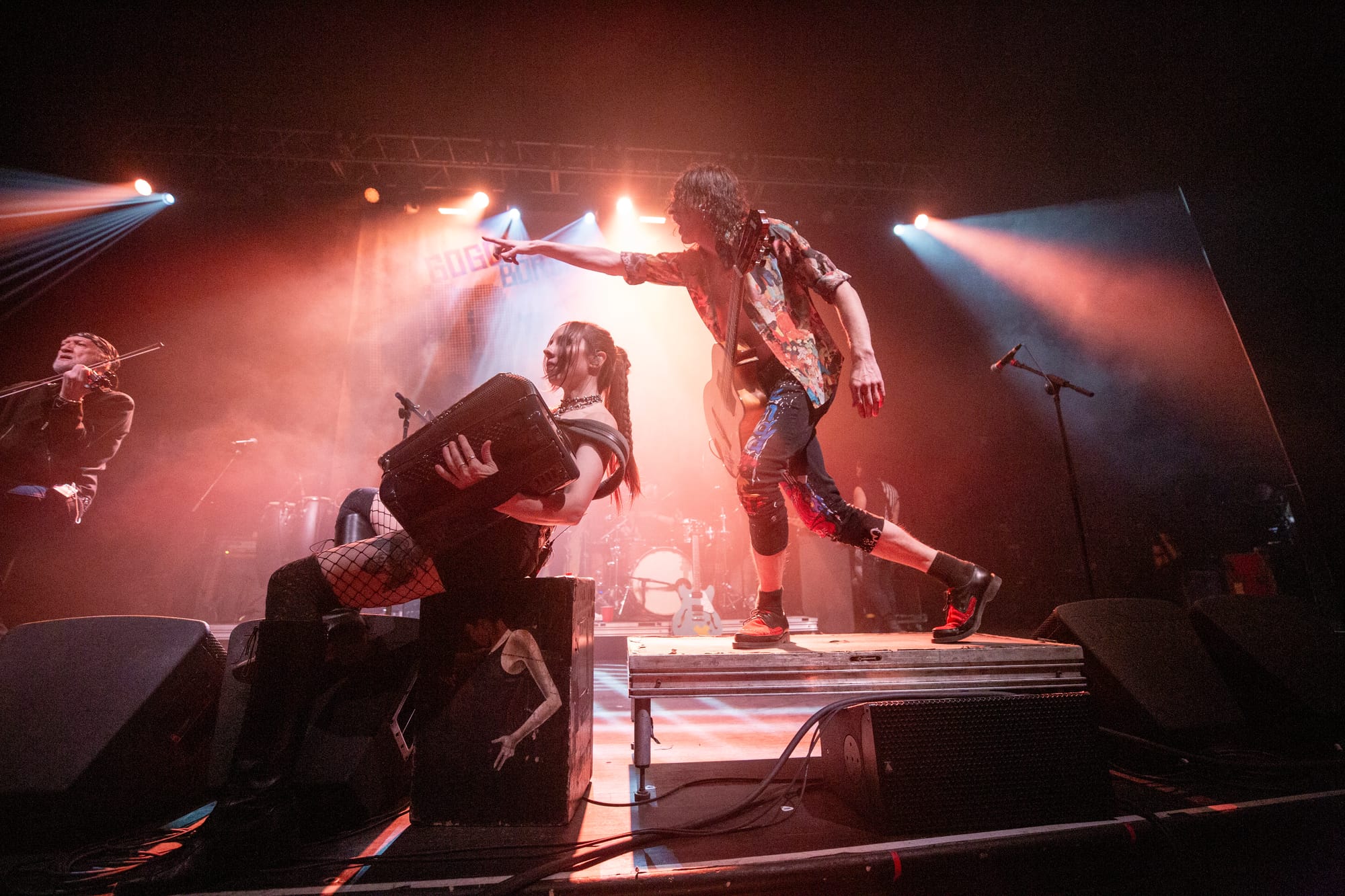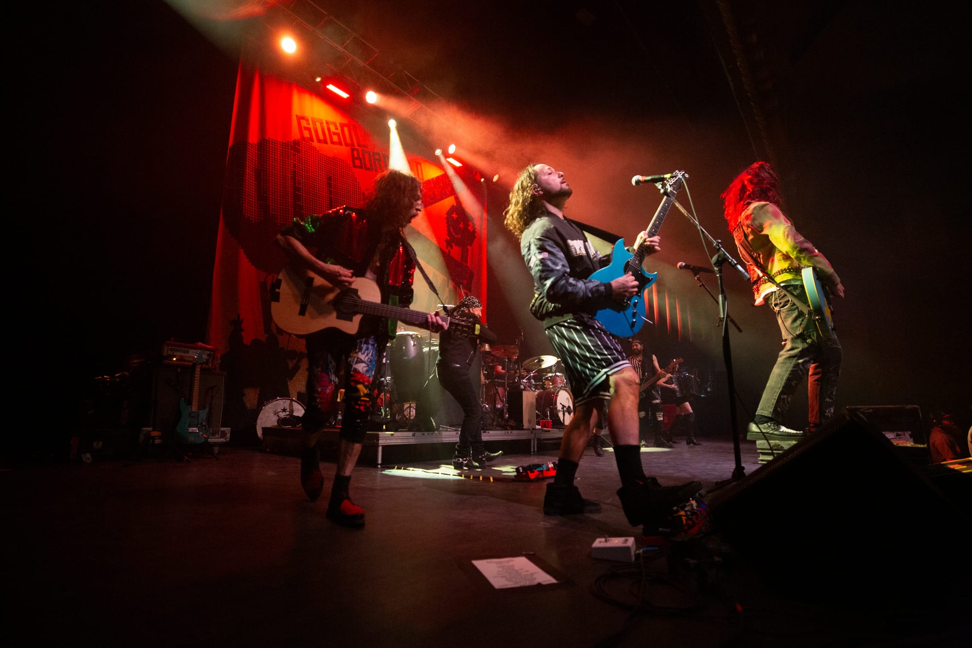 By the time “Mishto” and “Wearing Purple” hit, the entire room was airborne. Strangers locked arms. Kids danced with parents. The pit was chaos without cruelty—punk rock as community, not competition. “Pala Tute” and “Solidarity”closed the main set with fists in the air and sweat dripping from the ceiling, a reminder that Gogol Bordello’s heart has always been as big as their noise.