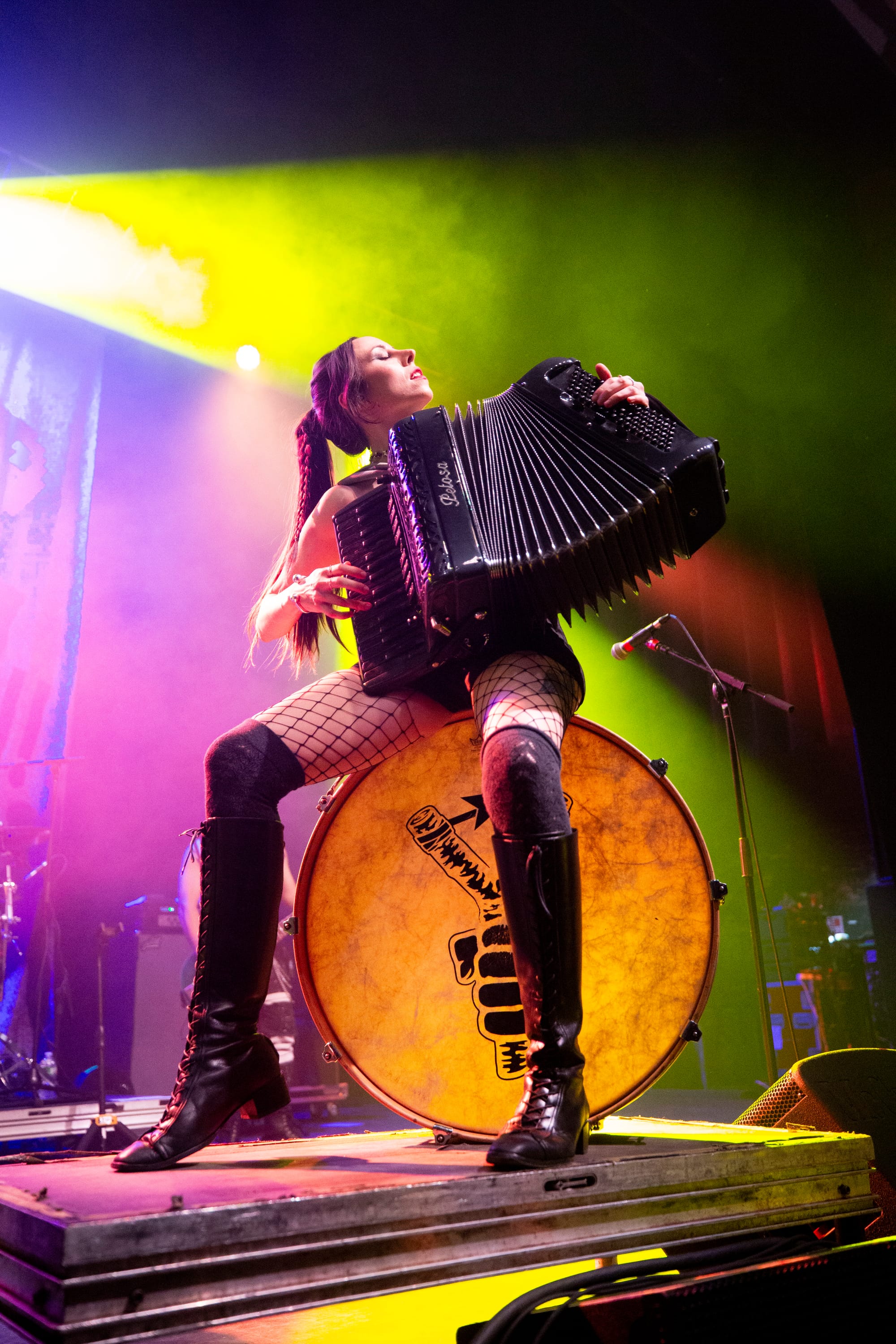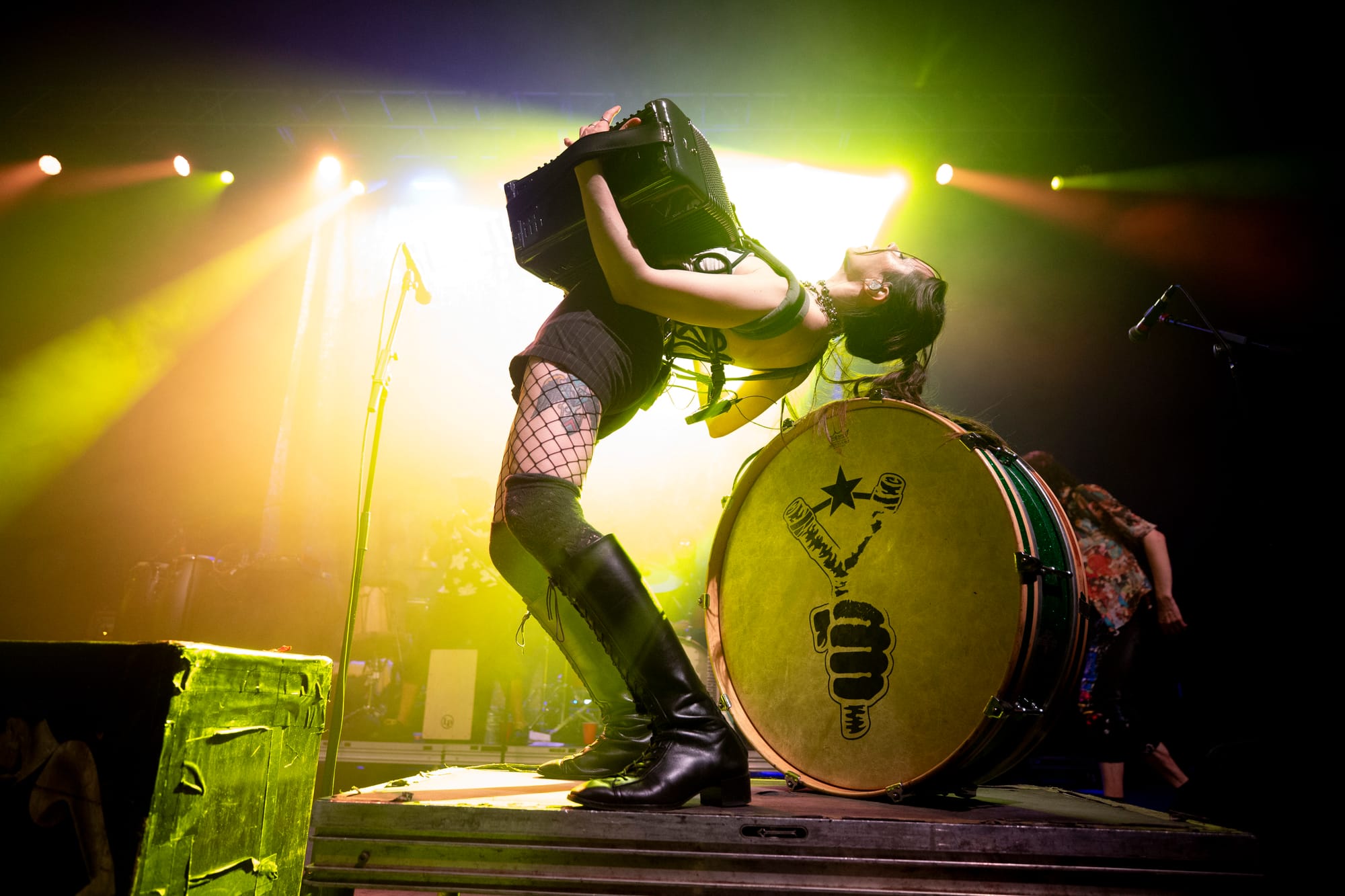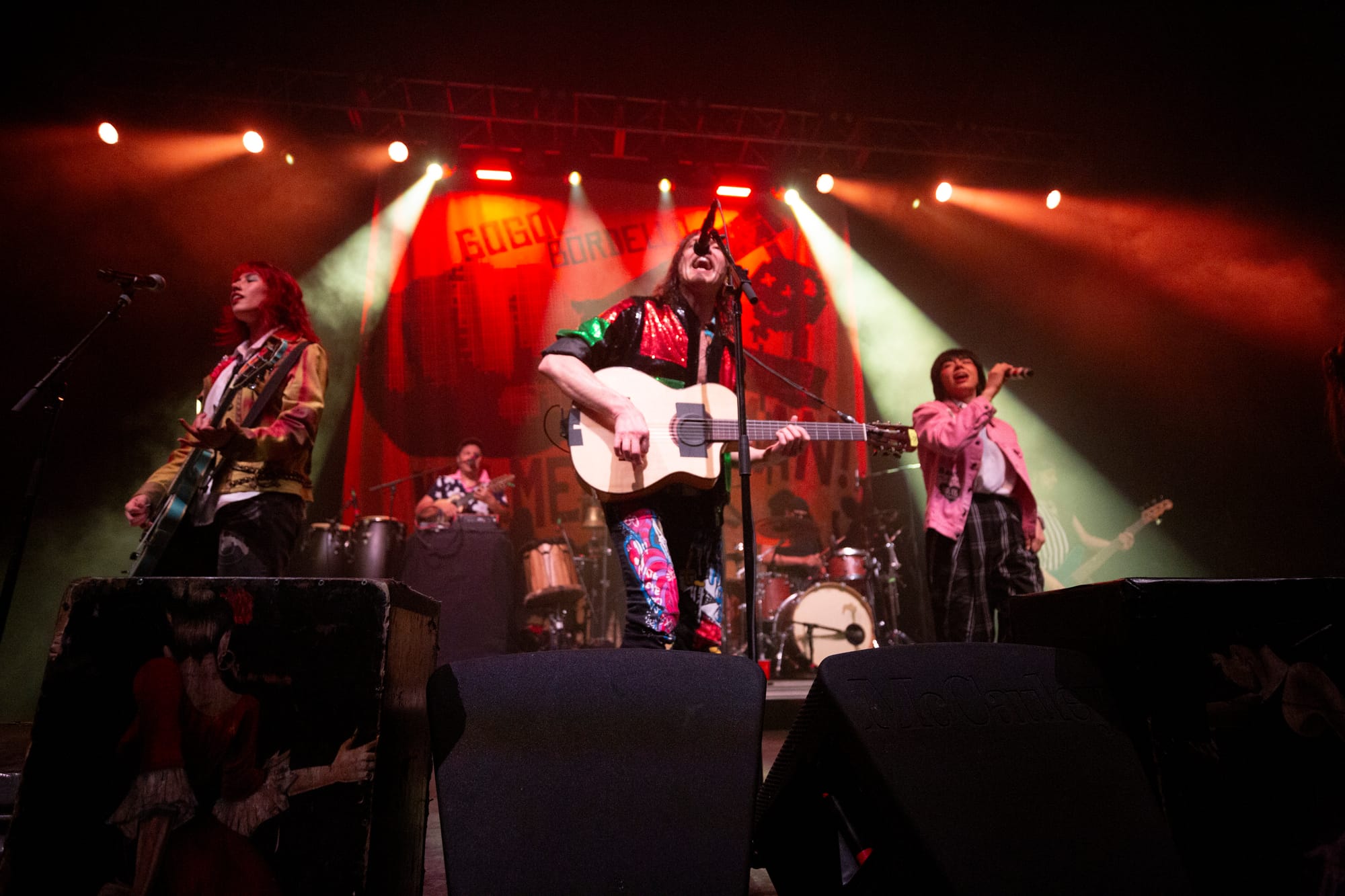 By the time “Mishto” and “Wearing Purple” hit, the entire room was airborne. Strangers locked arms. Kids danced with parents. The pit was chaos without cruelty—punk rock as community, not competition. “Pala Tute” and “Solidarity”closed the main set with fists in the air and sweat dripping from the ceiling, a reminder that Gogol Bordello’s heart has always been as big as their noise.
