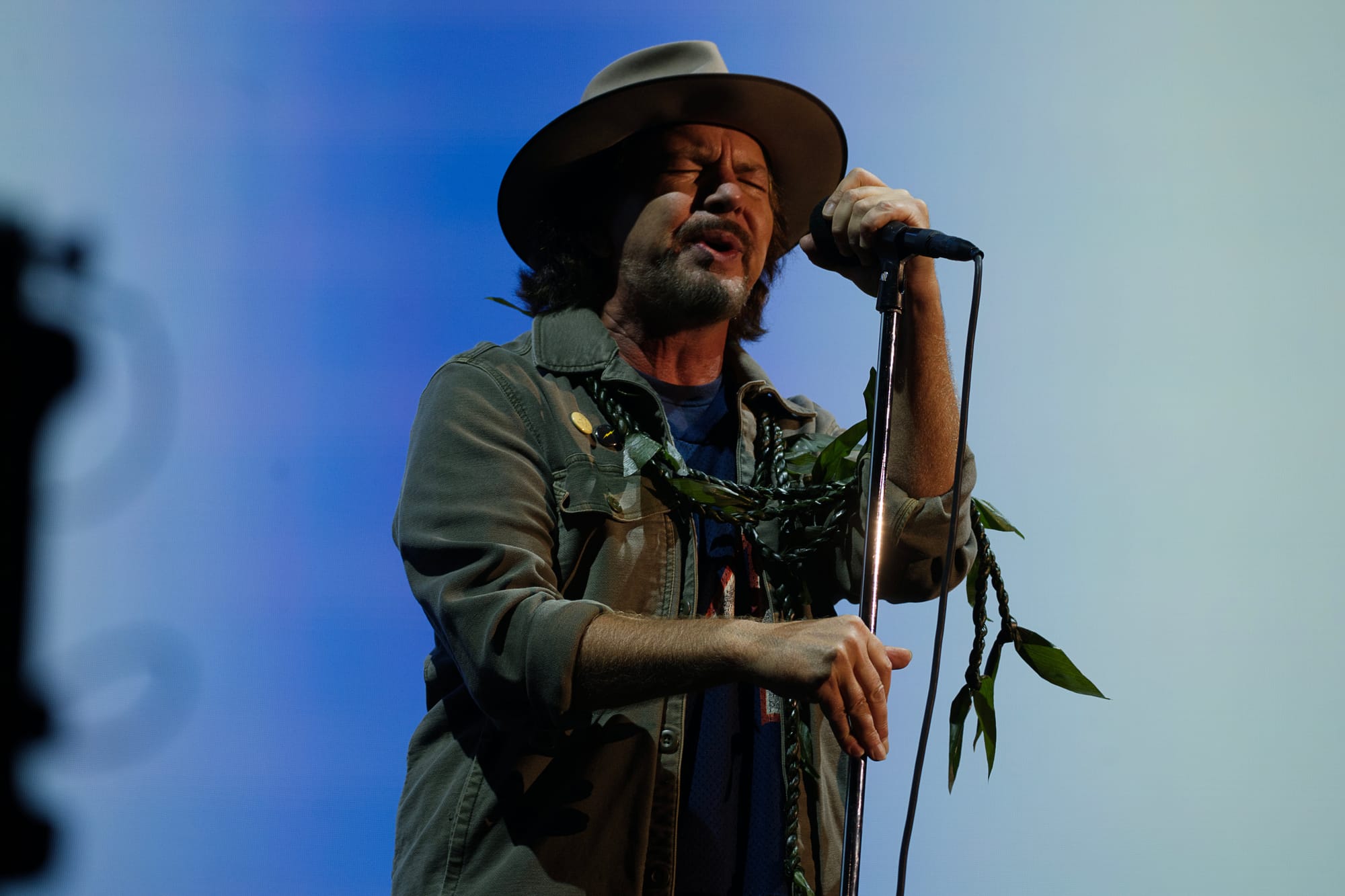 Pearl Jam took the stage early in the evening, and proceeded to play an almost 3-hour set, packed with new material and original classics. The band opened with "Footsteps", entirely backlit, as the crowd immediately began cheering and singing along with the silhouettes of the rockstars. The lights came on for "Release" and "Given To Fly", before Vedder gifted two ti leaf leis he'd been wearing to lucky fans in the front row.