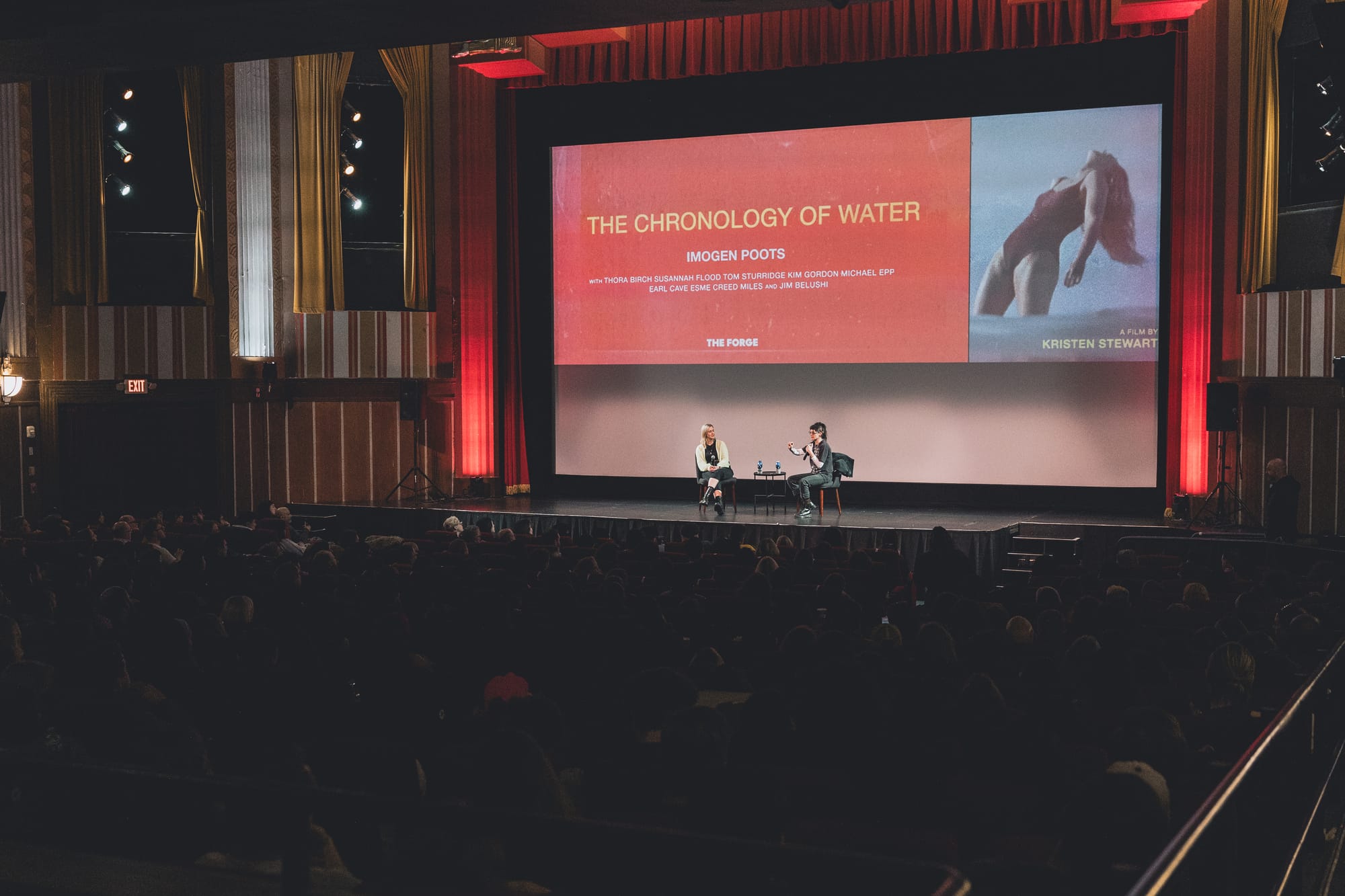 On Wednesday, January 14th, the Coolidge Corner Theatre hosted filmmaker Kristen Stewart and production designer Jen Dunlap for a candid Q&A following an advanced screening of The Chronology of Water. Based on the beloved memoir by Lidia Yuknavitch, Stewart’s directorial debut and screenplay masterfully translate the visceral elements of The Chronology of Water to the big screen. The film was shot on 16mm, adding a raw, intimate lens to the unflinching portrait of survival, sexuality, and self-invention.