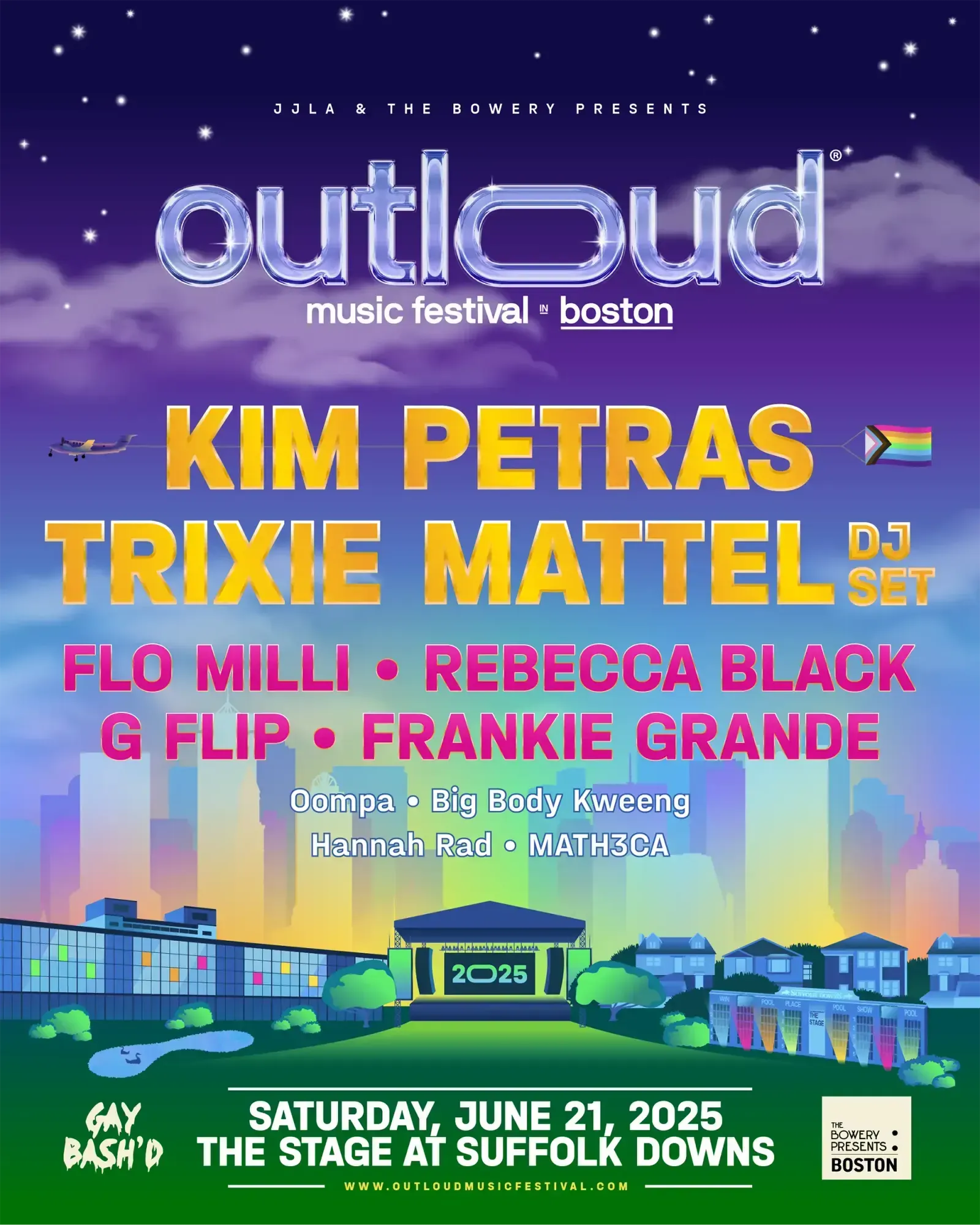 Boston's Pride Month is shaping up to be the can't-miss extravaganza of the year. The OUTLOUD Music Festival will travel to the East Coast this June at The Stage at Suffolk Downs. Iconic LGBTQ+ acts like Kim Petras and Trixie Mattel will headline, with a star-studded undercard performing throughout the day. Just last weekend, Mattel made her Coachella 2025 debut. The OUTLOUD festival is founded by Jeff Consoletti, a Massachusetts native, making its homecoming extra meaningful.