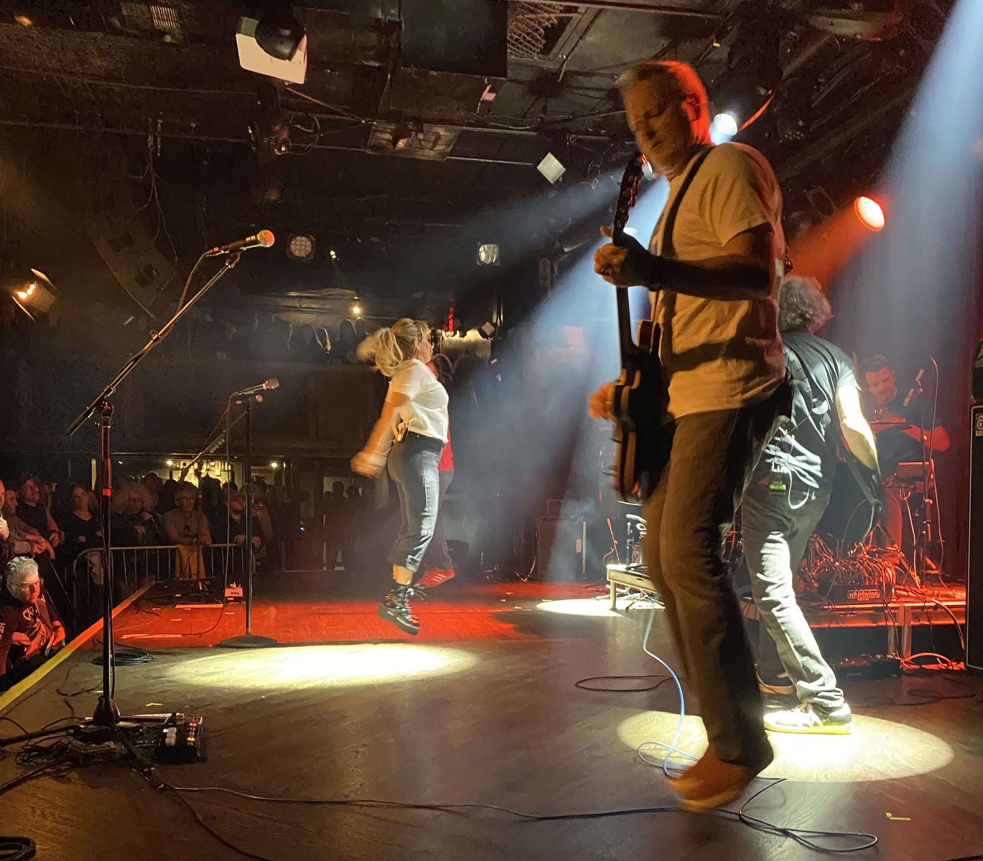 Eisenstein and McKenna’s guitar interplay was equally impressive. Their tones on “Jennifer”, “Acid Jed” and” Little Rosa” in particular were in line with the recorded versions, but with added spontaneity and liveliness to shine on the concert stage. McKenna’s well executed feedback on the latter track heightened the ambience in a room already bursting with that magical x factor that comes out on special nights at the Paradise. Klompus and Jones’ bass and drum interplay had the crowd bouncing along, giving a strong backbone to the multilayered song selection. The band never stayed still, as kinetic energy flowed across the stage, then through the crowd.
