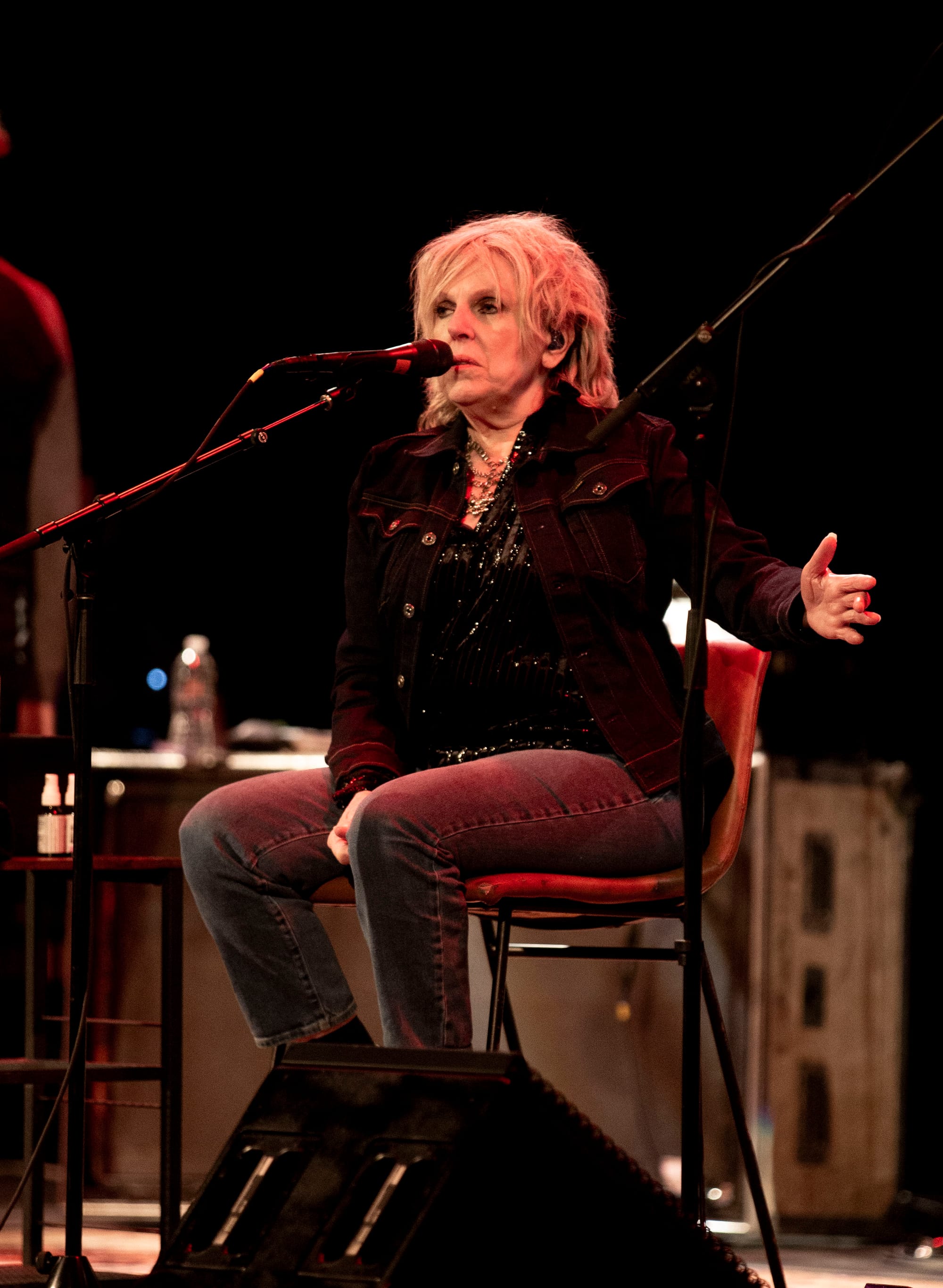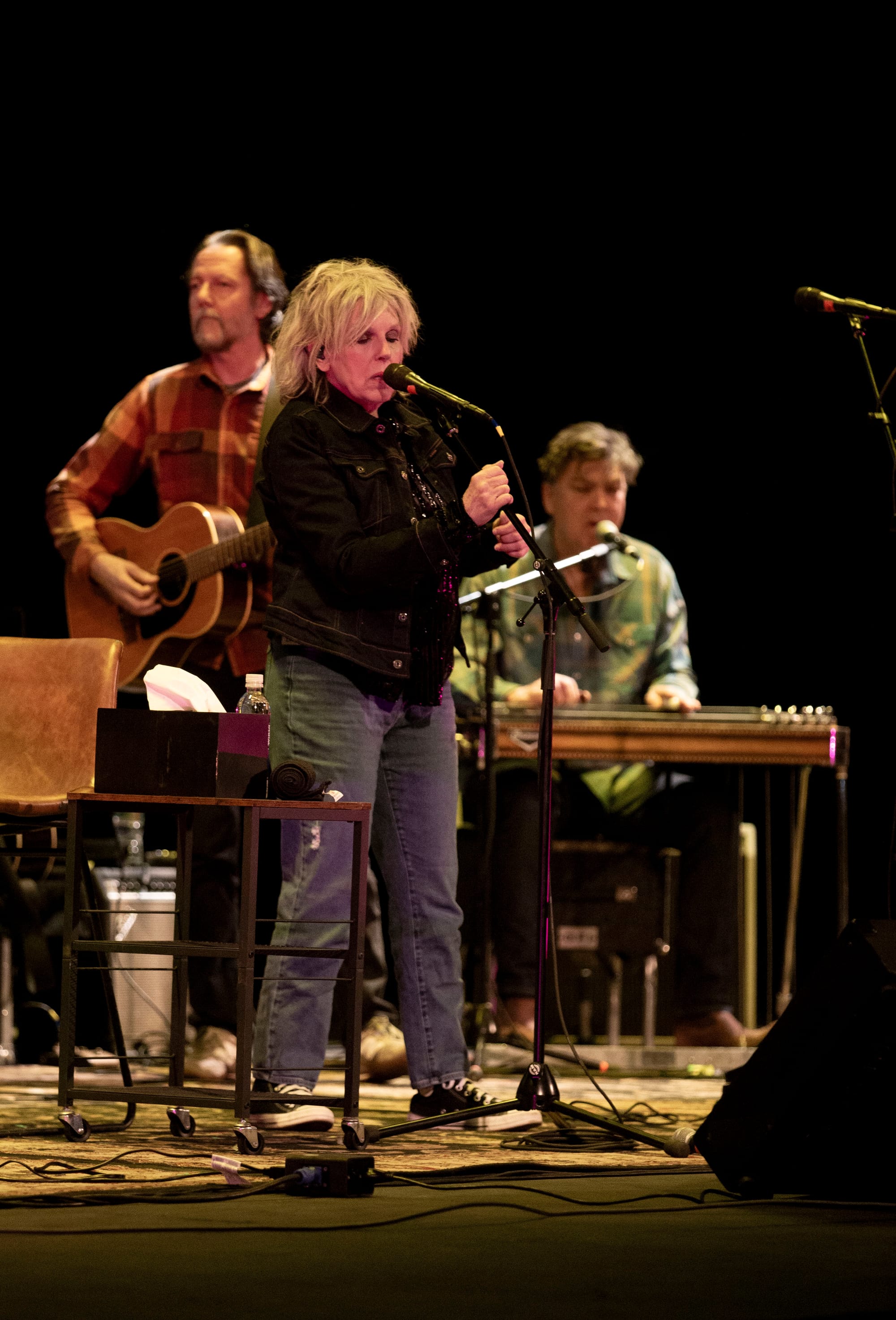 Opening with the soulful “Blind Pearly Brown” and the timeless “Freight Train,” Williams immediately established the evening’s reflective tone. Each song came with a story, seamlessly weaving her musical scrapbook into vivid moments from her life. Williams weathered yet commanding voice carried the weight of her journey, drawing the audience in with every note.
