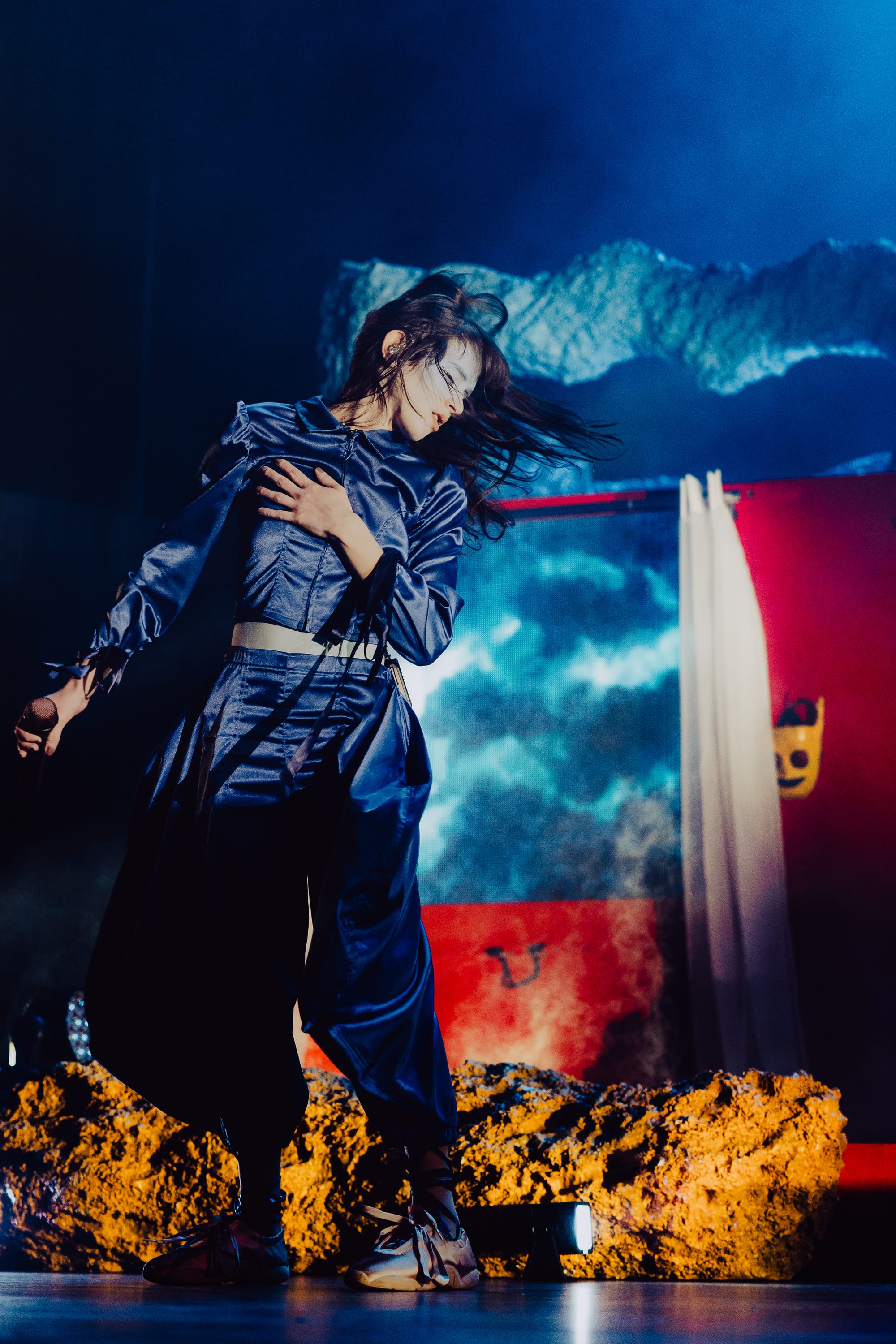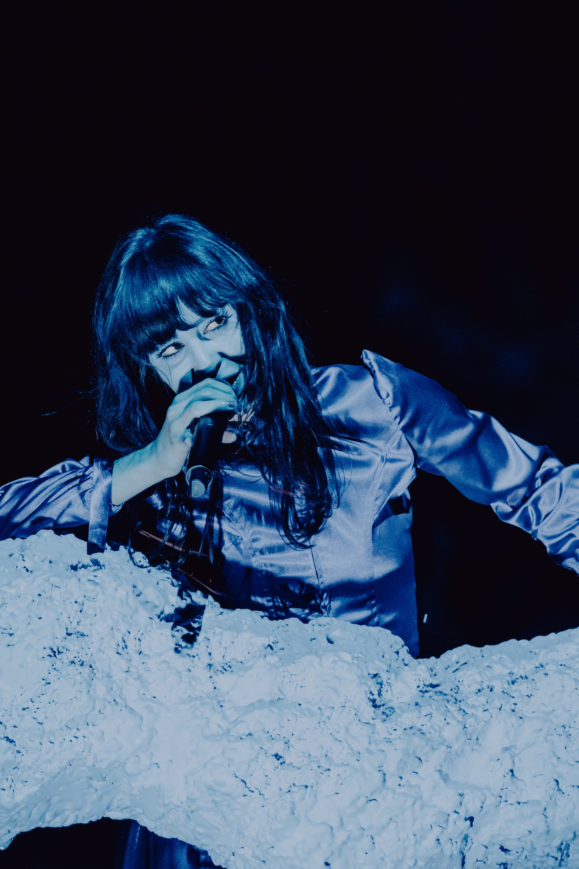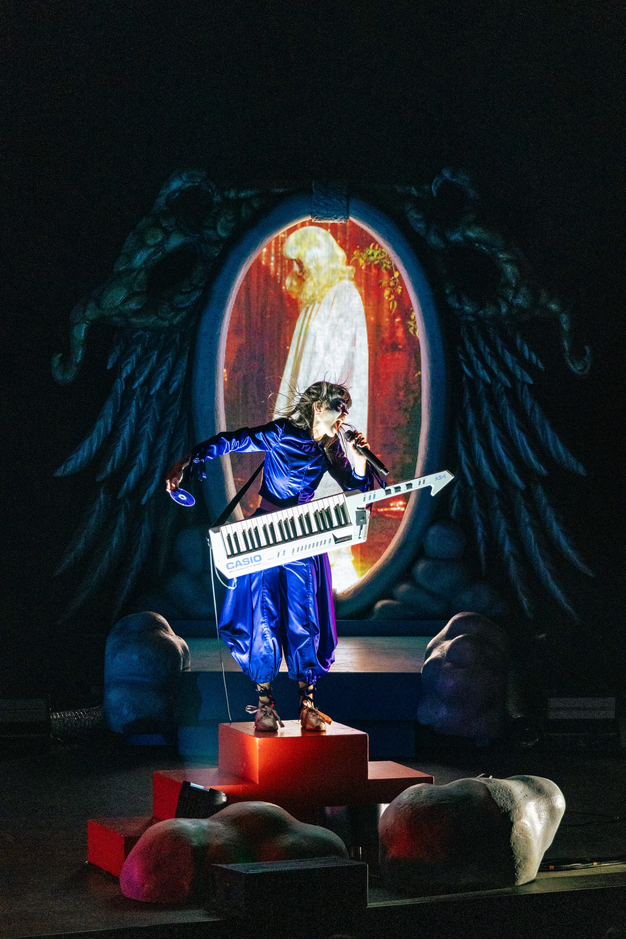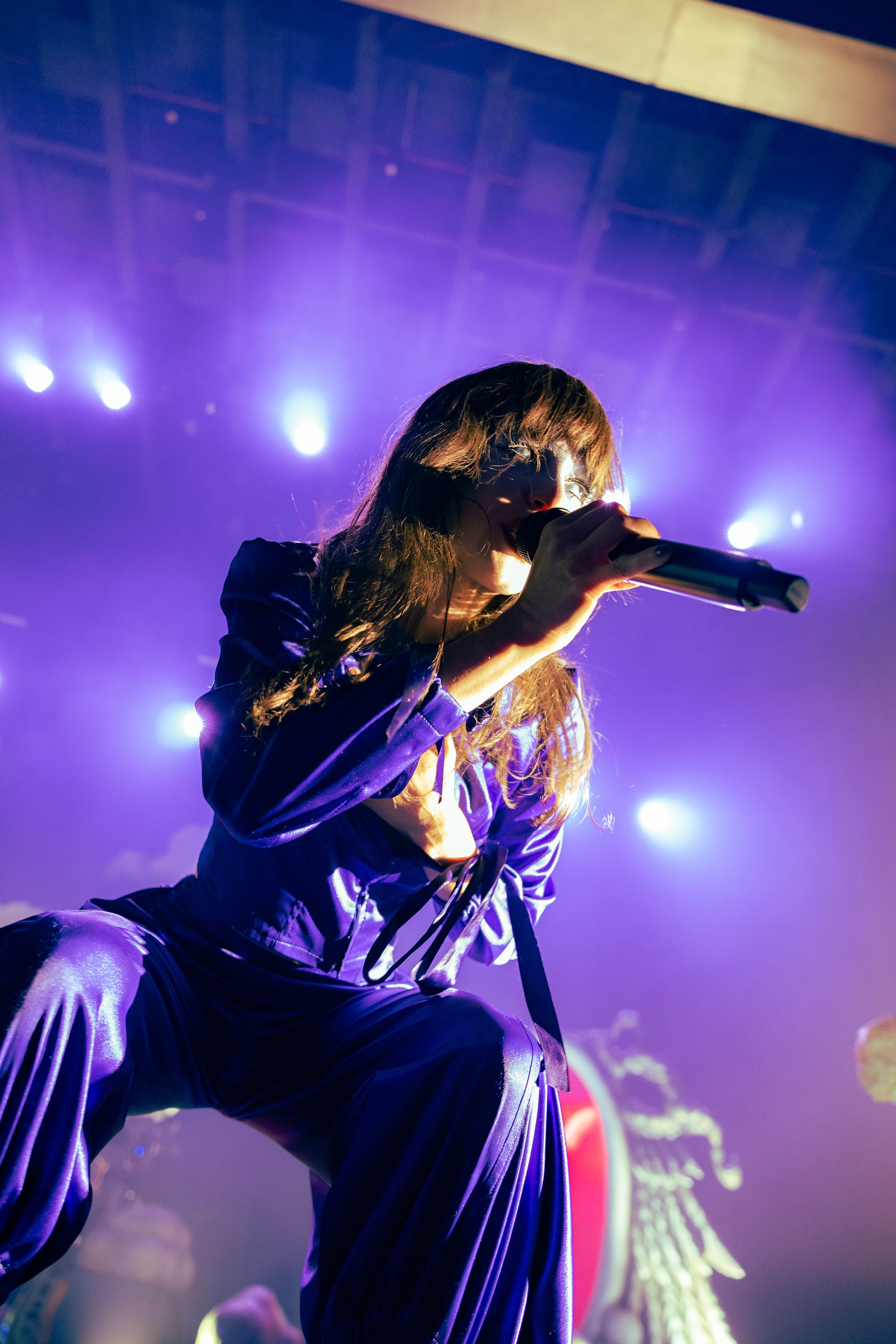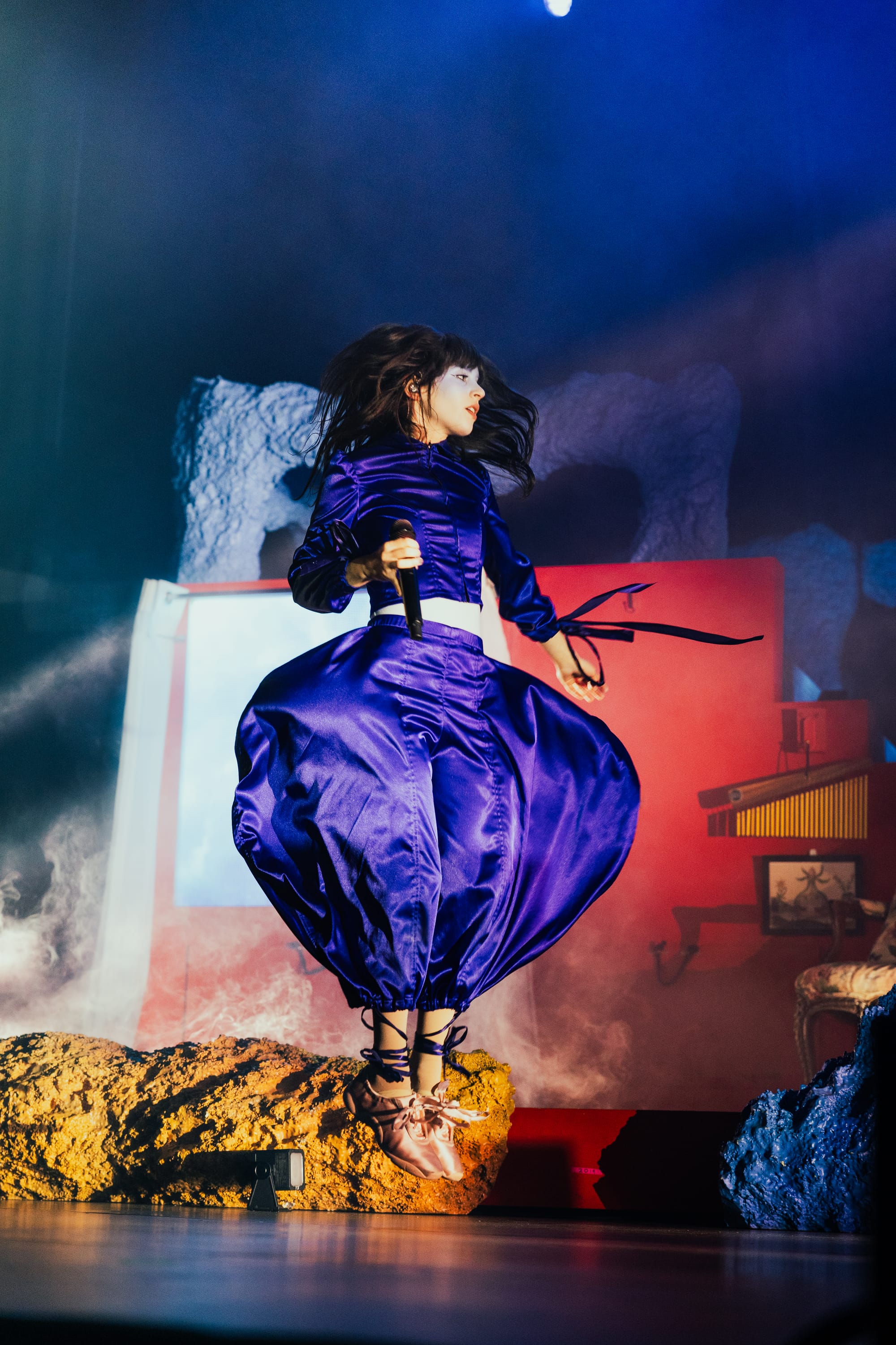 The lights dimmed, and fans released thunderous cheers. The cacophony of sounds on the Imaginal Disk opening track, "She Looked Like Me!," reverberated throughout the venue as Tenebaum appeared atop the platform, wistfully gazing around. She sang with an addictive, light, airy tone. Her silky, deep-blue, ballooned outfit created striking poses as she skipped down the stairs. They continued to play the entire Imaginal Disk album in order, with other fan-favorite tracks scattered in between. Singles like "Image" united the crowd, with the whole venue singing along.