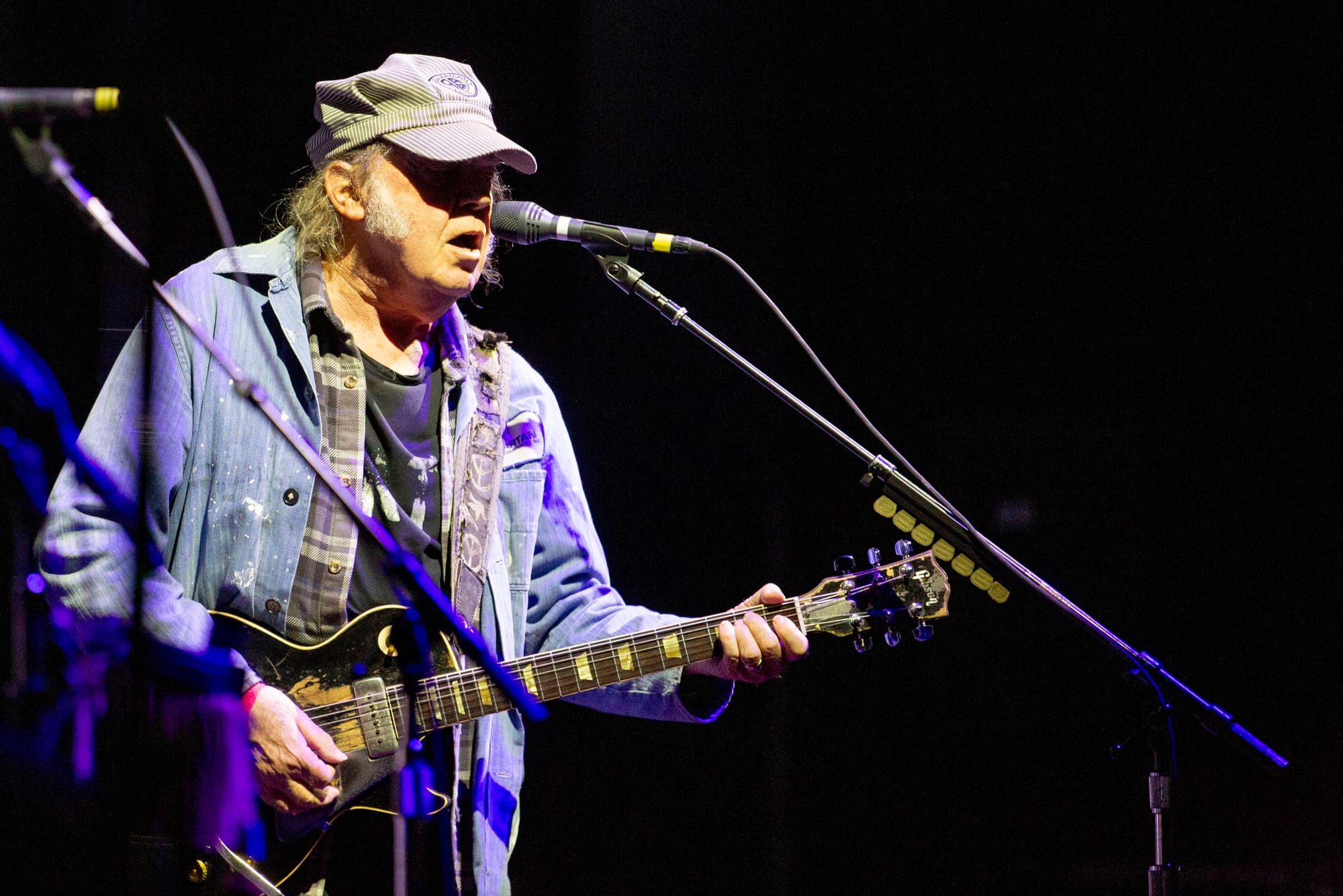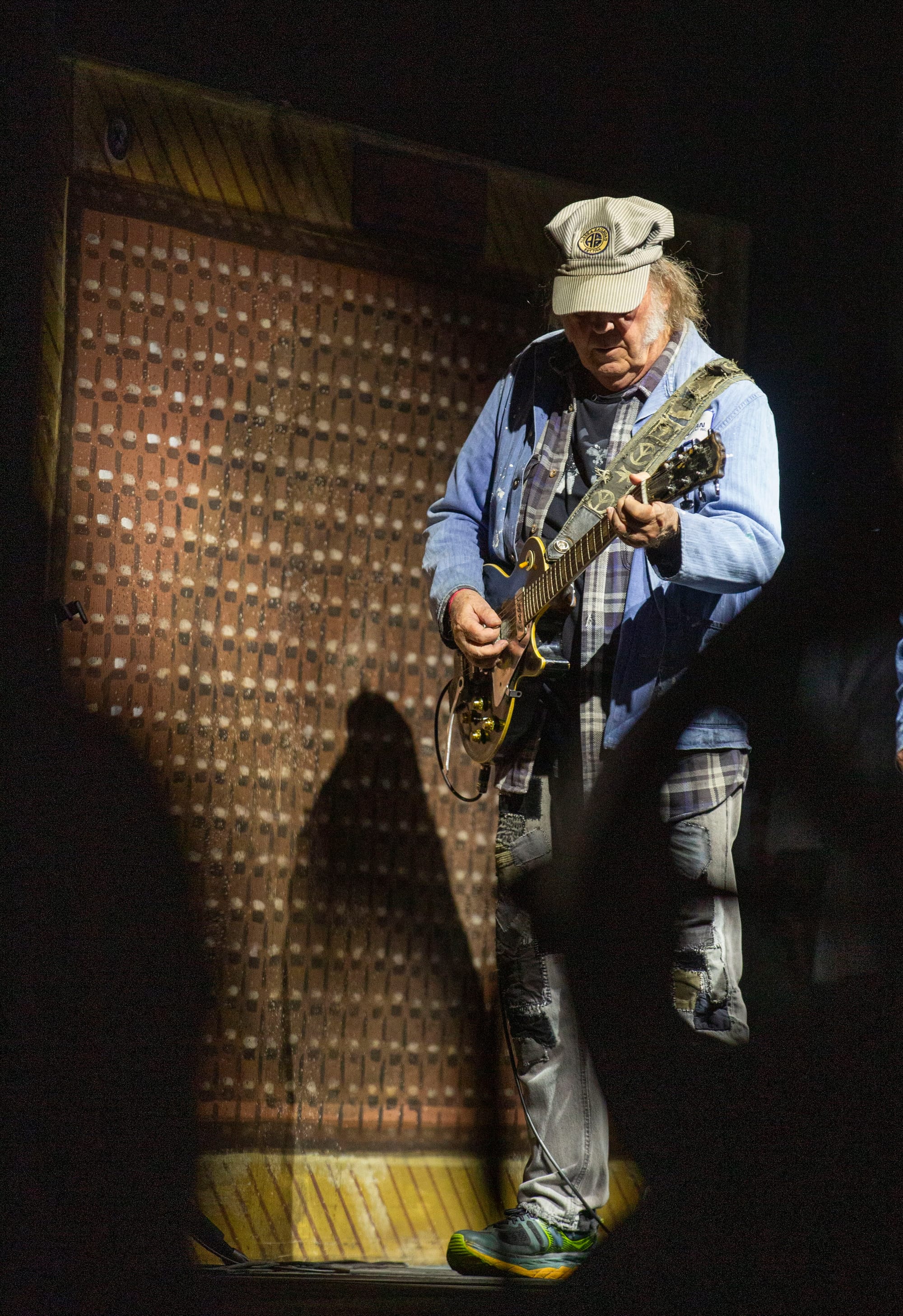 The acoustic segment of the concert was a poignant shift, with Young alone on stage, his weathered voice carrying the weight of decades. "Comes a Time," "Heart of Gold," and "Human Highway" showcased his timeless songwriting, creating an intimate atmosphere that contrasted beautifully with the high-energy rockers.