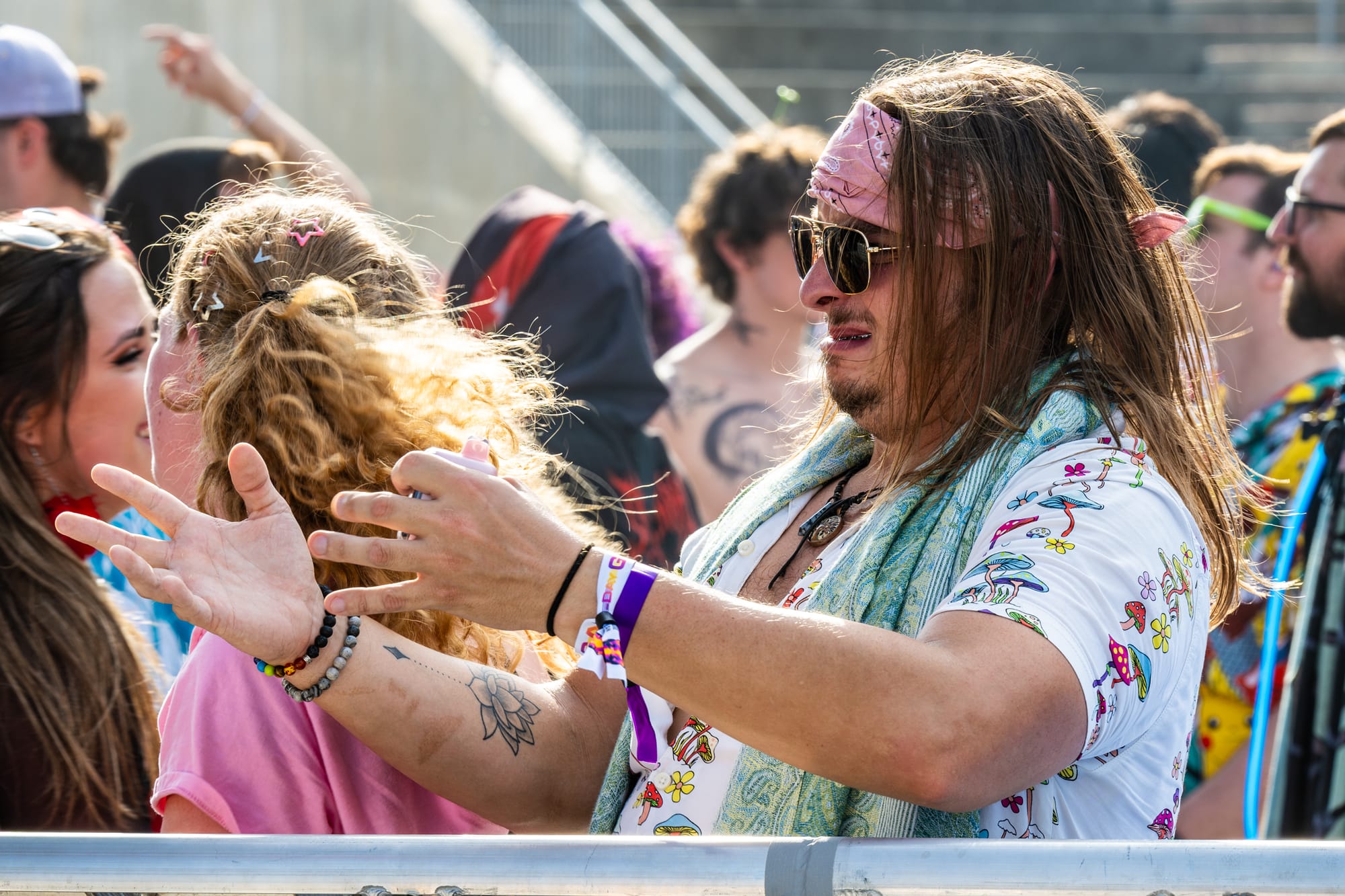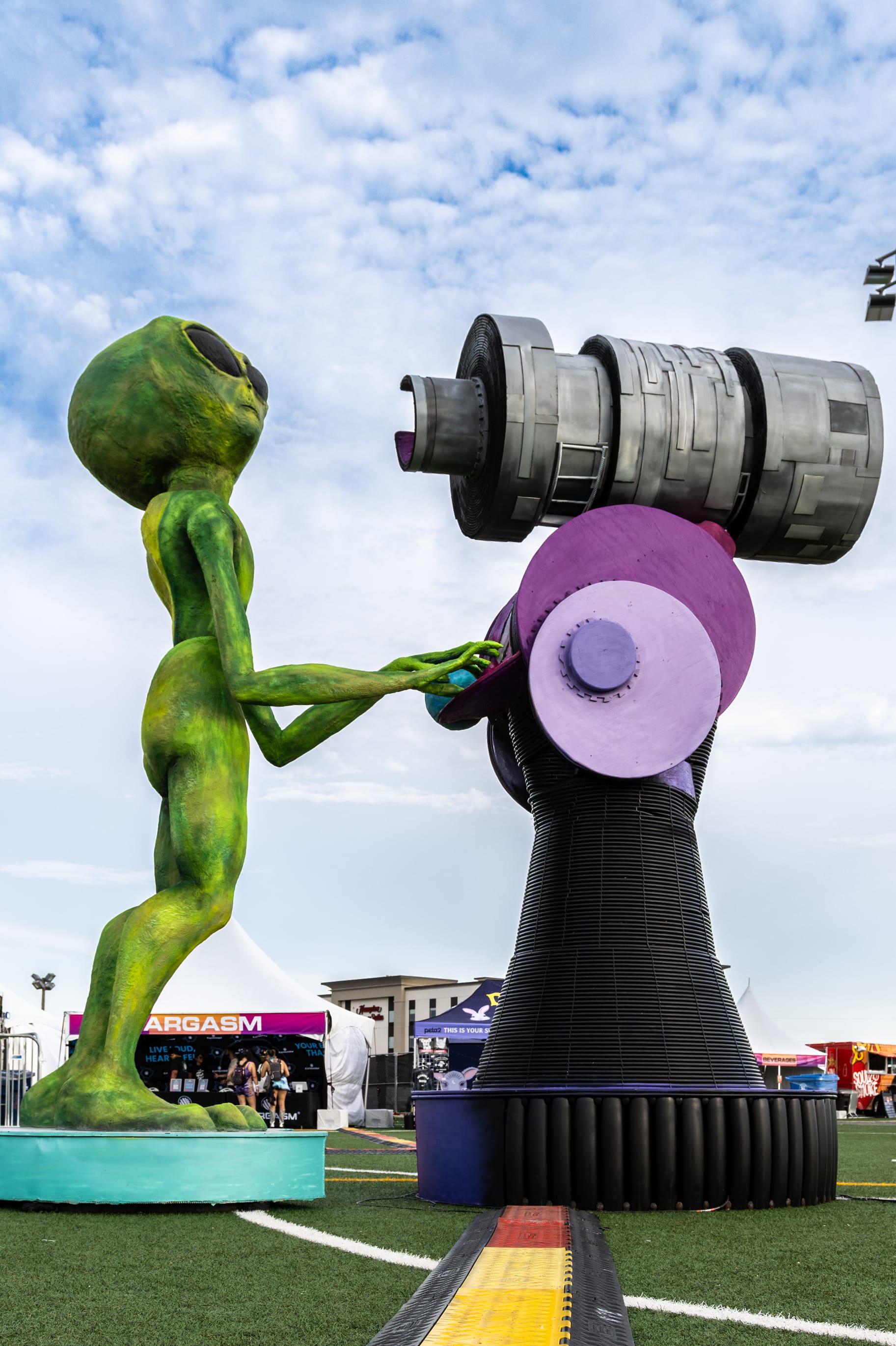 A happy Saturday it was, day 2 of 3 was finally here and there was so much to look forward to. Festival doors opened again at 2 but I arrived around 5:30 and hung out in the main stage area while waiting for ALLEYCVT to come on. I planted myself on the bleachers while Sherm performed the second set of the day at The Stadium and while waiting I made a friend that I consistently ran into throughout the remainder of the weekend. A genuinely good person with good vibes that fit just perfectly into what PLUR and the general community stand for. We talked for some time about the various sets from the day before and who we were most looking forward to that day and the communities growth and what it is today and hope to see for the future. I was so invested in the conversation that I ended up having to interrupt our conversation and literally run into the pit because ALLEYCVT had just started her set.