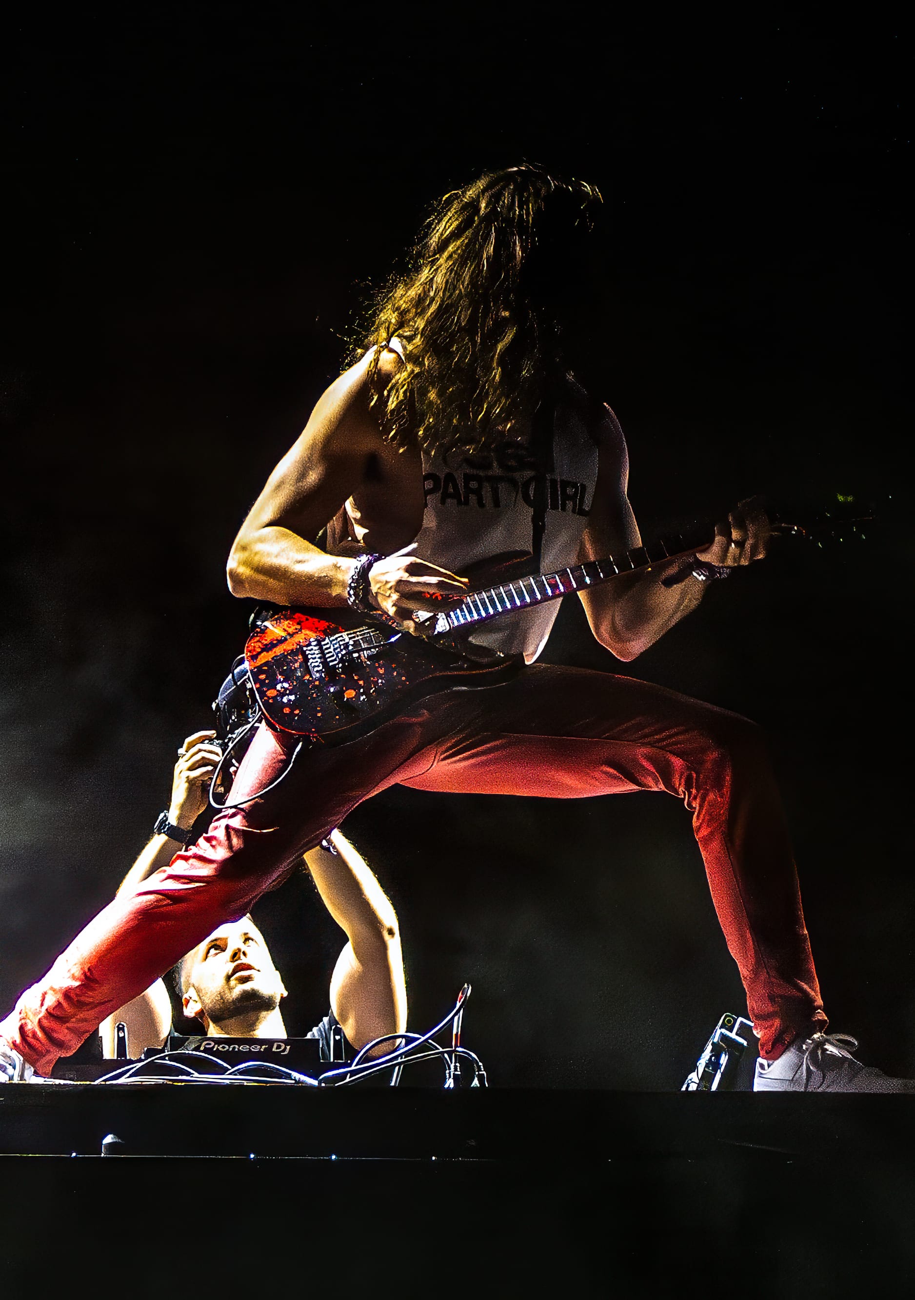 Up next was Sullivan King which was a perfect follow up to the energy the crowd was already projecting as he puts on sets that are just as insane as Diesel and has just as rowdy (but respectful) of a fan base, especially live. Sully's set was dark (a lot of reds and blacks) as far as visuals go and his set was very much what you'd expect. Wubby, bassy, metal like vibes, and of course there were several moments where he played his guitar standing atop the main platform. I had the pleasure of seeing his set later that night at the afterparty as well and I have to say his set during the festival was way better than it was at The Mansion, but that's just my opinion.