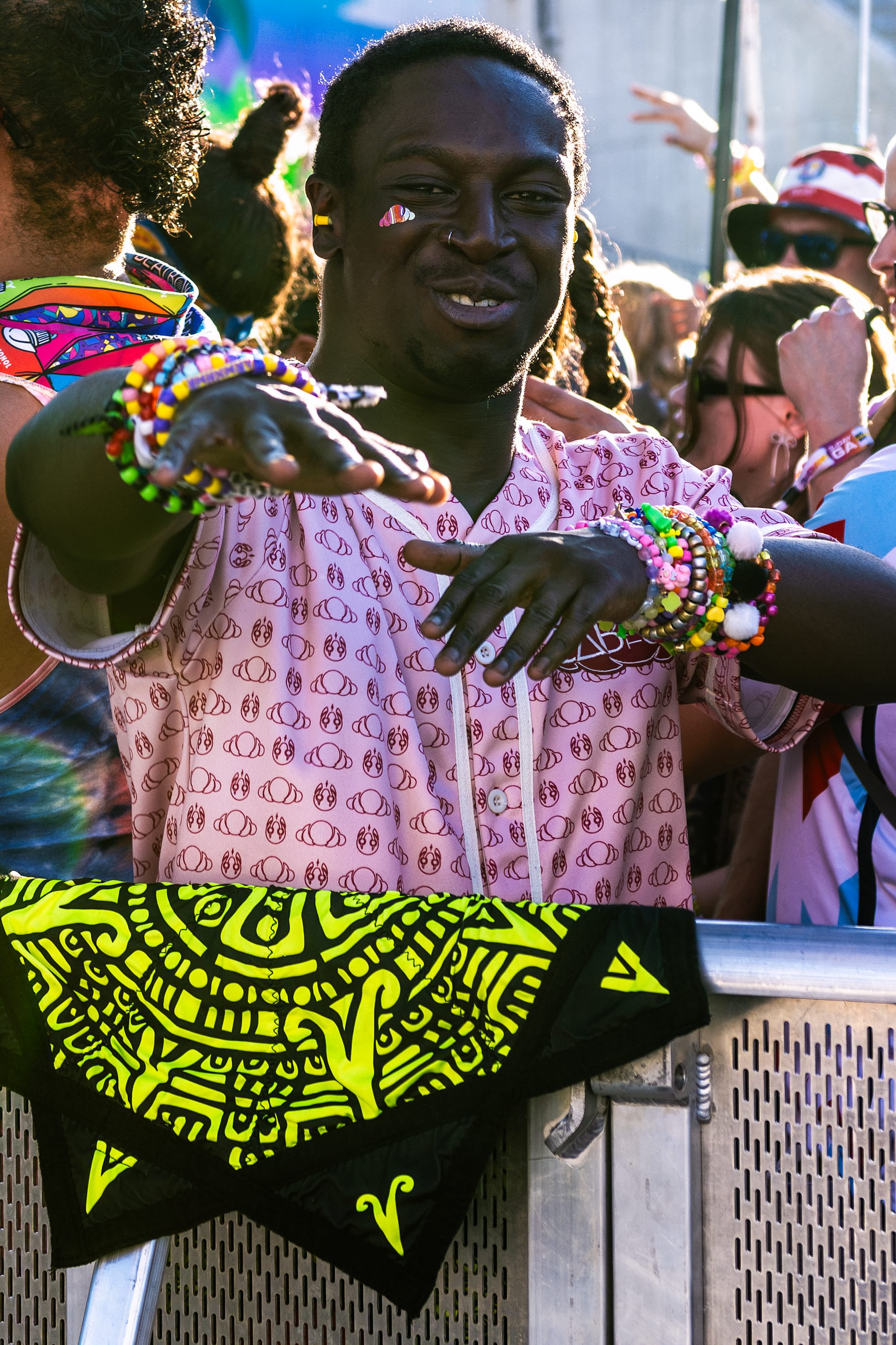 I stayed for Crankdat's entire set partially because I was really vibing out and because San Holo was up right after him. I had a feeling that fighting the crowd for this one was going to be a little trickier since anyone that was coming from The Stadium would be heading in the same direction toward either The Vega or The Shipyard for Chase & Status. Plus, it was peak attendee time since we were approaching the top of the hour for the start of the major supporting and headlining acts. I was right and I was able to get into the pit at the start of San Holo's set, even allowing ample time to get to the entrance. u