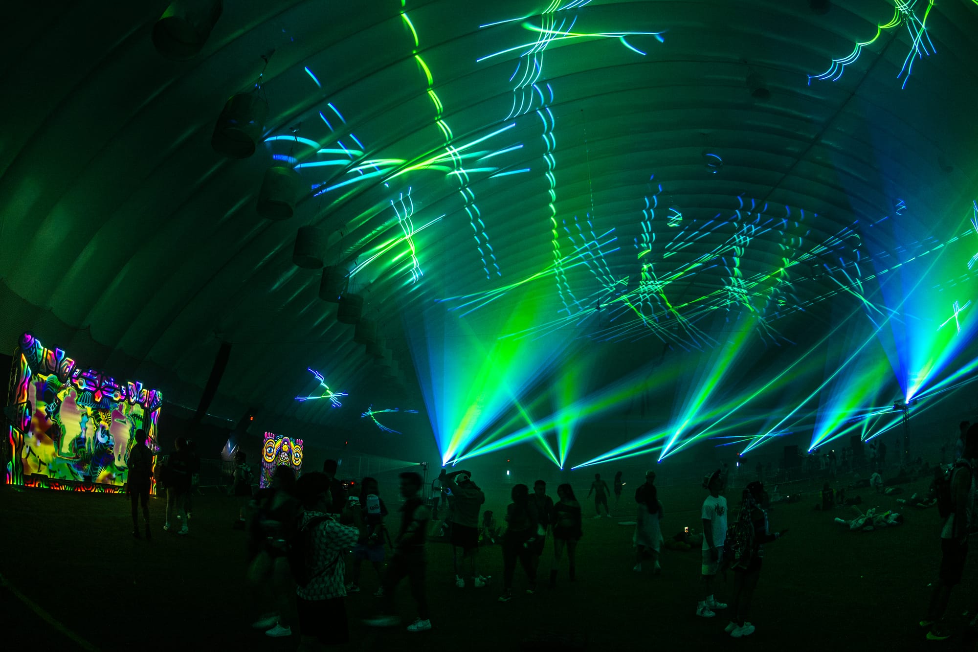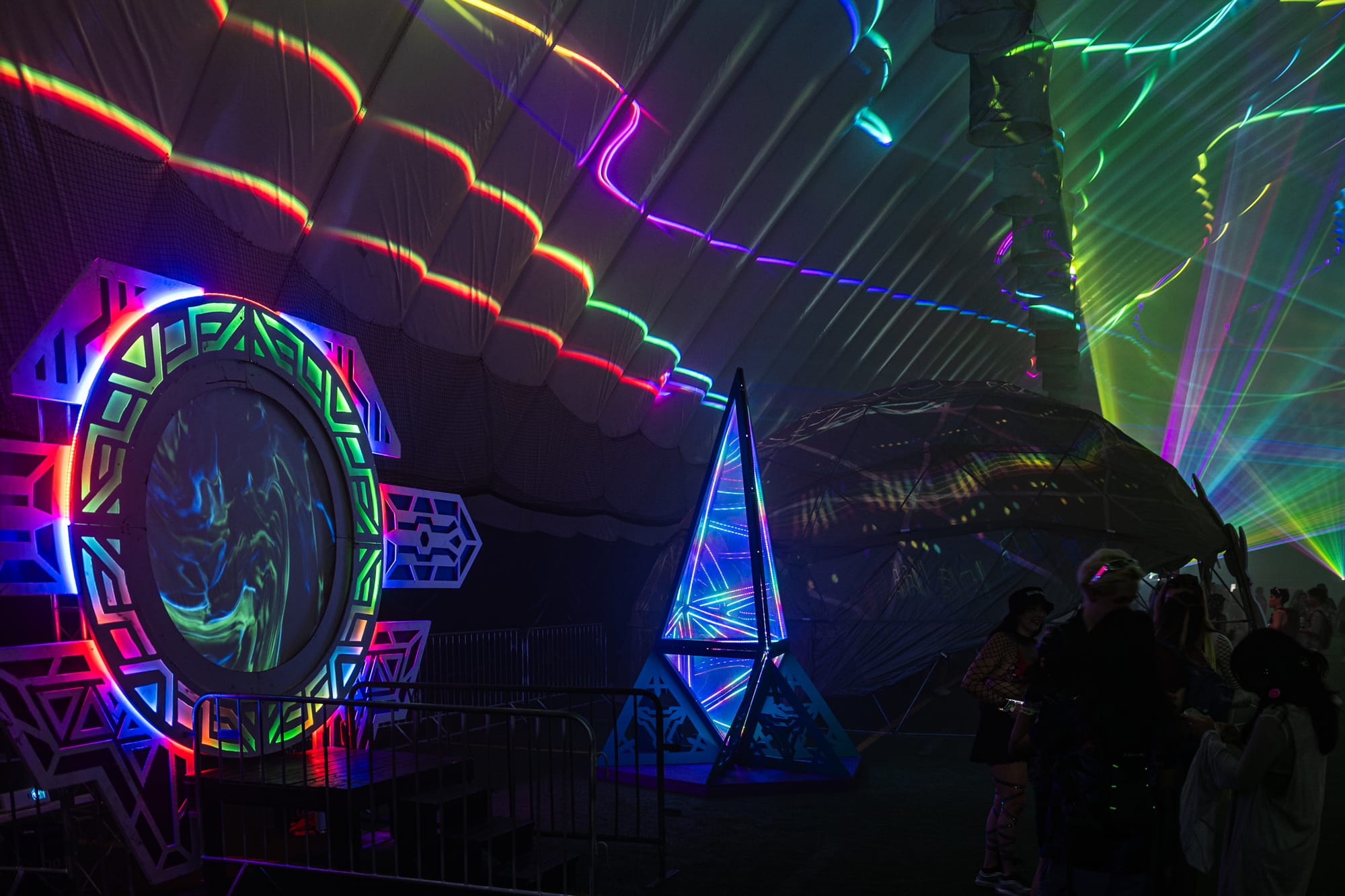 Most, if not all the artists that I was excited to see on Friday was taking place on the main stage - so needless to say I didn't really visit any other stages throughout the day on Friday. I did however take some time to explore the rest of the festival grounds near the beginning to middle of Netsky's set. To cool off a bit since I was already so hot, I headed over to the Chill Dome. I really wasn't expecting anything different than the previous years, but upon entering I noticed a handful of new additions. To the left after entering the dome were two visual/art pieces installments set up and Coasties were posing for photos in front of them. The first was held up by a shaped wooden panel and swirls of color danced around the center LED screen. Next to it was something that resembled something you'd see at a Meow Wolf location. It was a large diamond shaped prism with strips of LED lights lined throughout the inside and held upright by another wooden panel.
