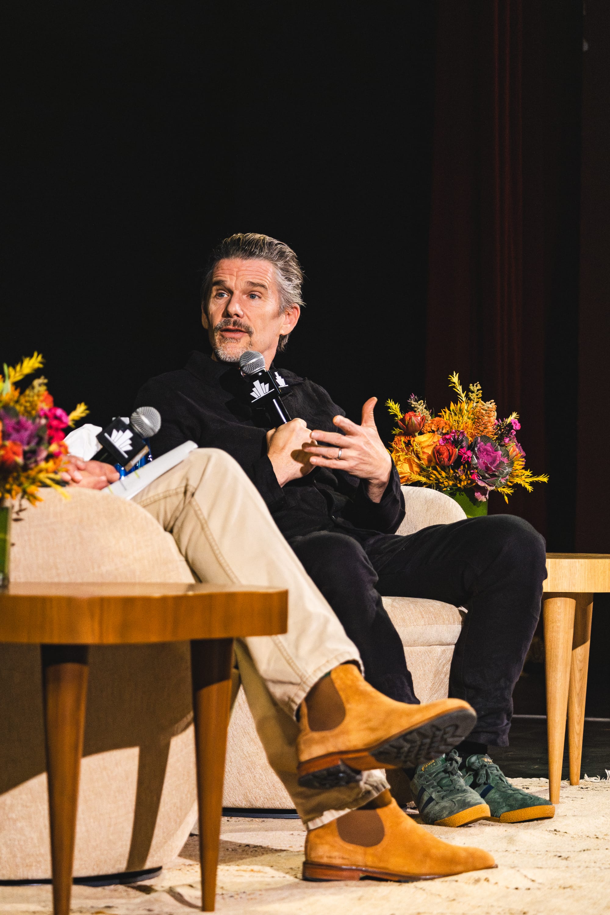 The Coolidge Award commemorated his extraordinary contributions to film and culture. Hawke has pursued roles and projects that continue to defy expectations and champion creativity since he was 13, with a large part of the discussion focusing on his start as a child actor. He shared his perspective with the added experience of a four-decade career under his belt, recalling the 2001 film, Tape, being a transformative moment that helped him have "a breakthrough in my own level of relaxation and playfulness...When you start as a child actor, you see yourself as a child actor. Most of you are not doing the same profession you were doing at 13, unless this is a room full of paper boys, but I am. I am doing the same job that I was doing at 13 years old, so my relationship to it has to keep changing, and there are certain moments that [helped] it change."