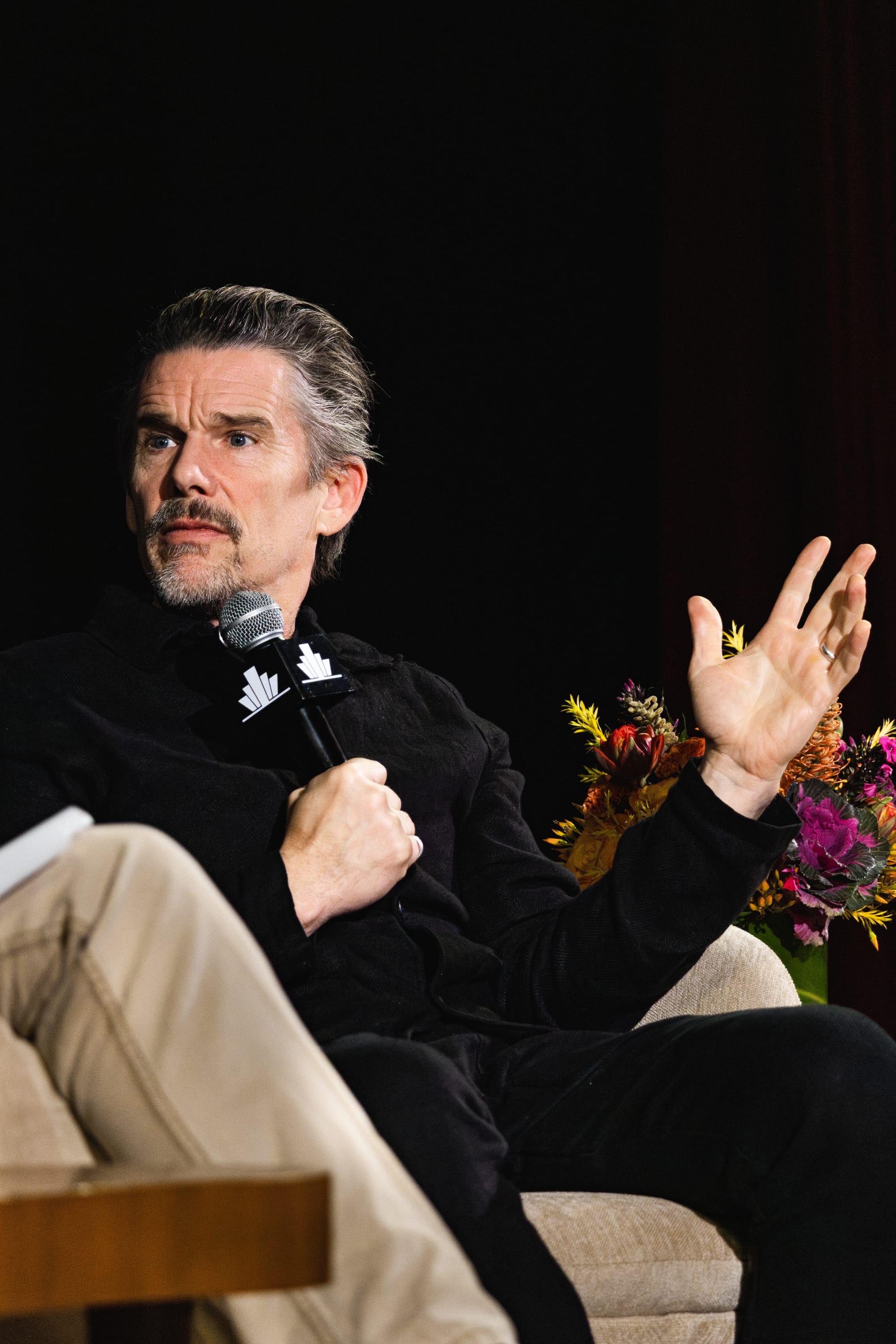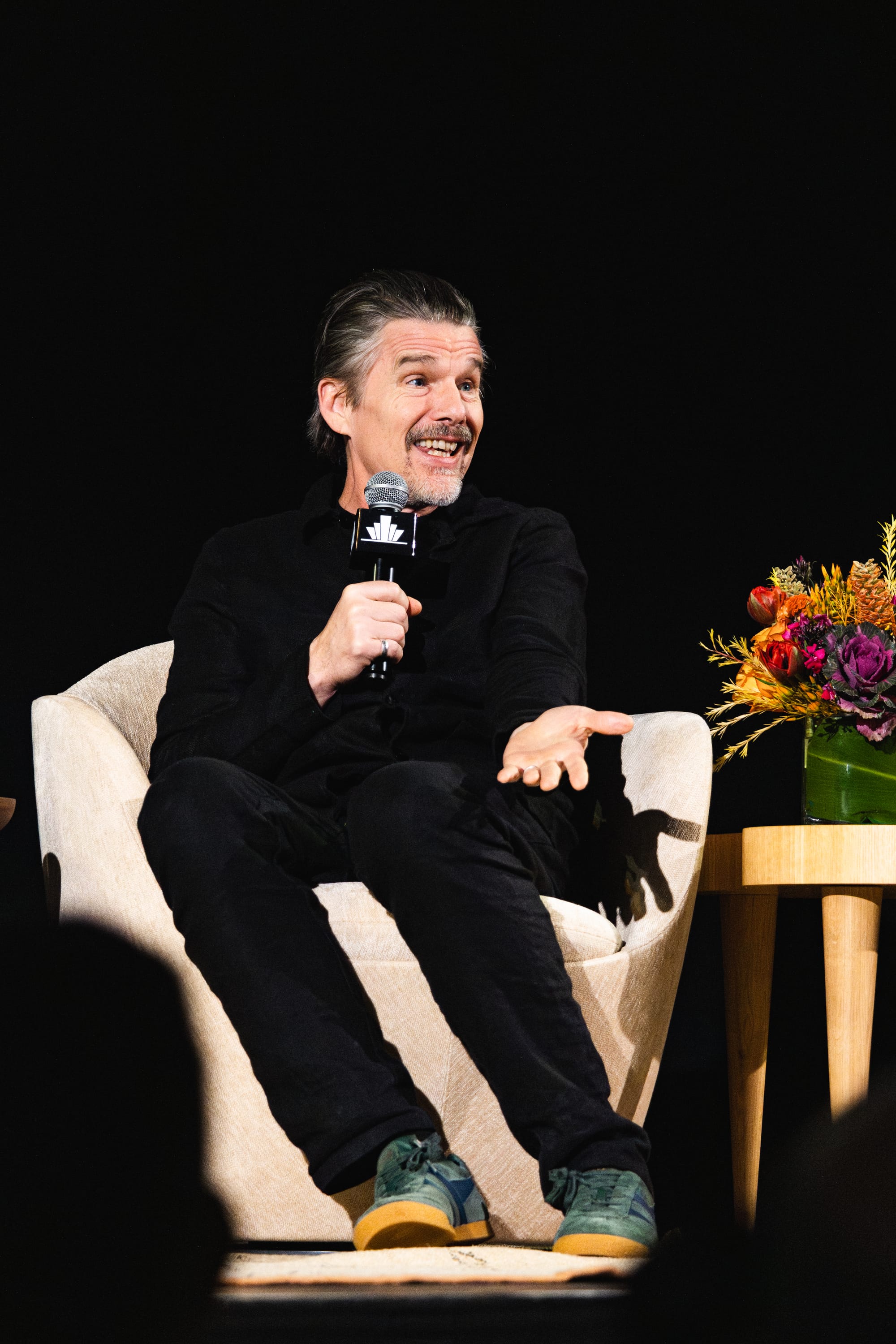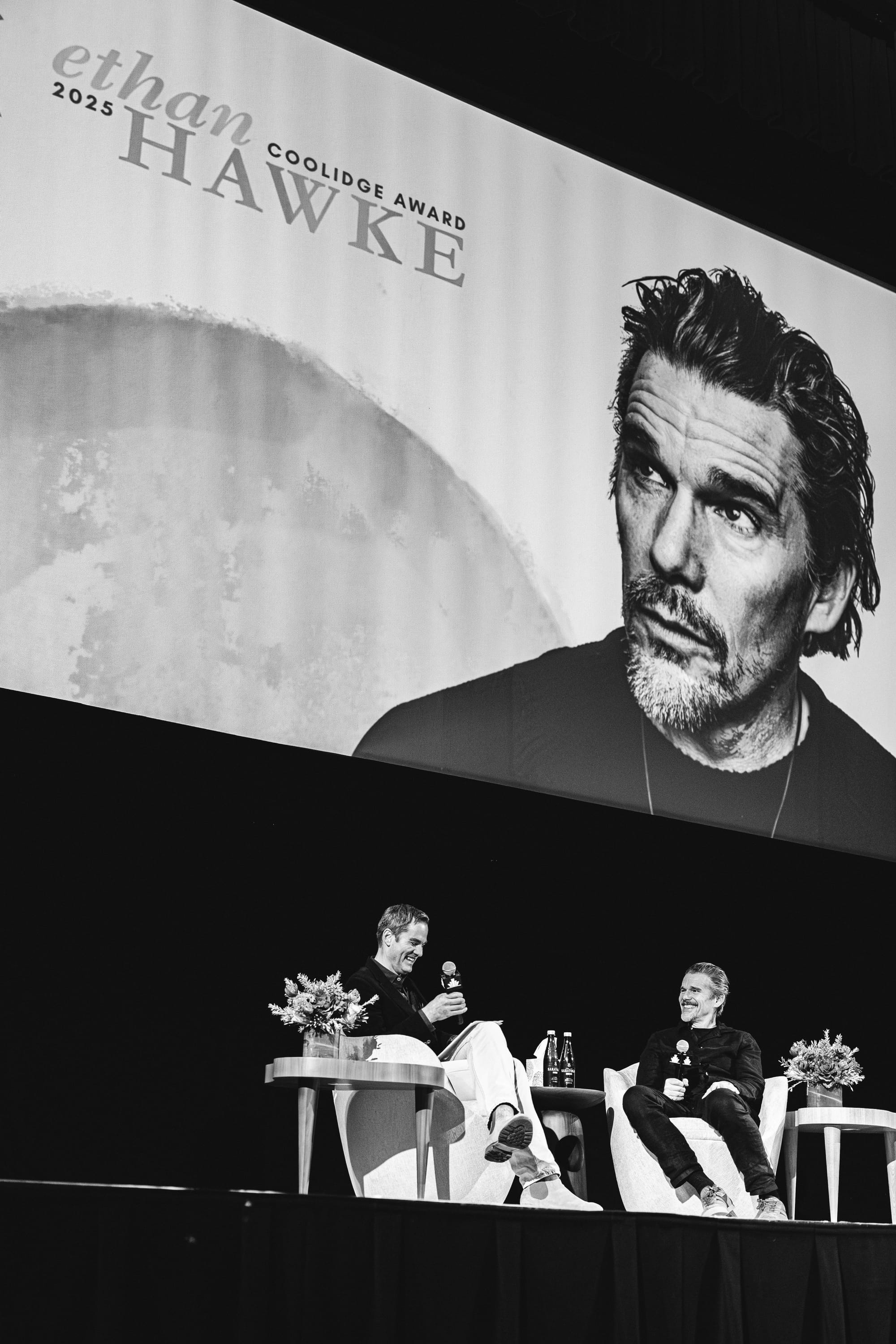 The Coolidge Award commemorated his extraordinary contributions to film and culture. Hawke has pursued roles and projects that continue to defy expectations and champion creativity since he was 13, with a large part of the discussion focusing on his start as a child actor. He shared his perspective with the added experience of a four-decade career under his belt, recalling the 2001 film, Tape, being a transformative moment that helped him have "a breakthrough in my own level of relaxation and playfulness...When you start as a child actor, you see yourself as a child actor. Most of you are not doing the same profession you were doing at 13, unless this is a room full of paper boys, but I am. I am doing the same job that I was doing at 13 years old, so my relationship to it has to keep changing, and there are certain moments that [helped] it change."