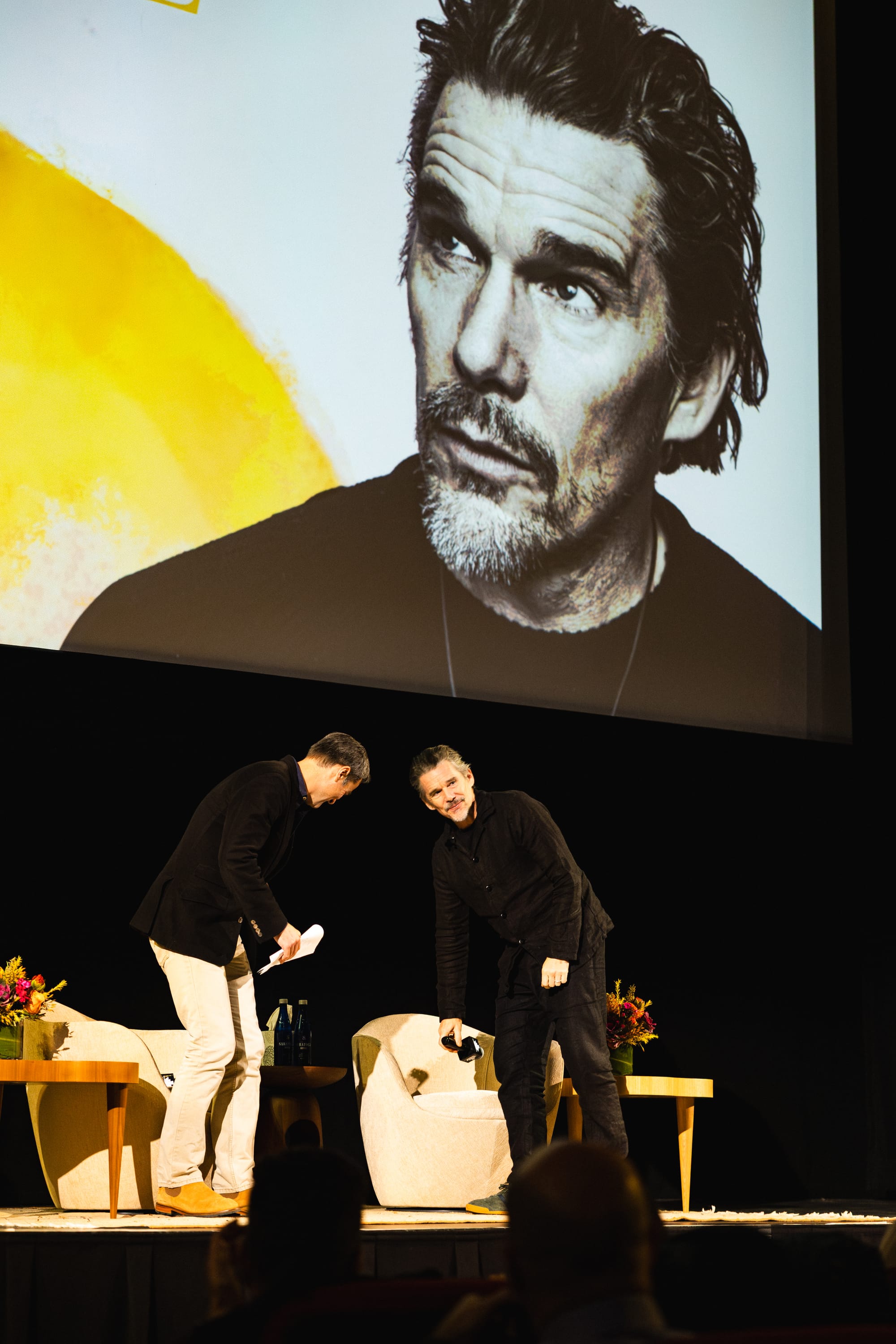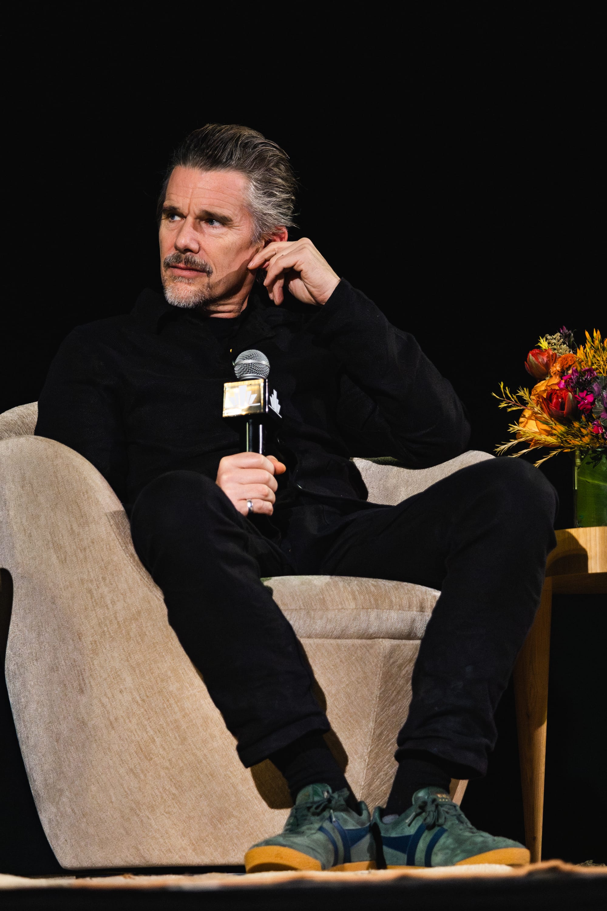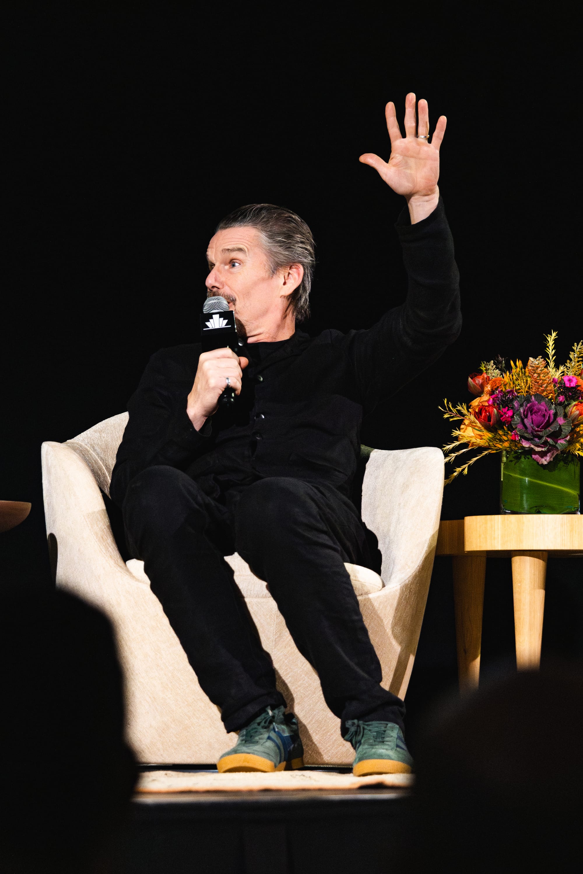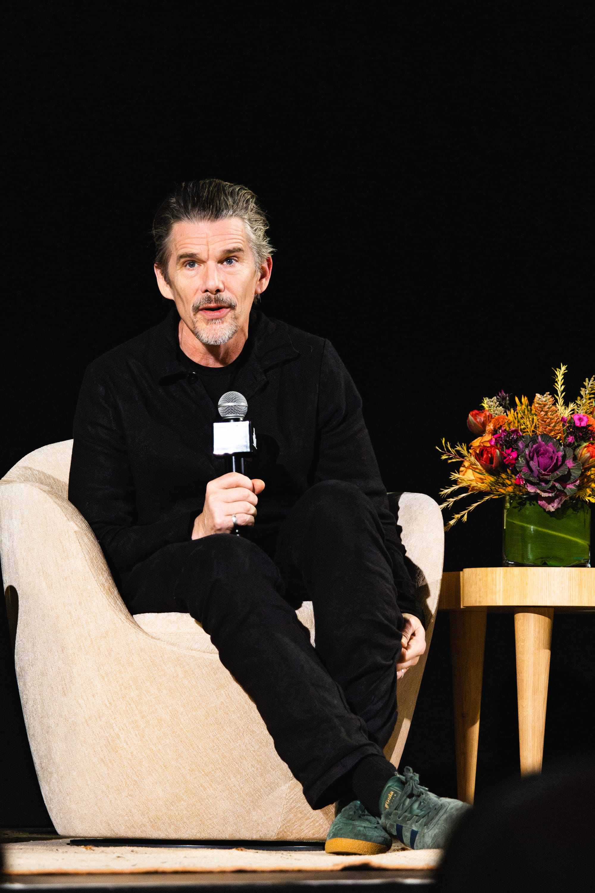 The Coolidge Award commemorated his extraordinary contributions to film and culture. Hawke has pursued roles and projects that continue to defy expectations and champion creativity since he was 13, with a large part of the discussion focusing on his start as a child actor. He shared his perspective with the added experience of a four-decade career under his belt, recalling the 2001 film, Tape, being a transformative moment that helped him have "a breakthrough in my own level of relaxation and playfulness...When you start as a child actor, you see yourself as a child actor. Most of you are not doing the same profession you were doing at 13, unless this is a room full of paper boys, but I am. I am doing the same job that I was doing at 13 years old, so my relationship to it has to keep changing, and there are certain moments that [helped] it change."
