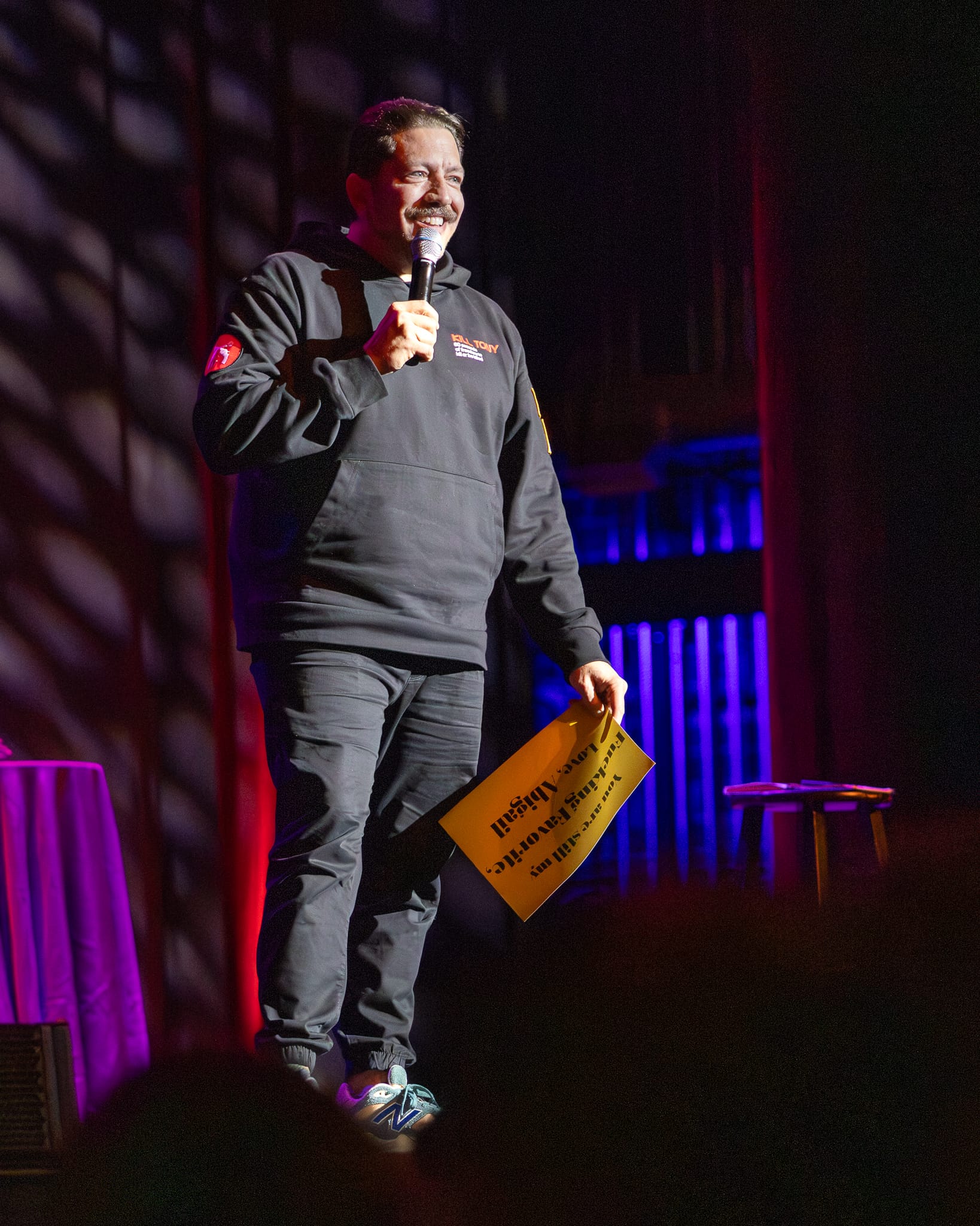 The moment Sal appeared, the crowd erupted into cheers and a standing ovation. Without wanting to give anything away for future tour stops, his set was packed with memorable moments, touching on everything from a blast-from-the-past fan encounter that involved some unexpected cussing, to the toxicity of social media, Biggie Smalls’ phone bill, and the fact that helicopters always seem to crash in movies.
