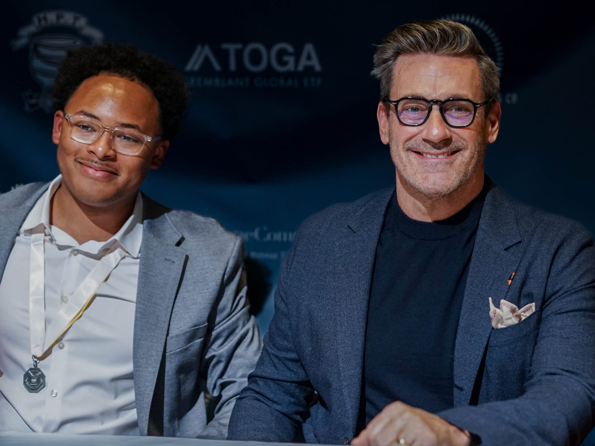 Hamm joined Chaelon Simpson '26 before taking questions from the press. While a roast of this caliber might give other stars heart palpitations, Hamm enjoyed his time in the hot seat. When asked if he had prepared for the roast proceedings, Hamm replied, "I thought it would be more fun if I just sort of entered it like most things with eyes wide open and knowing that it's all in good fun, and I'm glad I did." He continued, "I did notice that the four or five men of the year before me are all people that are in my phone, so I could've certainly hit them up, but I'm glad I didn't, and let it be a wonderfully pleasant surprise."