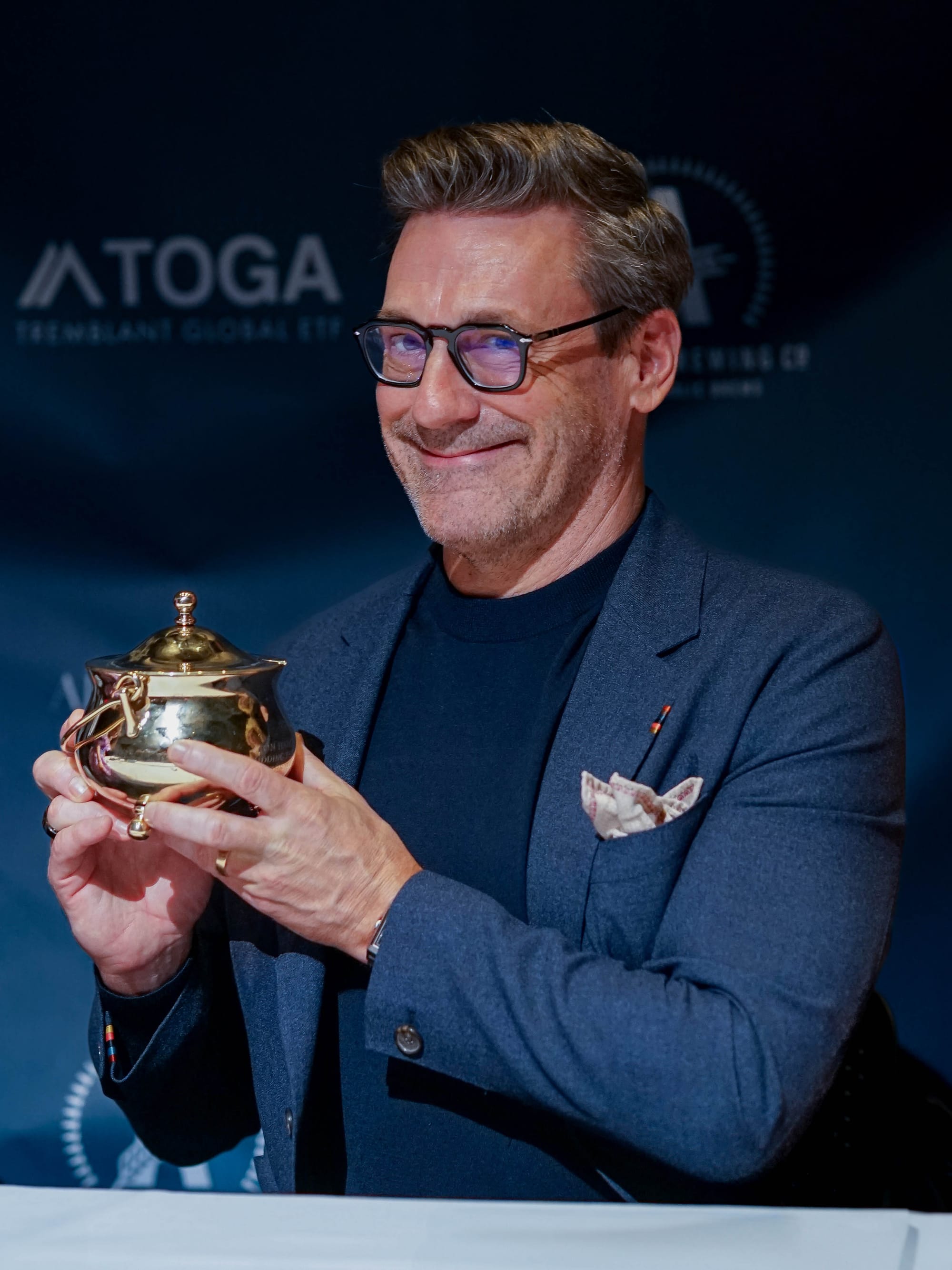 The Hasty Pudding Theatrical's 58th Man Of The Year award celebrations took place on January 31 in the heart of Cambridge. Honoree Jon Hamm visited Harvard and the historic Farkas Hall to place his plaque on the wall and receive the coveted Pudding Pot trophy.