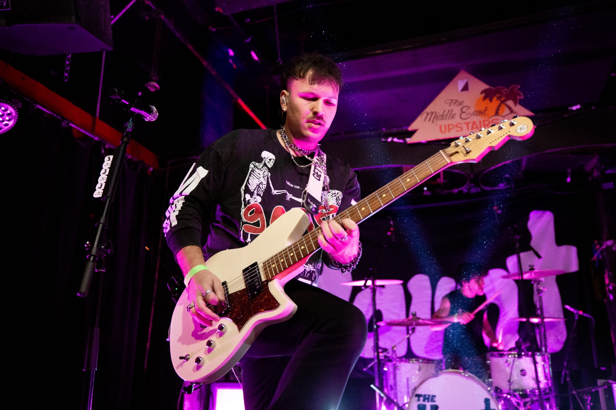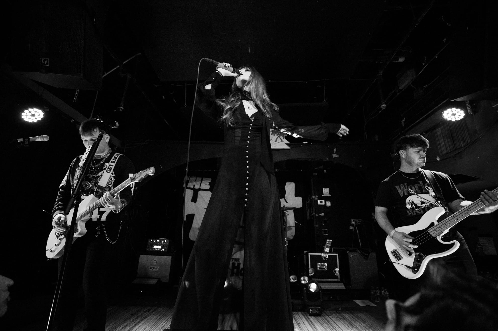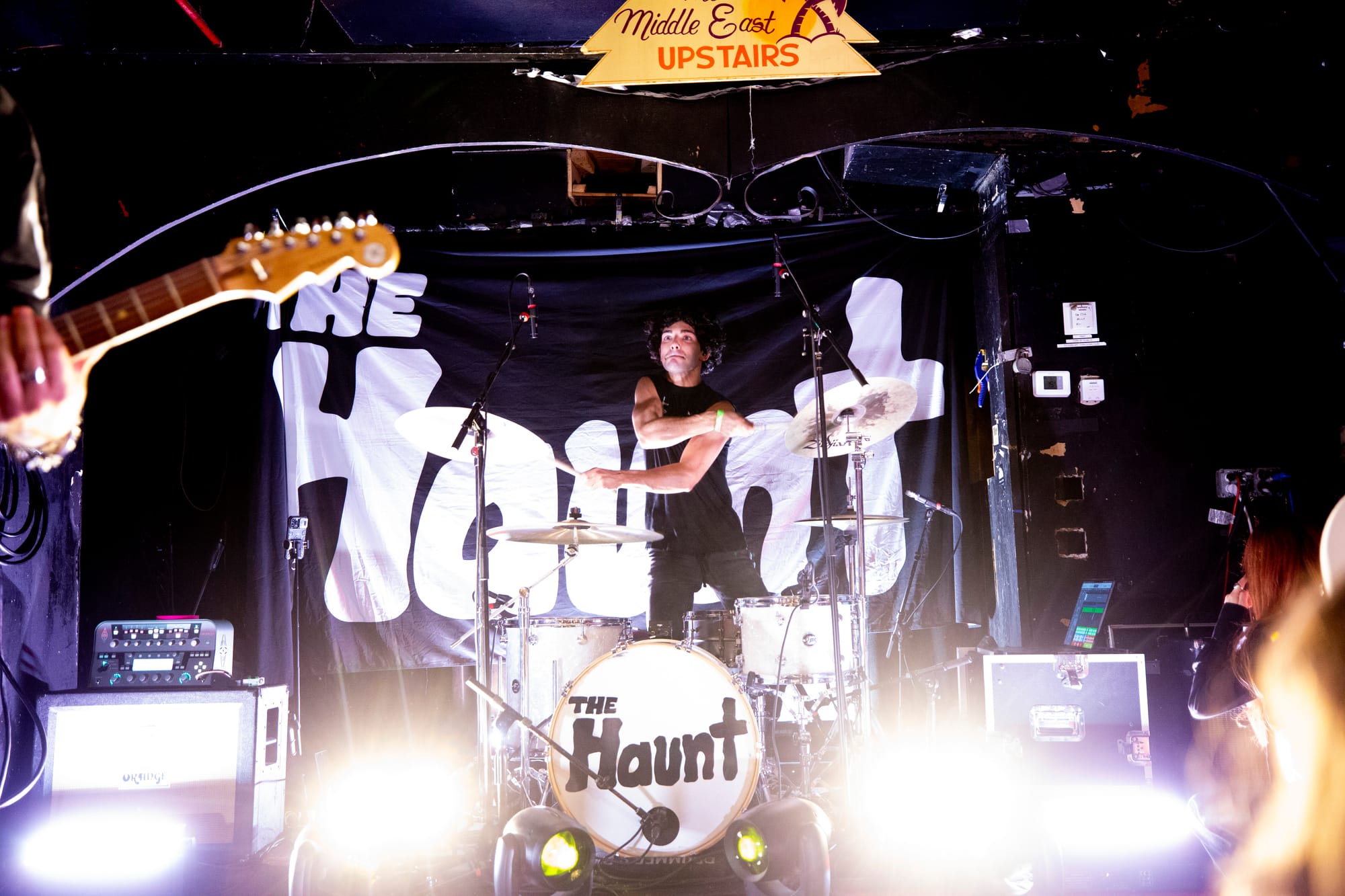 The Haunt brought their stormy blend of goth-pop swagger and emotional firepower to a sold-out Middle East on Friday night, turning the packed Cambridge club into a pulsing, cathartic singalong. Fans jammed shoulder to shoulder, shouting lyrics, waving arms, and hanging on every dramatic turn of Anastasia Grace’s powerhouse vocals and Maxamillion Haunt’s razor-sharp guitar work.