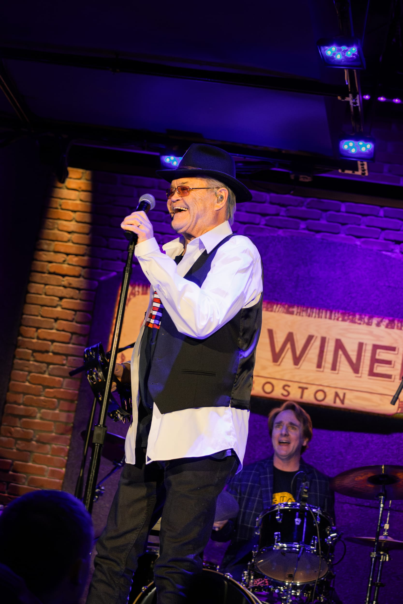 Tucked away in Boston’s North End on a brisk Sunday afternoon, City Winery was cooking up two unforgettable sold-out performances starring the legendary Micky Dolenz. A part of the first beloved all-American boyband, The Monkees, Dolenz is known for his magnetic energy and joyous charm. Hundreds of fans spilled into the venue, stopping at the merchandise table lined with signed CDs and drumheads. One fan sported printed leggings with images from the show and a beanie in honor of Monkees member Mike Nesmith’s signature look. The buzz of anticipation filled the room as everyone chatted about their excitement for the show.