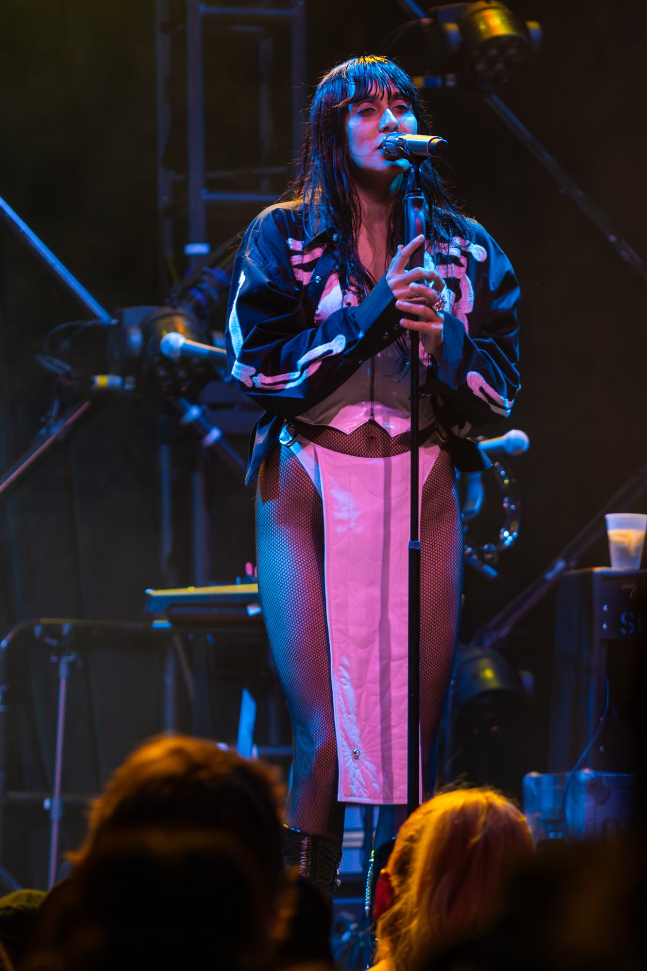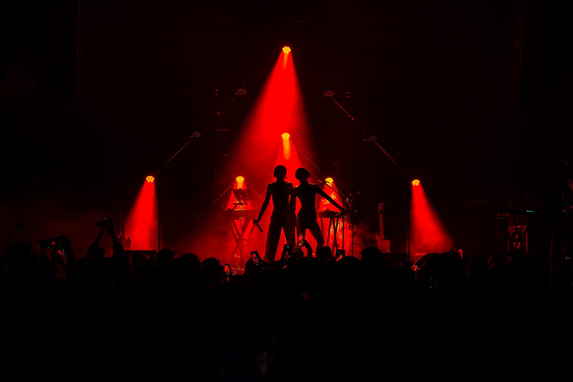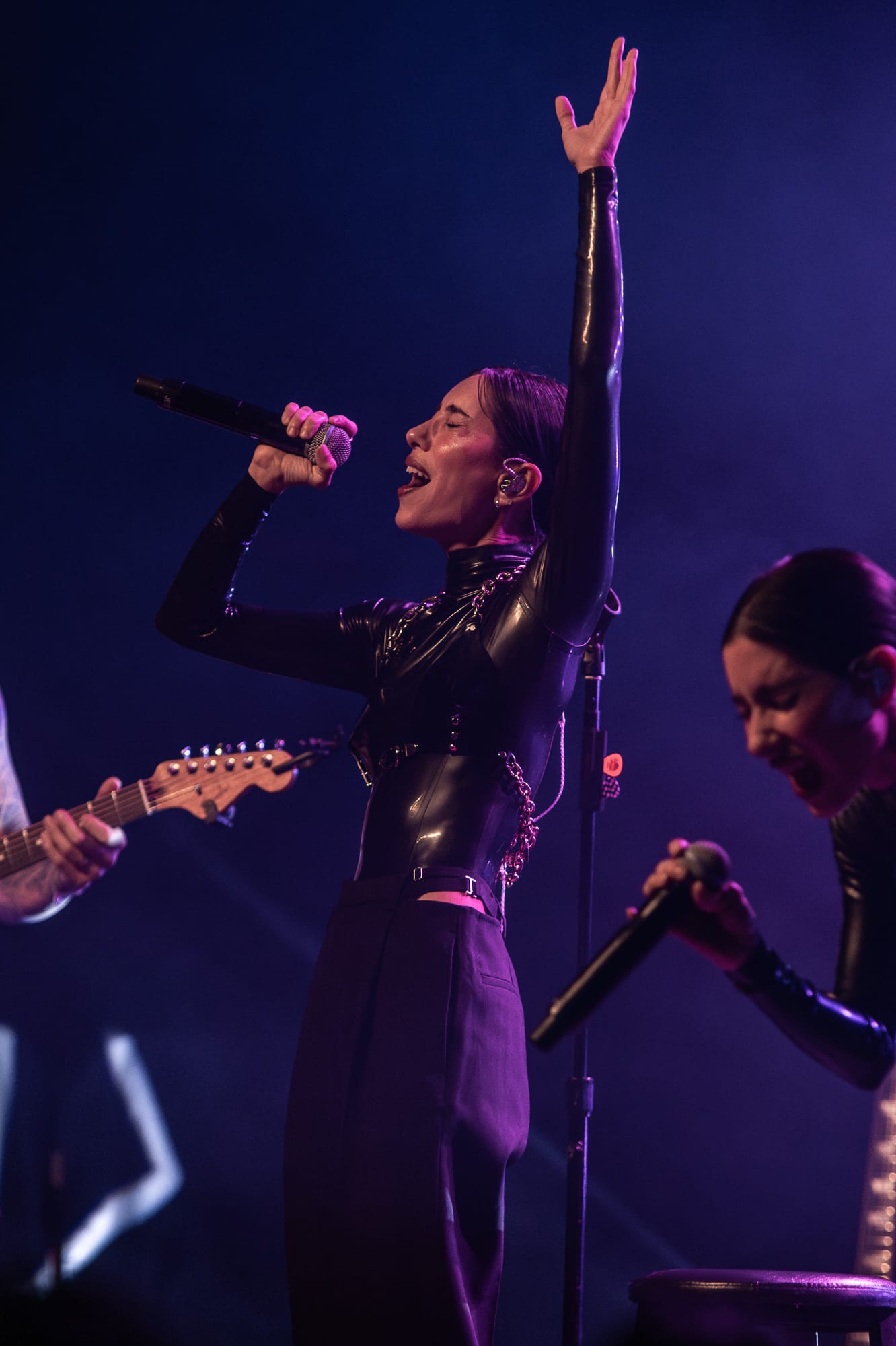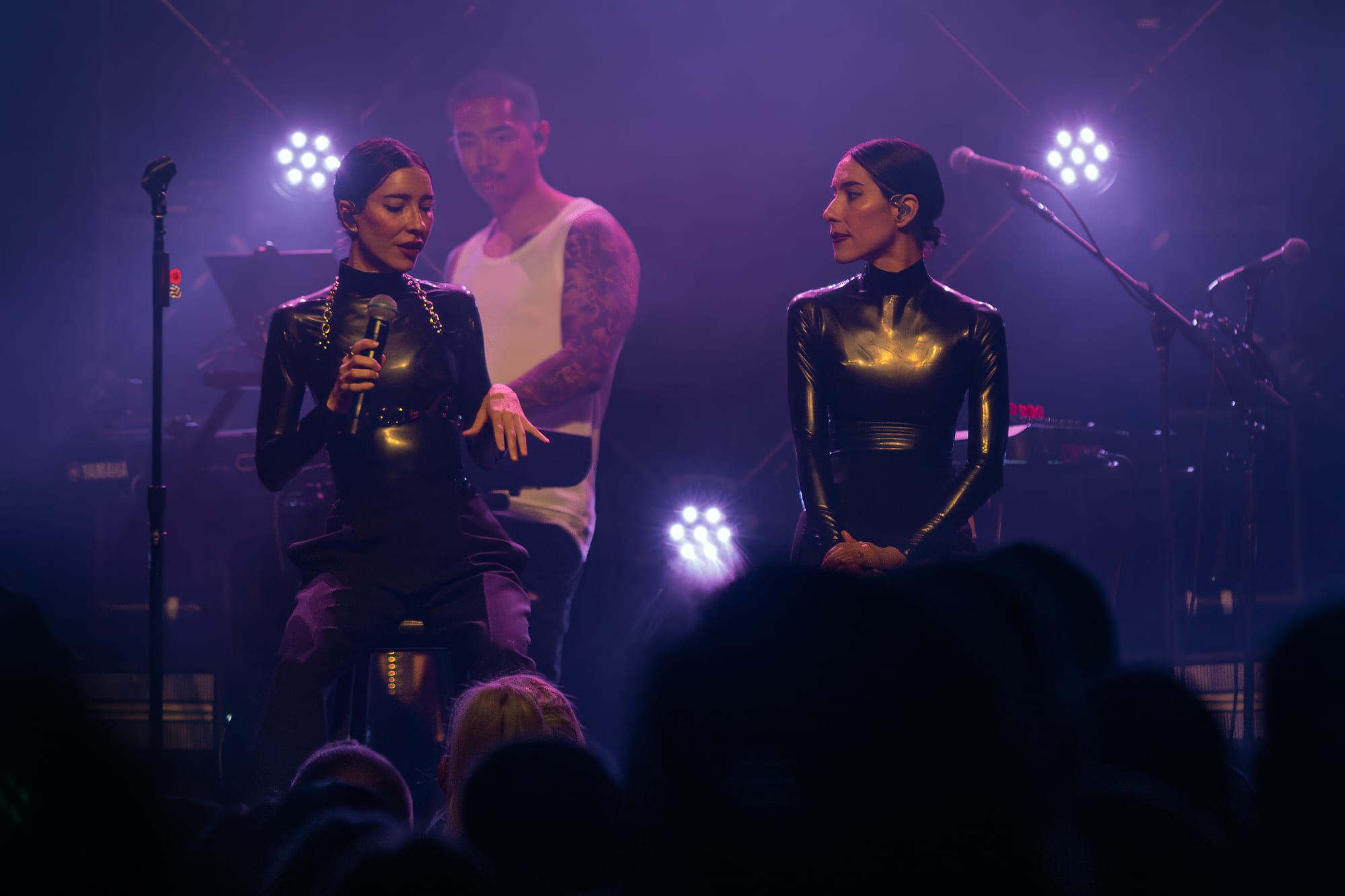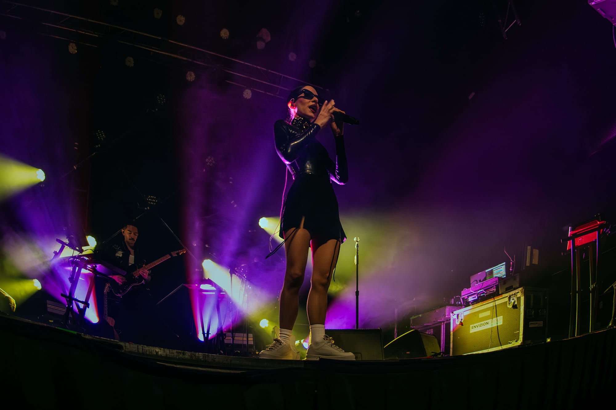 The stage crew jumped into action by clearing the stage and replacing its contents with the remainder of items for The Veronica's set. The set had already revealed a large lighting structure that sat at the very back of the stage; a large triangular shape with lights throughout the middle connected in a way that created diamonds throughout the inside, holding lights where each corner met. What seemed like a simple set up felt like forever while all of the attendees waited for the Australian duo and chatted amongst themselves in the crowd. At last, the overhead music and lights faded out and not a minute after the girls walk out looking like they just came from The Matrix. The twins both wore black and had sunglasses on - a spandex top, one with a black skirt and the other with black pants. Purple lighting illuminated behind them, accentuating even more of a bad bitch vibe between the two. These girls meant business and they were ready to give Denver an unforgettable show.