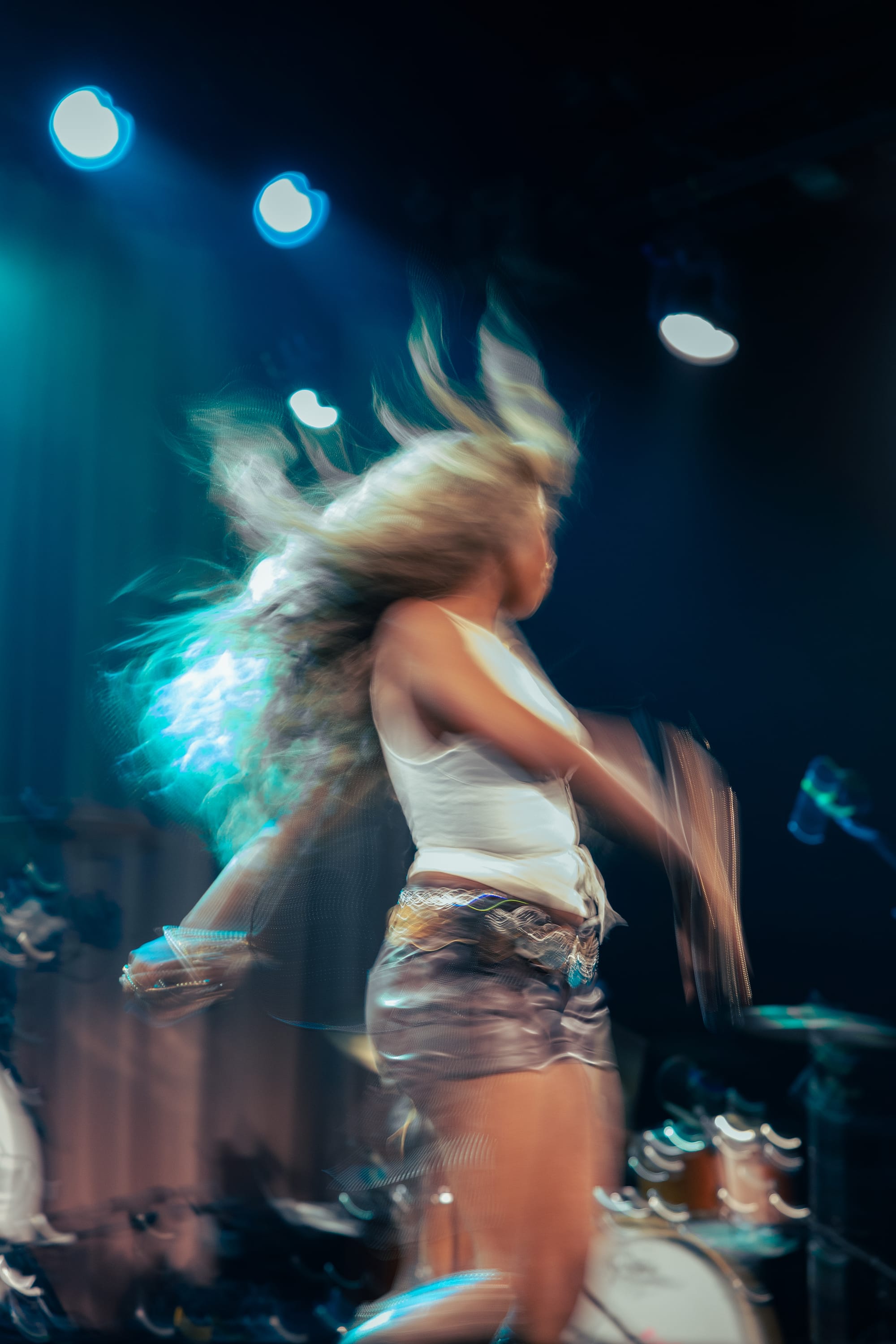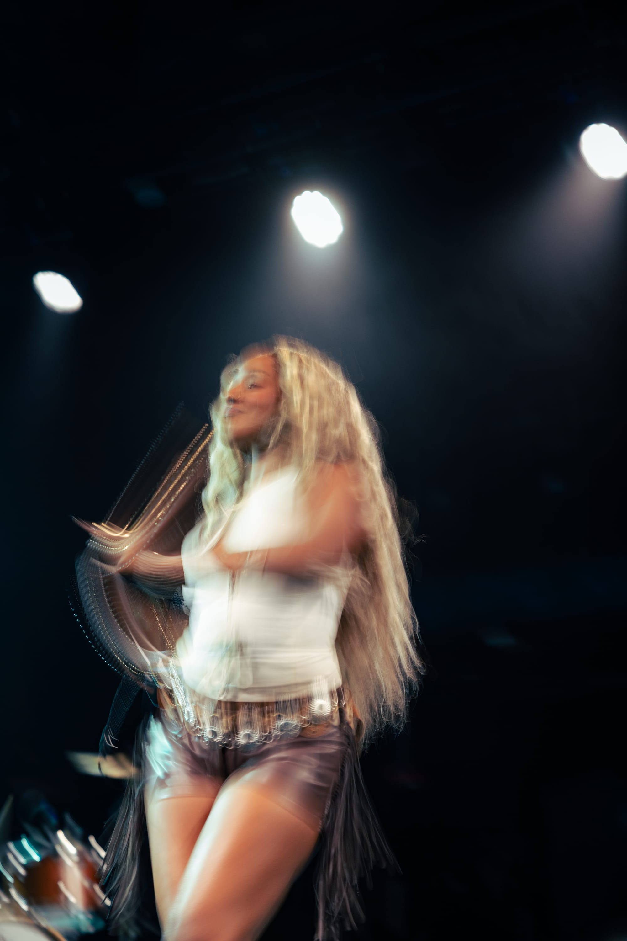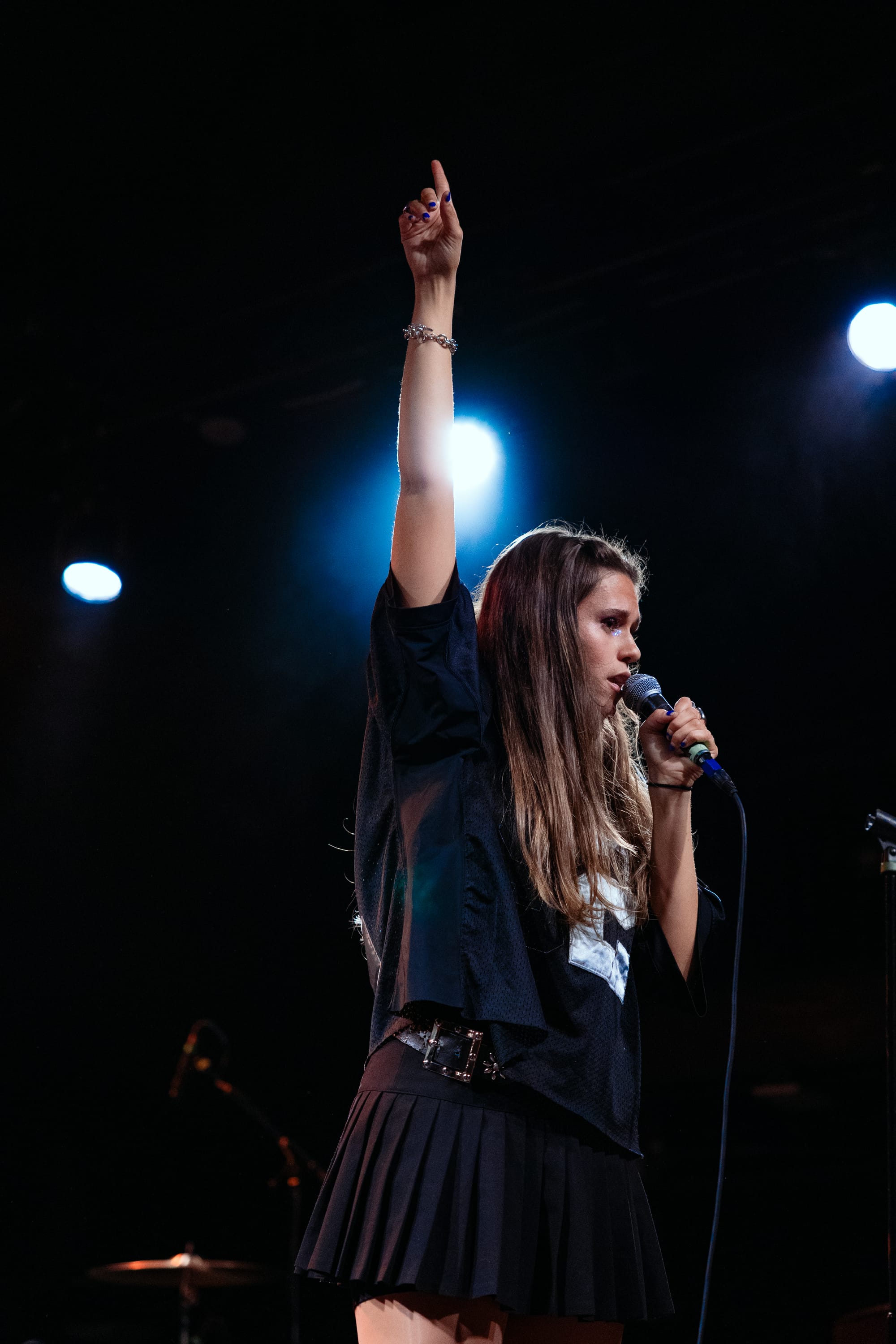 The standout track "Don't Tell The Girls" especially energized the venue and was an excellent example of her imaginative songwriting. The song explores the sticky situation of reconnecting with an ex. Lyrics like "Don't tell the girls that I spent the night at his house / He was the worst so I'll never live this down" invited the crowd to feel like a part of this secret, creating a shared closeness and a memorable impression on fans who may not have heard of her before the show. She also naturally interacted with the crowd. At one point, a fan handed her their phone, and she excitedly grabbed it to record on the stage. She flawlessly executed call-and-response moments and paused to share relatable anecdotes about her "shitshow love life" before the song "I Don't Get Breakups," exhibiting her gutsy and go-with-the-flow performance style.